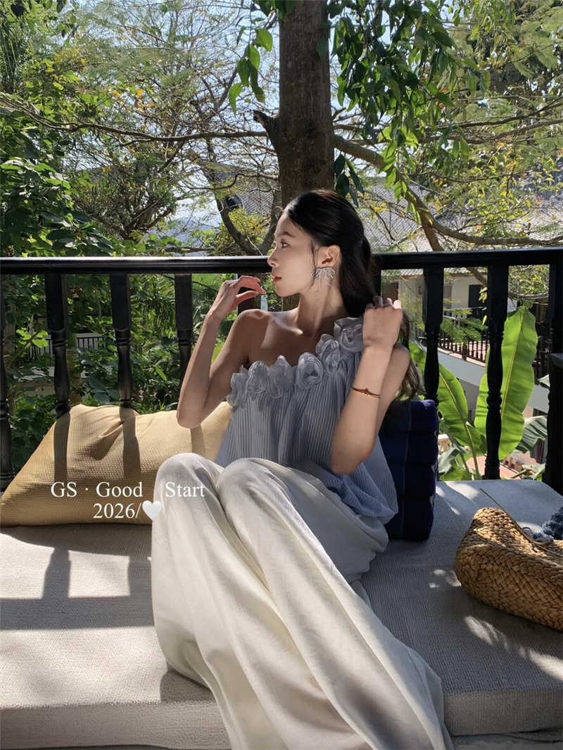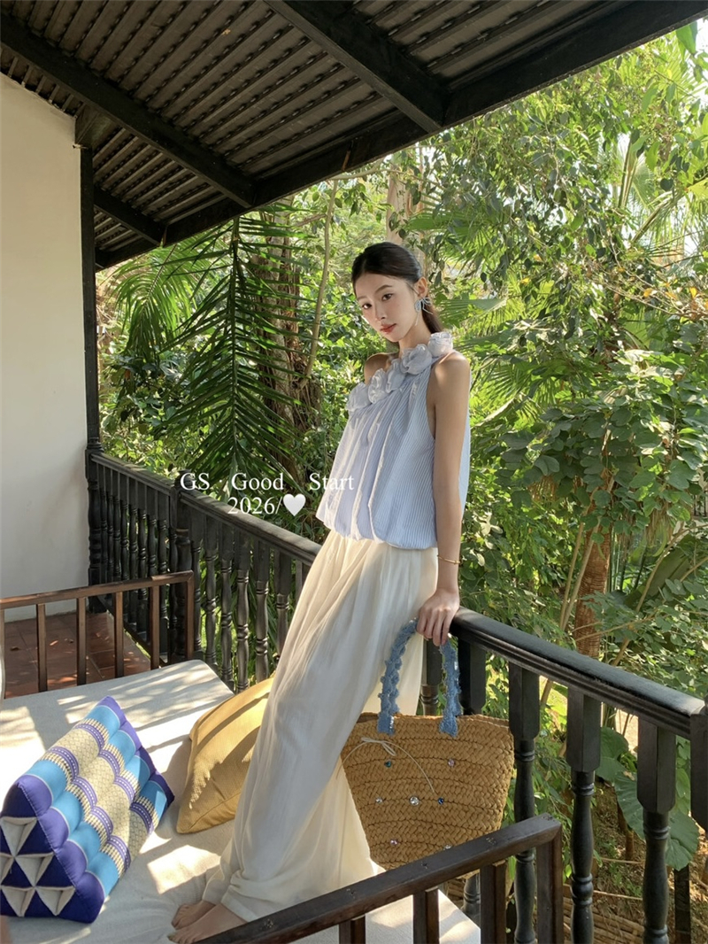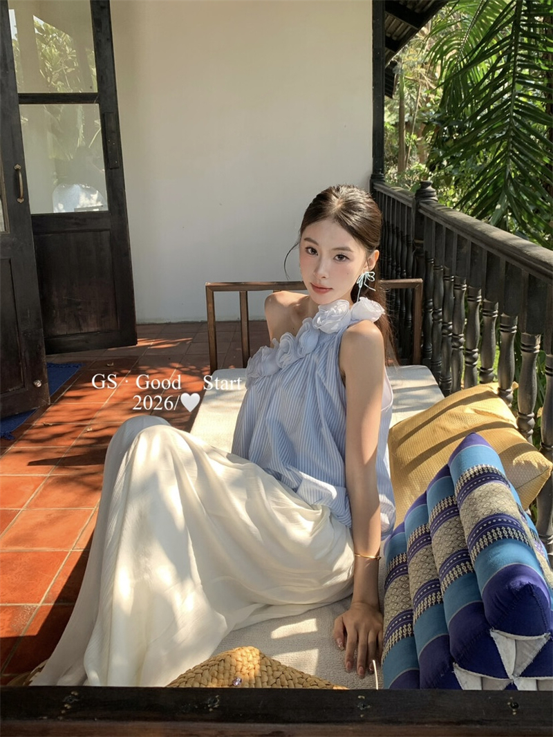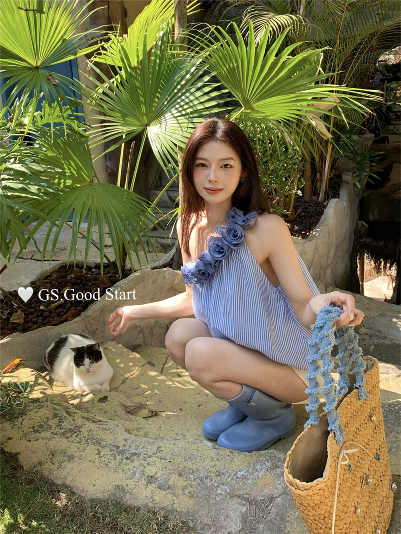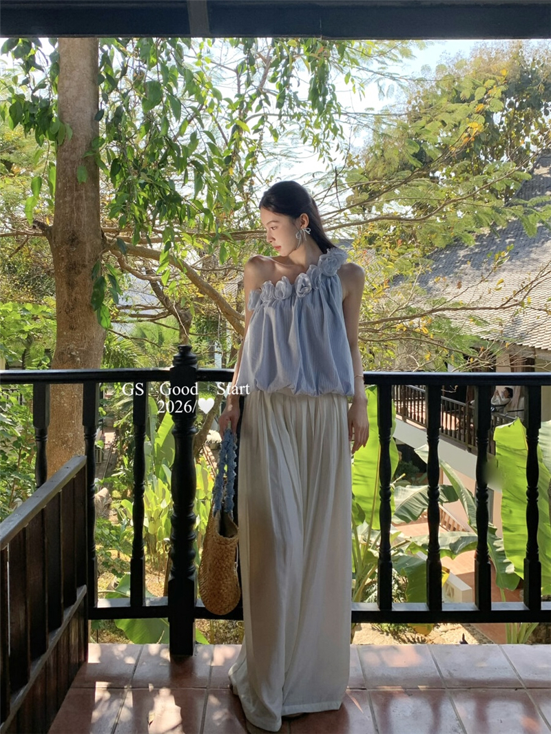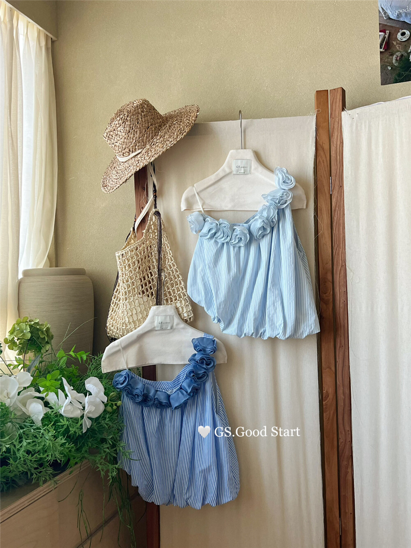 중국 전나무 숲 장미 있으라. 추적 묻기 봄 여름 프랑스식 낭만주의 3 차원 꽃 비스듬한 어깨 휴가 바람 스트라이프 작은 셔츠
