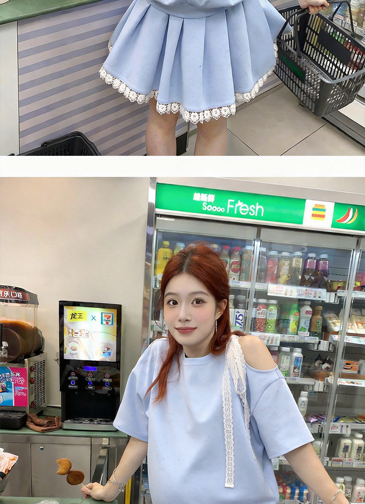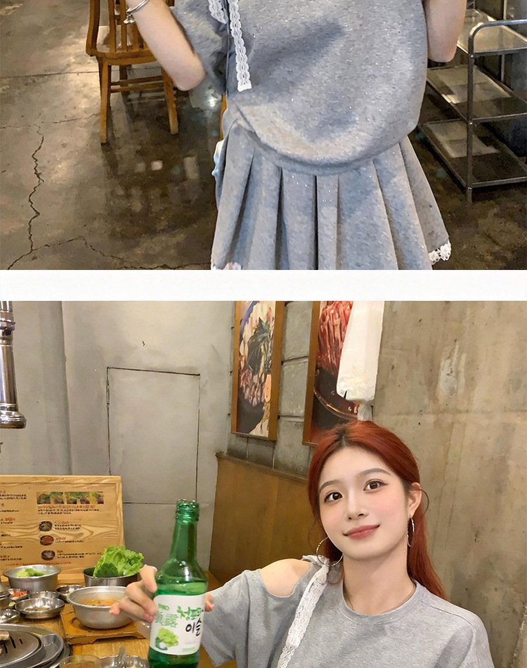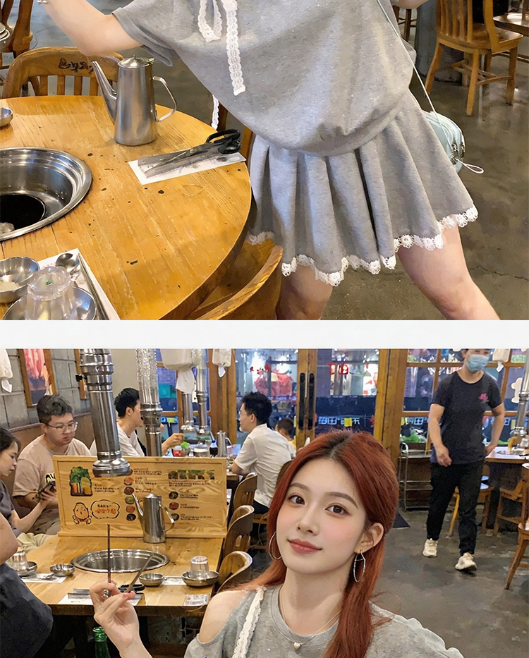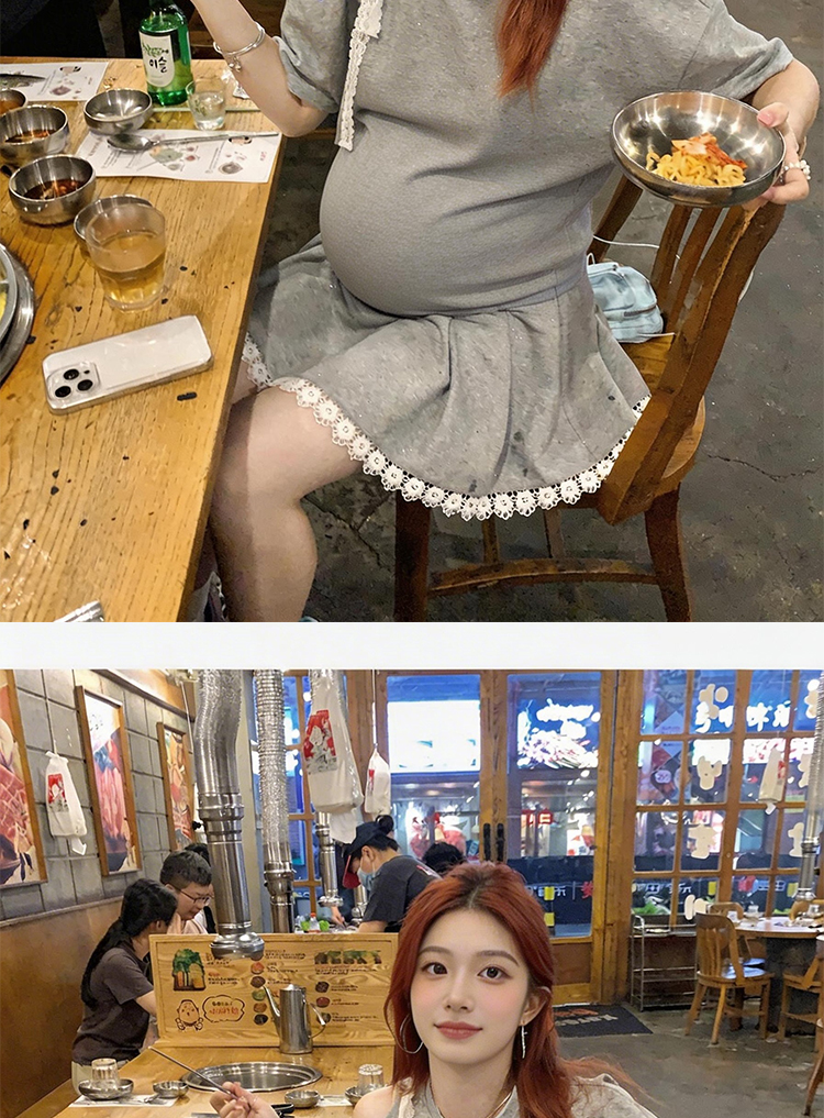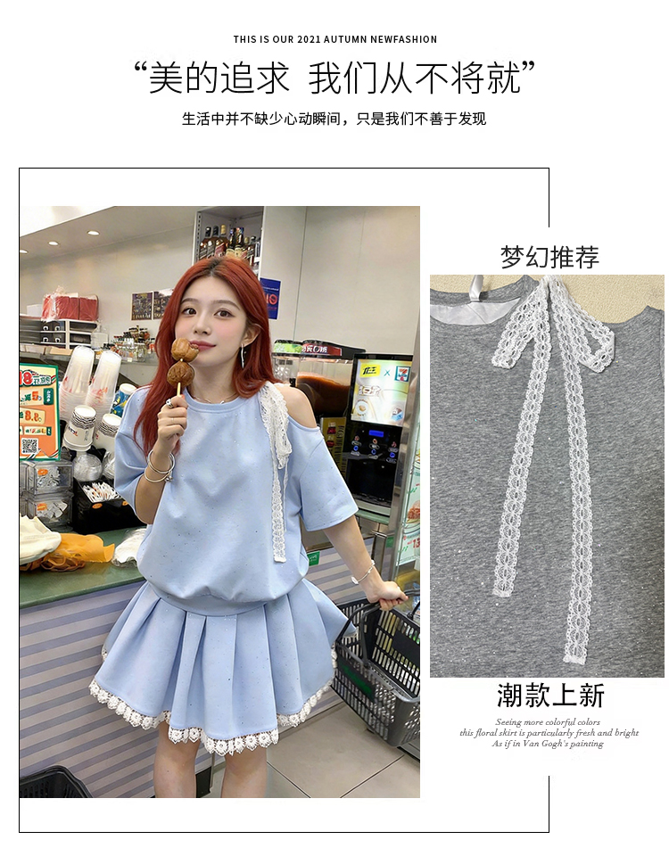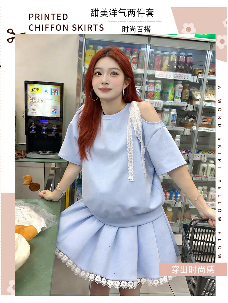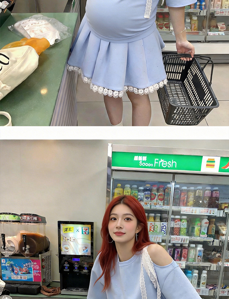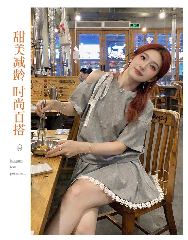 지금 임산부 여름 스팽글 레이스 레이스 한국 스타일 오프숄더 맨위 플리츠 반신 스커트 자이언트 잘 생긴 투피스 세트 세트