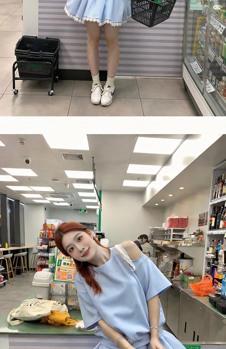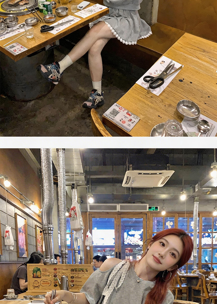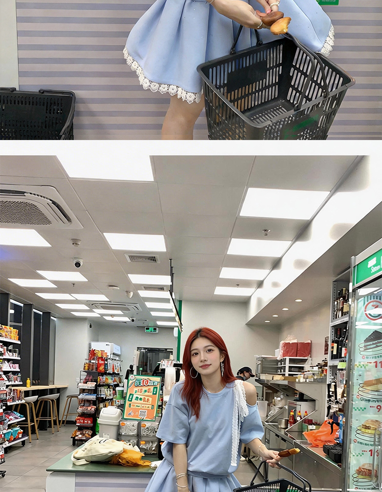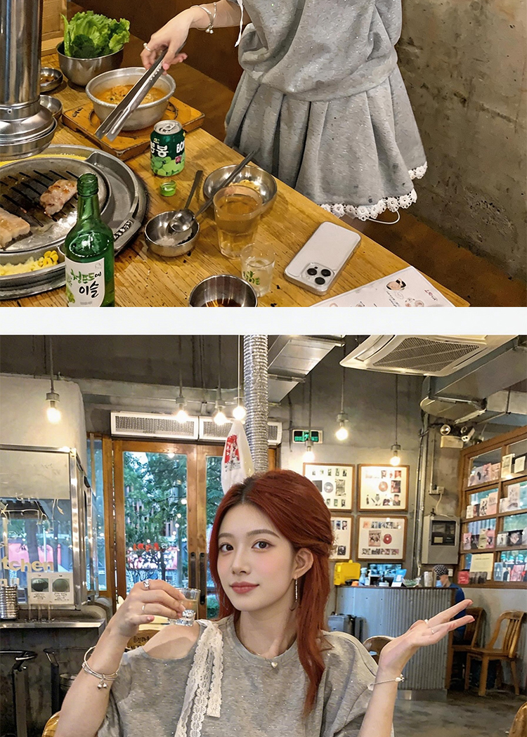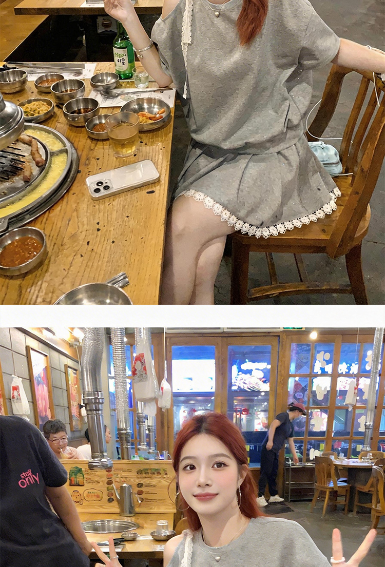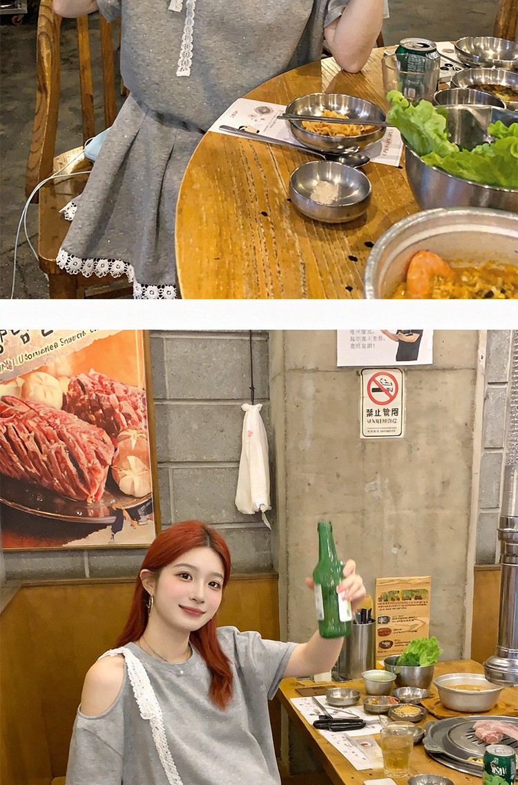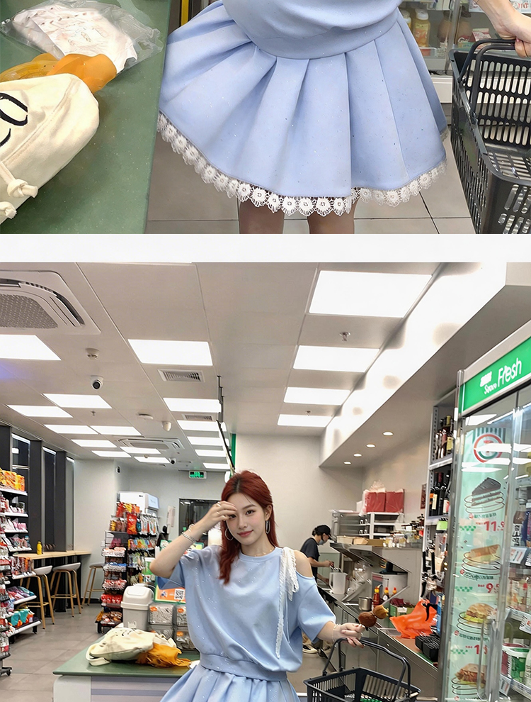 지금 임산부 여름 스팽글 레이스 레이스 한국 스타일 오프숄더 맨위 플리츠 반신 스커트 자이언트 잘 생긴 투피스 세트 세트