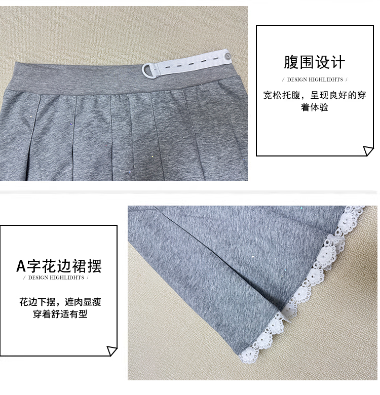 주간 고양이 품질 임산부 가을 섹션 케이크 드레스 레이스 주머니 없음 복부 지지 고무 밴드 조정 롱 스커트 반신 스커트