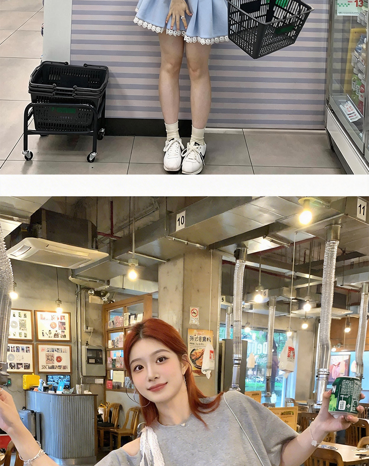주간 고양이 품질 실사 여름 다용도 임산부 프랑스식 디자인 센스 주름 거품 소매 맨위 분말 트임 롱 스커트
