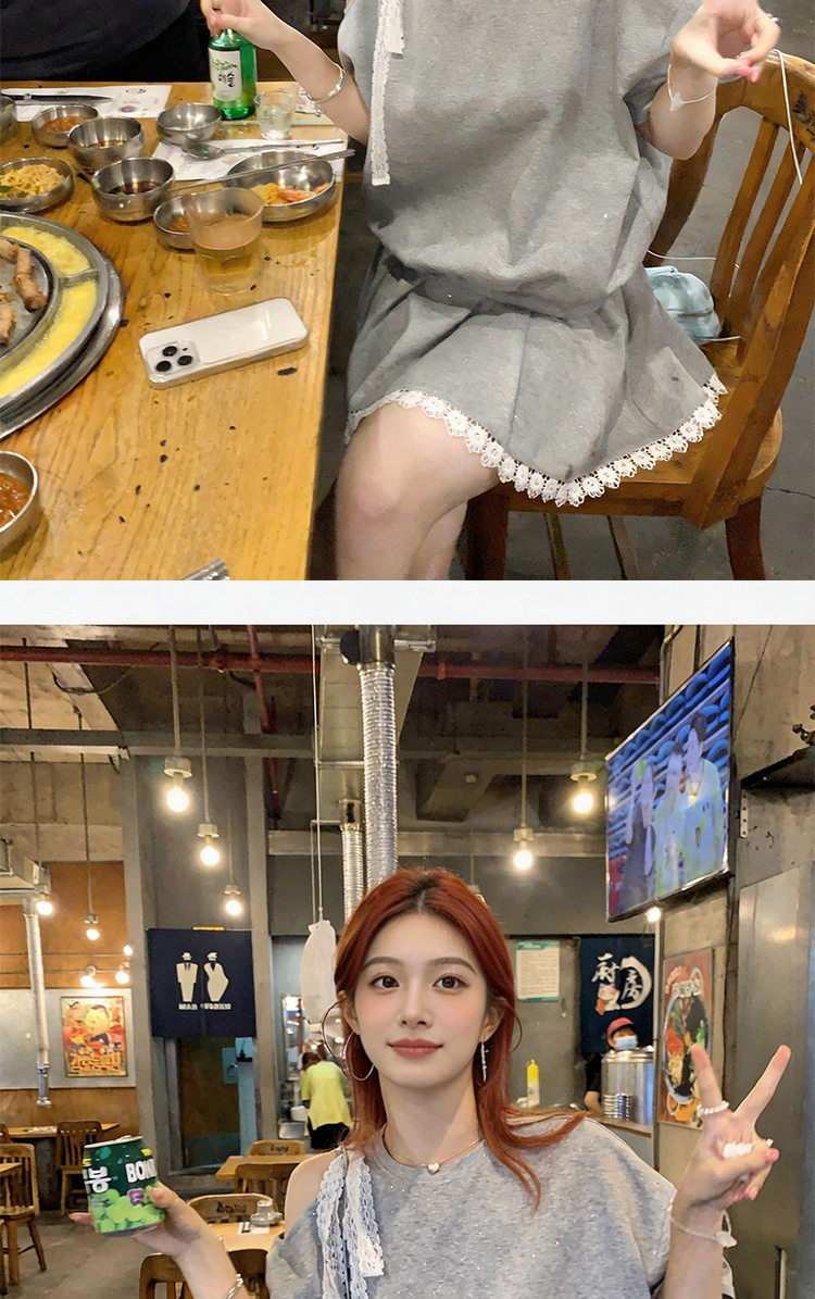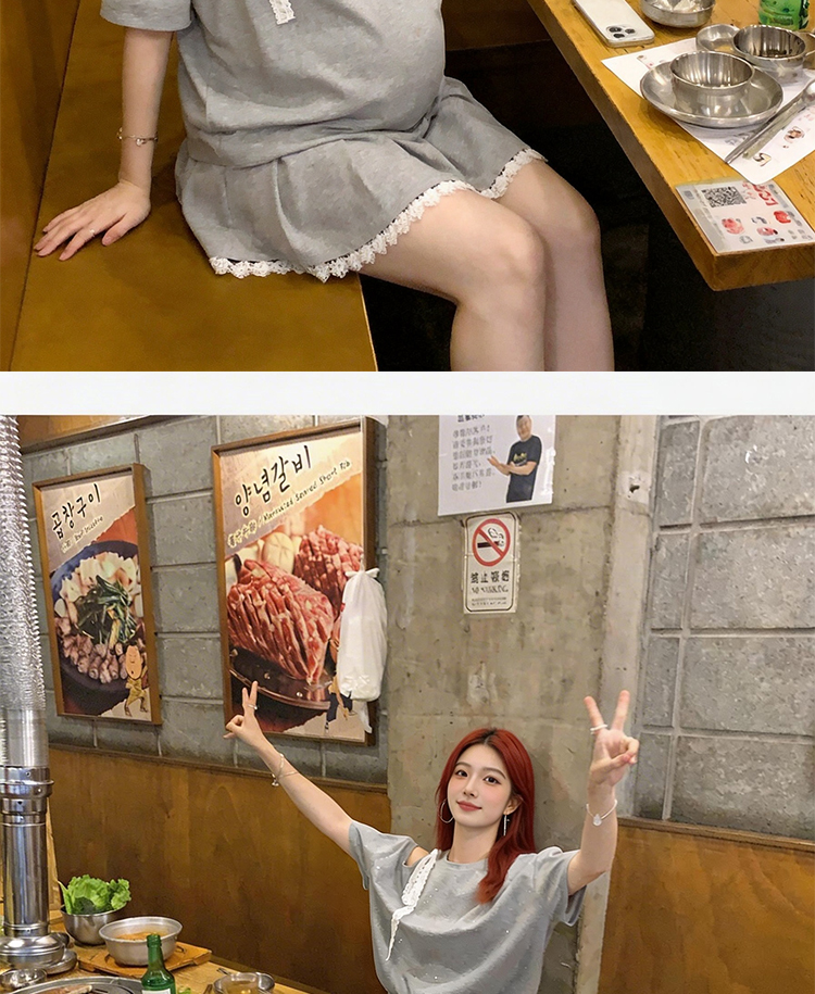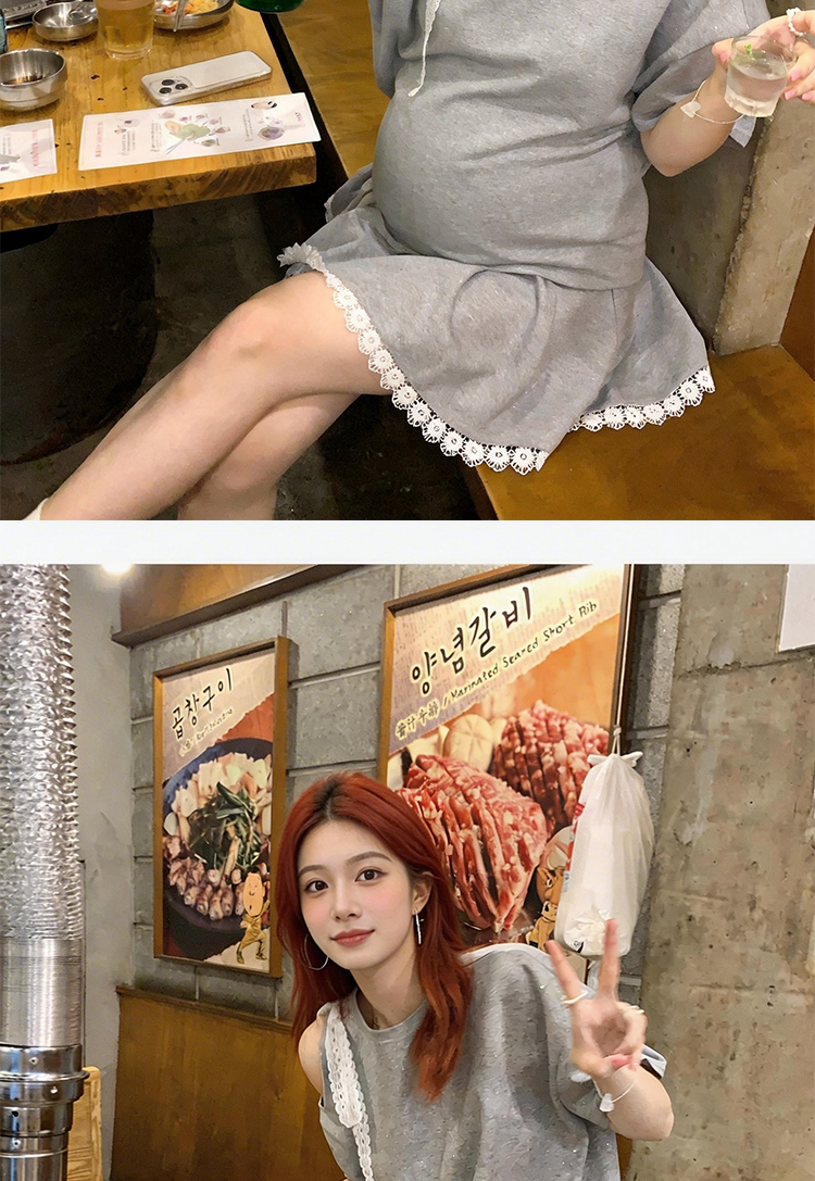 실사 임산부 세트 여름 새로운 한국 스타일 루즈핏 캐주얼 패션 임산부 투피스 세트 맨위 반바지