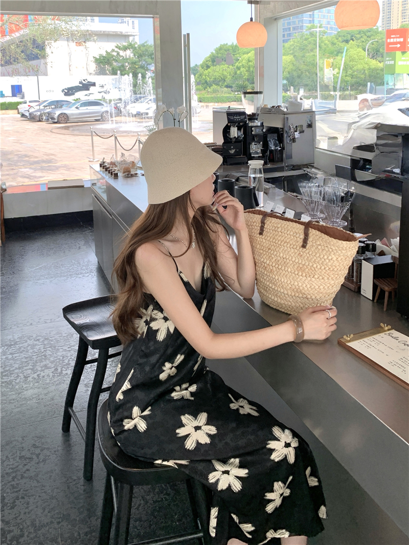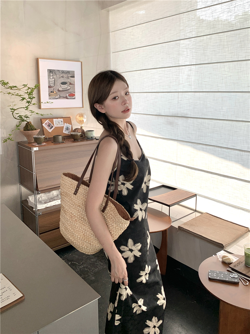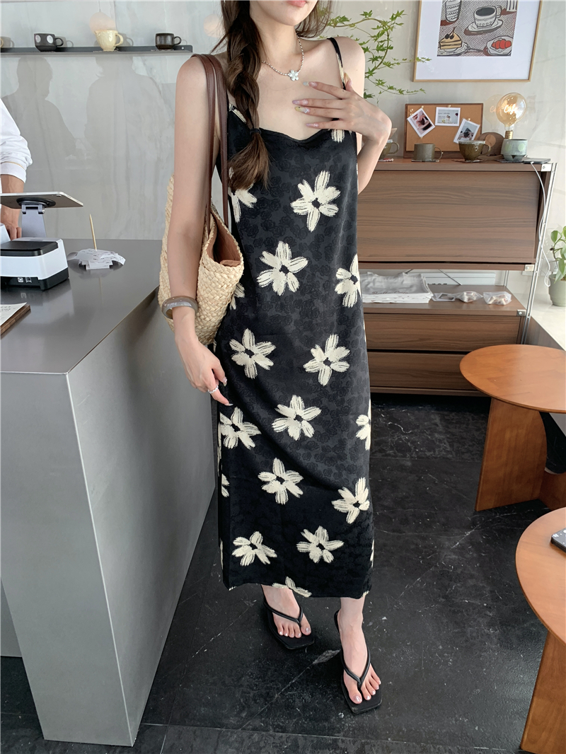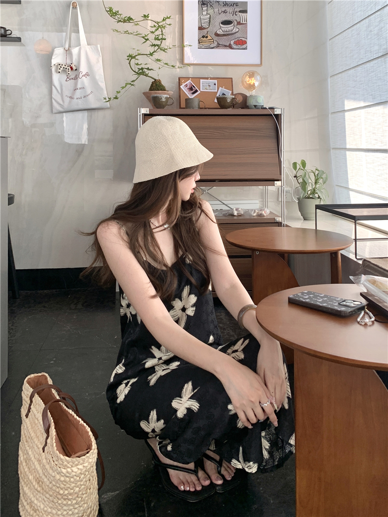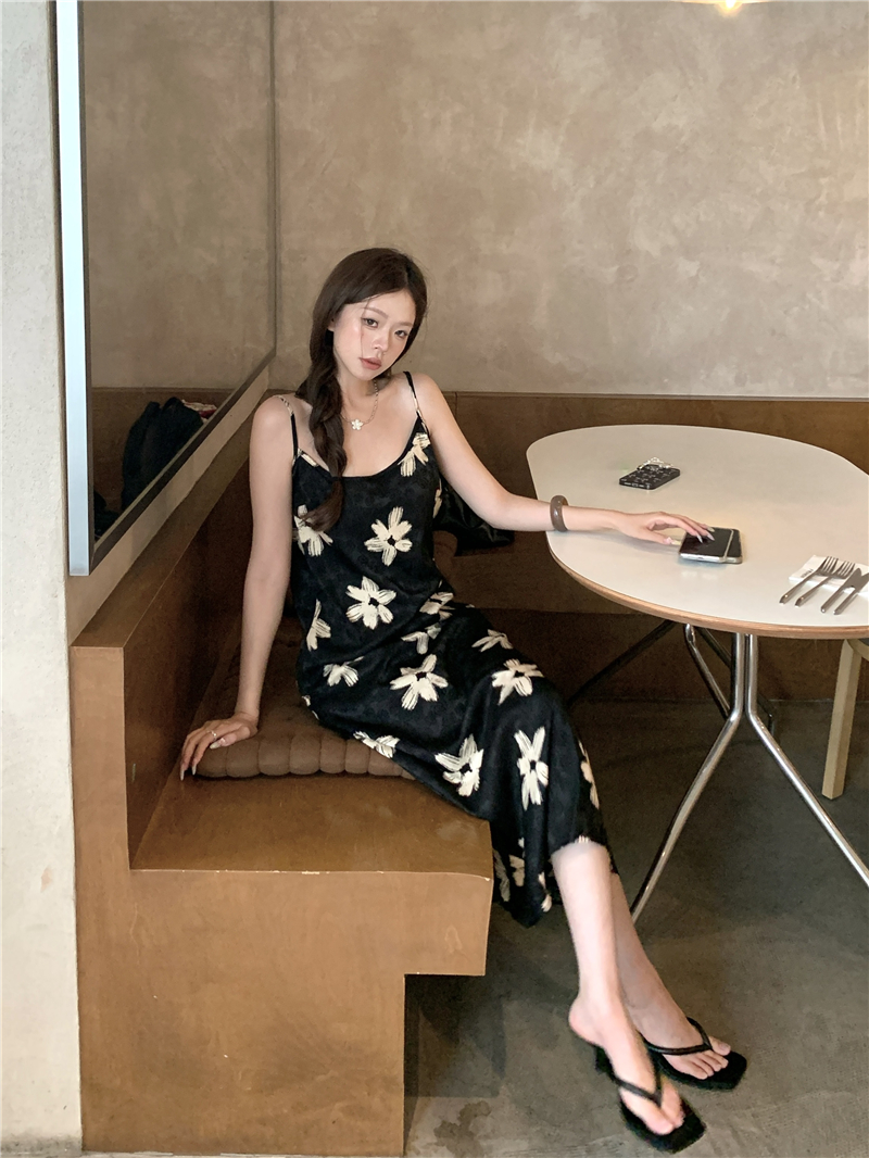 뜨거운 전체 네트워크 착용 가져 가라. 26 여름 켜기 새로운 마 면 바닥 재료 프린트 드레스 꽃무늬 스택 착용 세련된 슬립