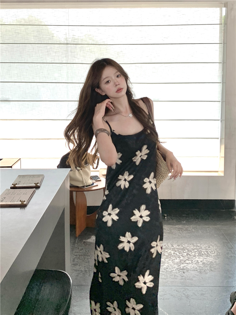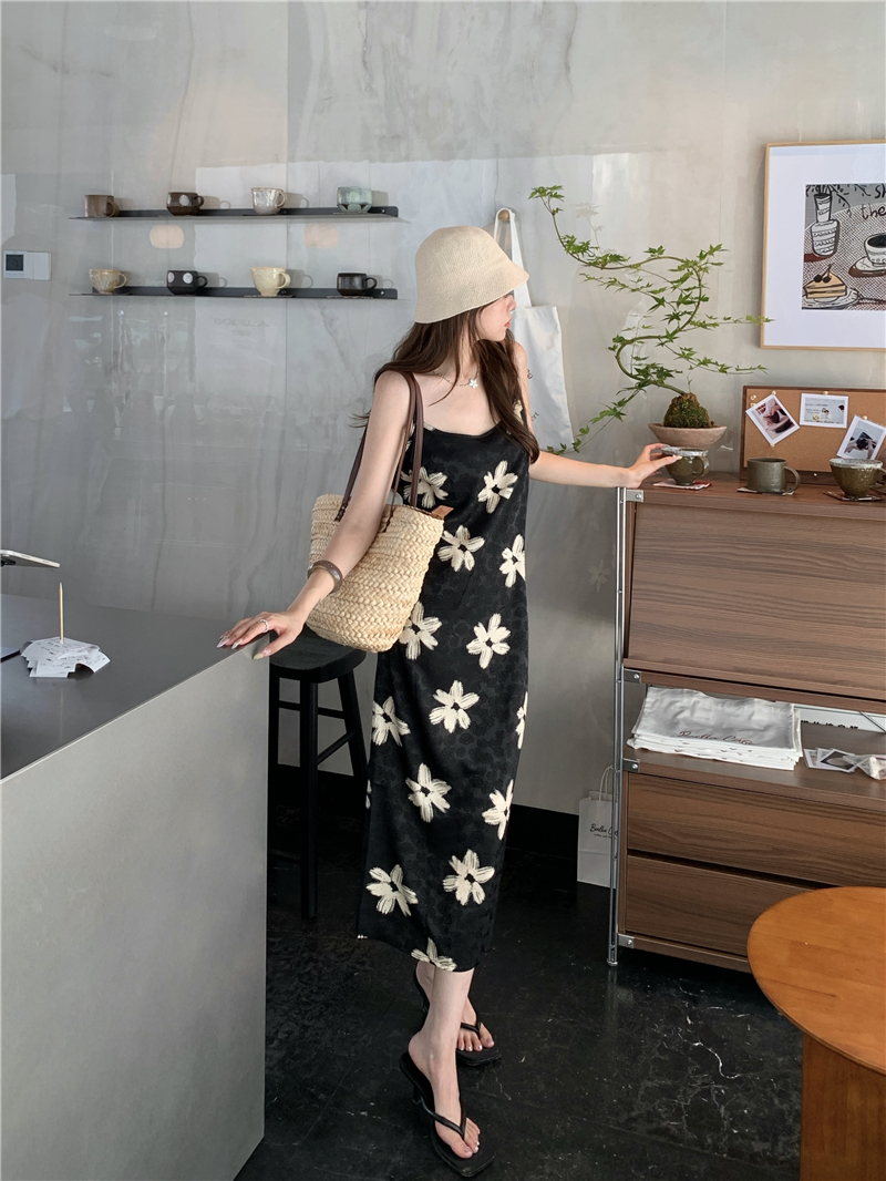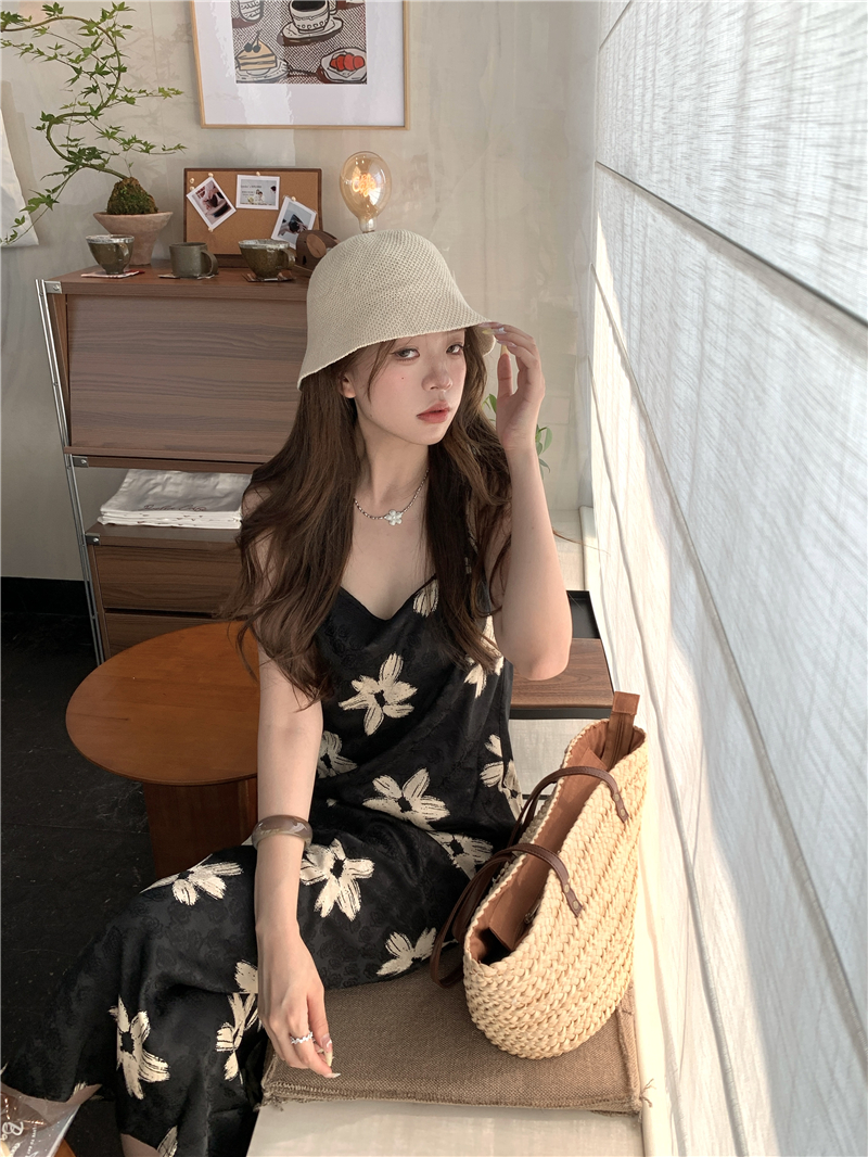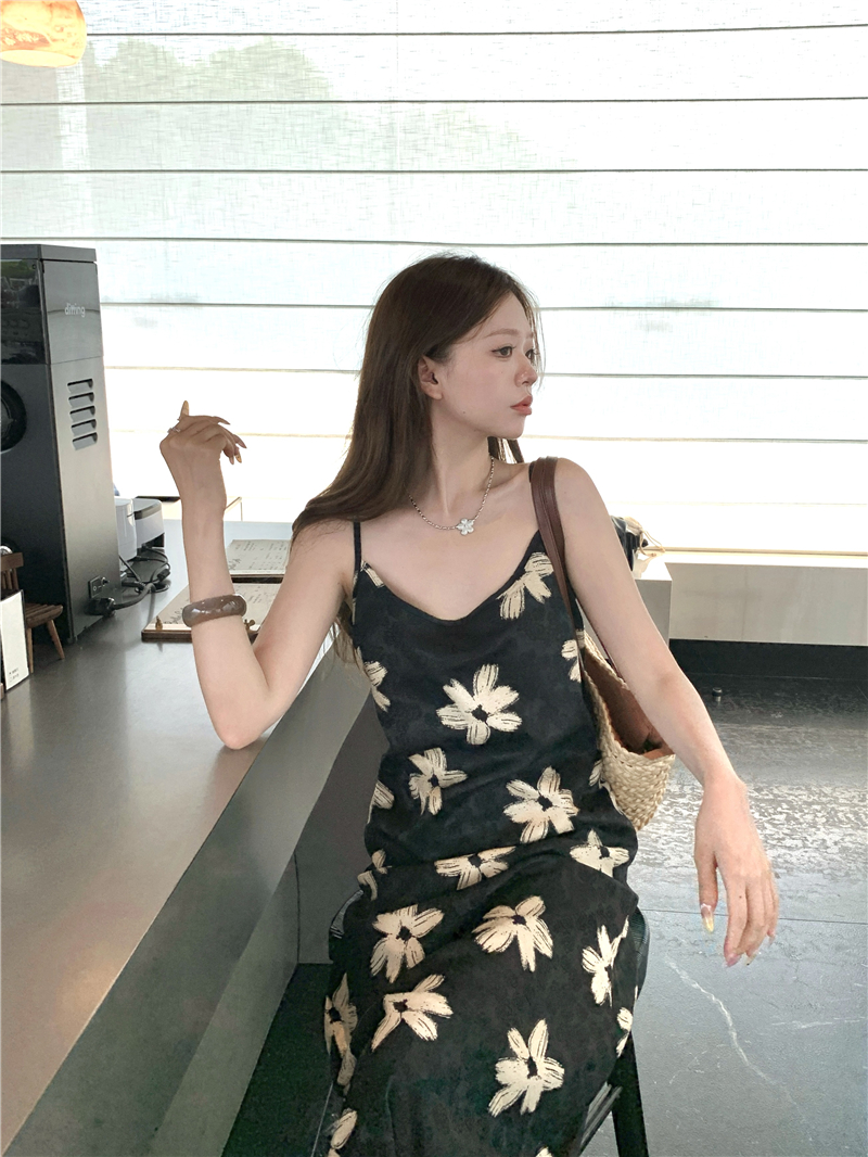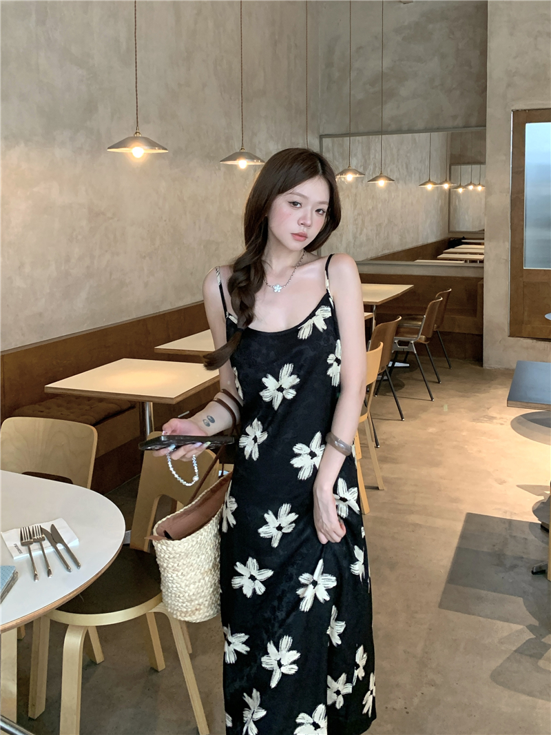 뜨거운 전체 네트워크 착용 가져 가라. 26 여름 켜기 새로운 마 면 바닥 재료 프린트 드레스 꽃무늬 스택 착용 세련된 슬립