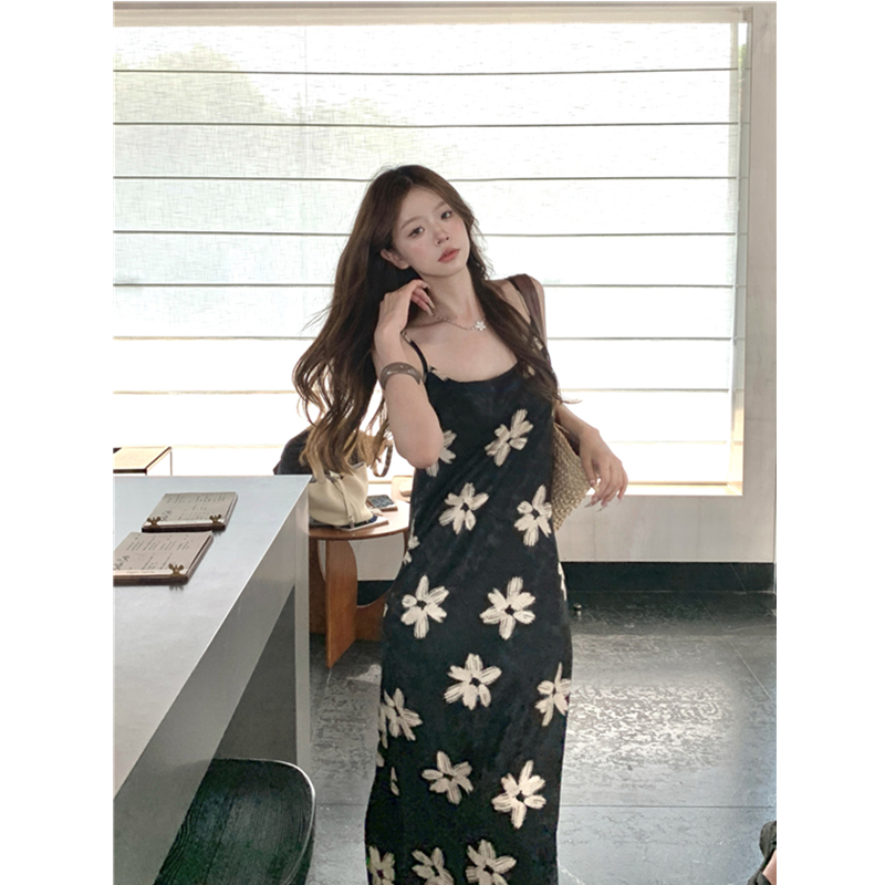 실사 정가 새로운 중식 국풍 레트로 체크무늬 슬립 여성 드레스 디자인 센스 여름 프랑스식 몸매 가꾸기 롱 스커트