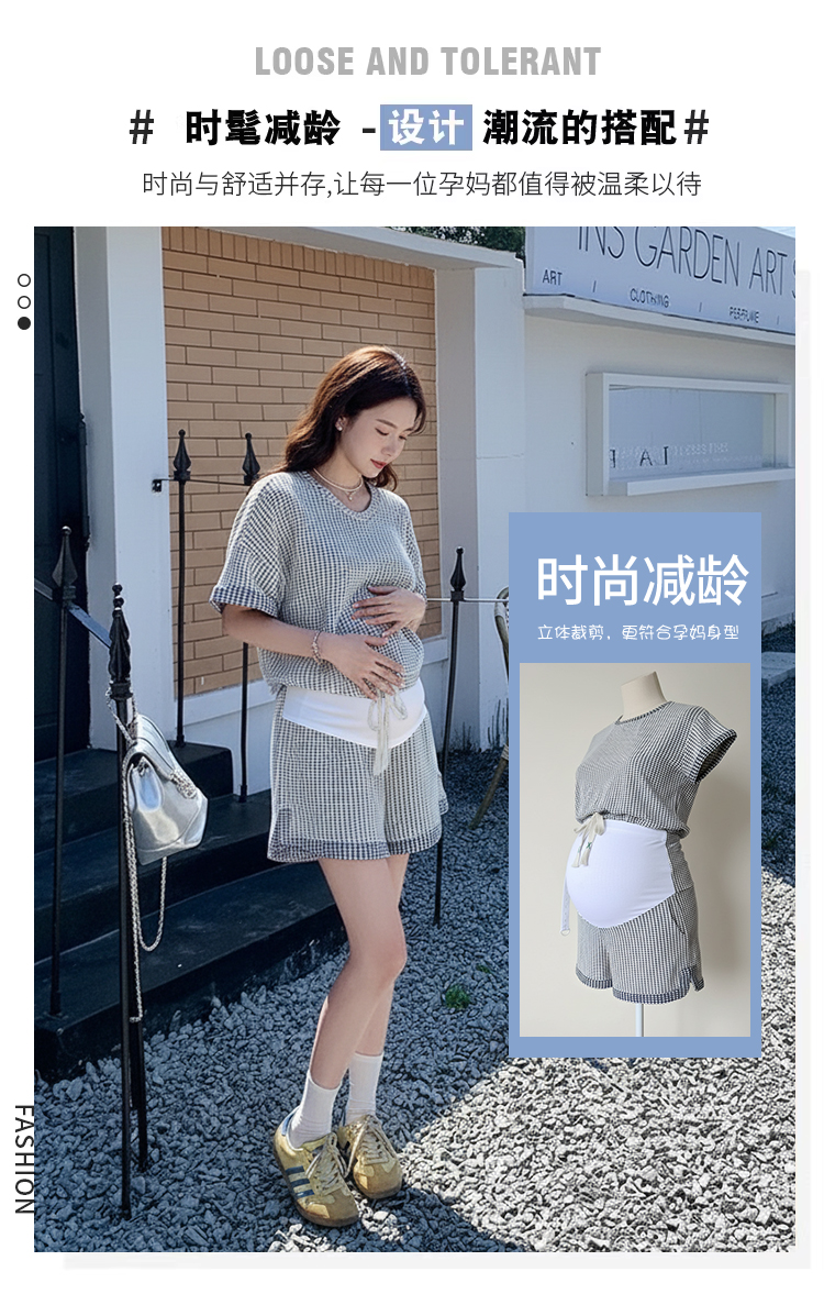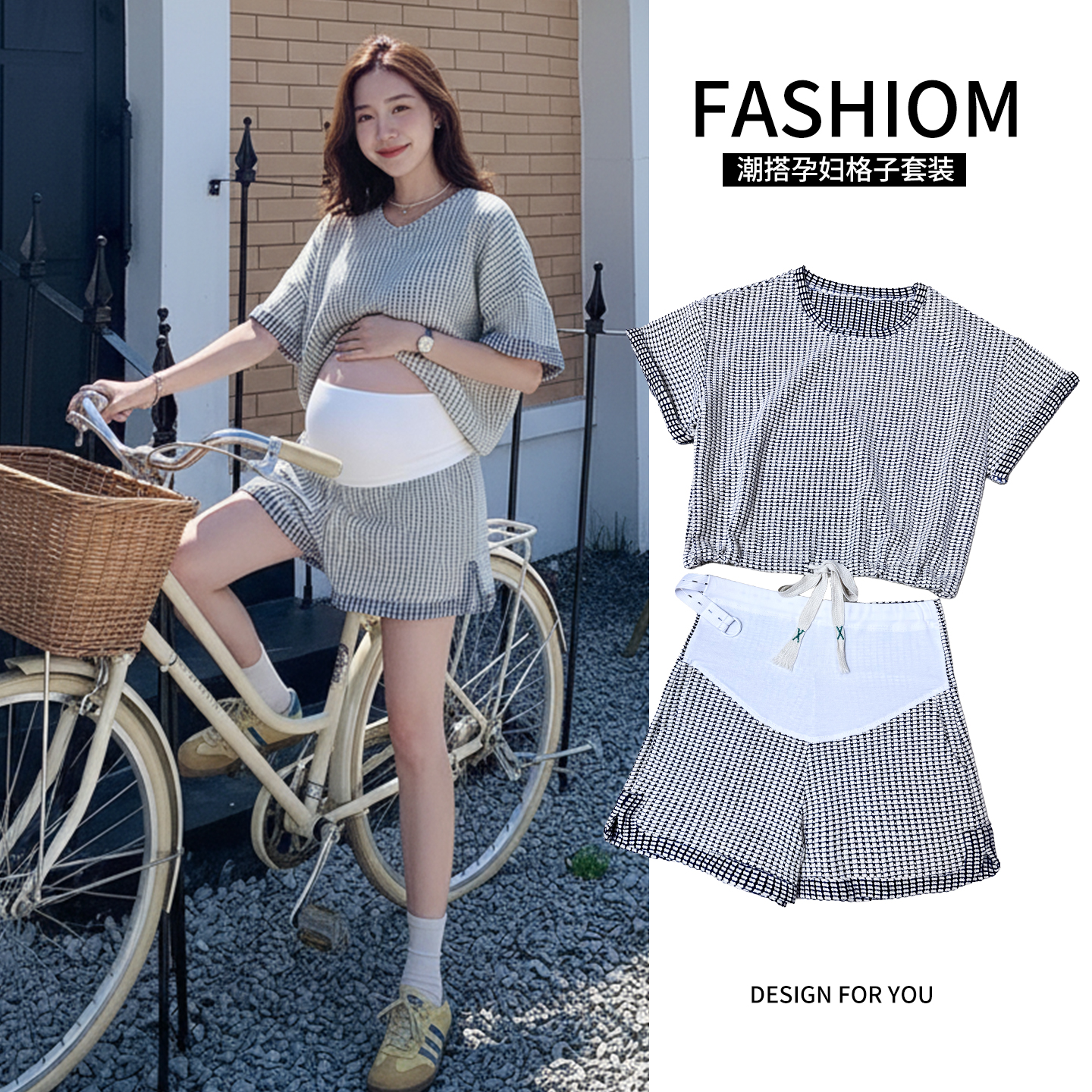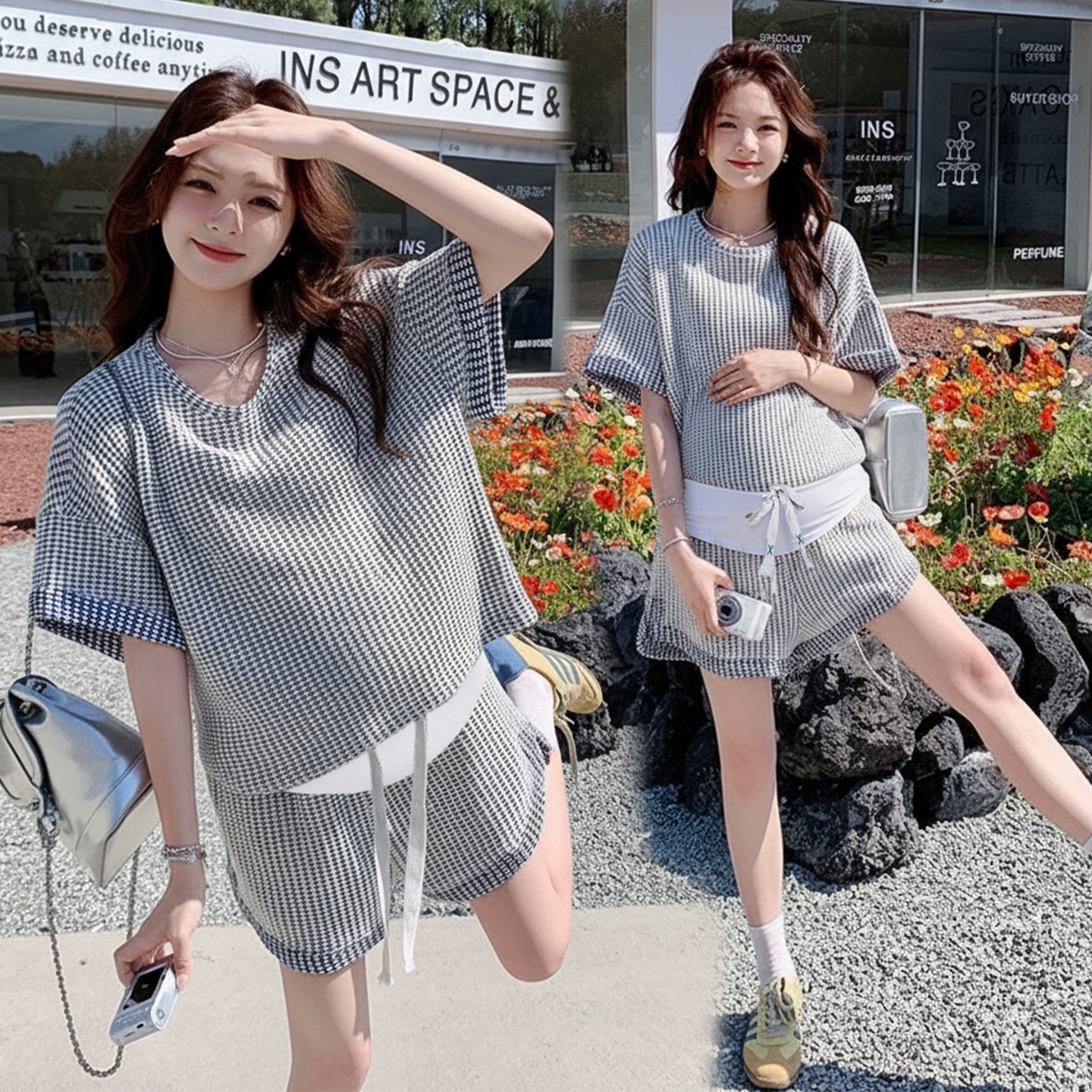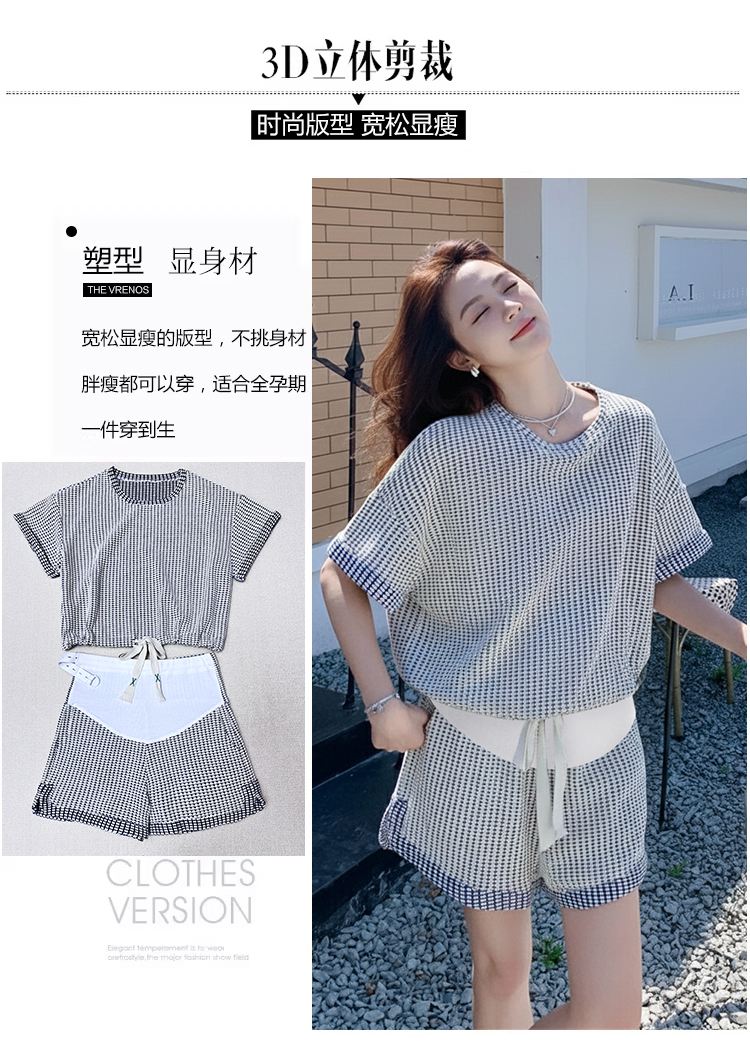실사 임산부 세트 여름 새로운 한국 스타일 루즈핏 캐주얼 패션 임산부 투피스 세트 맨위 반바지