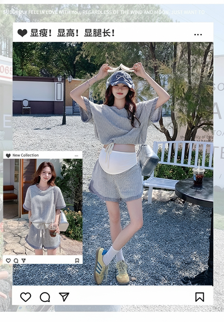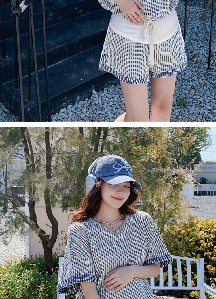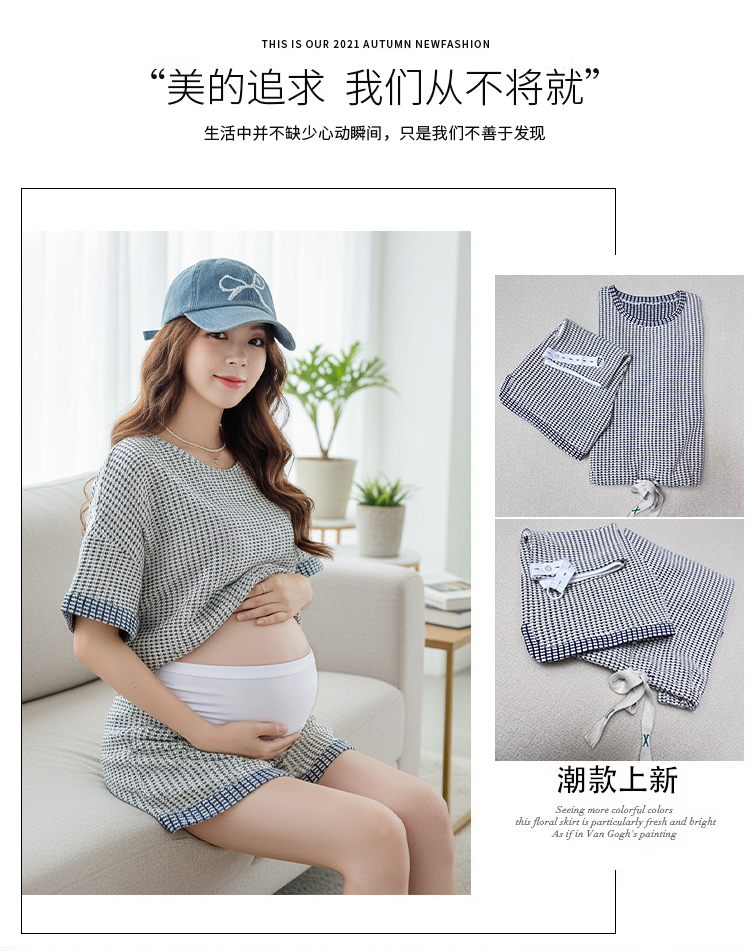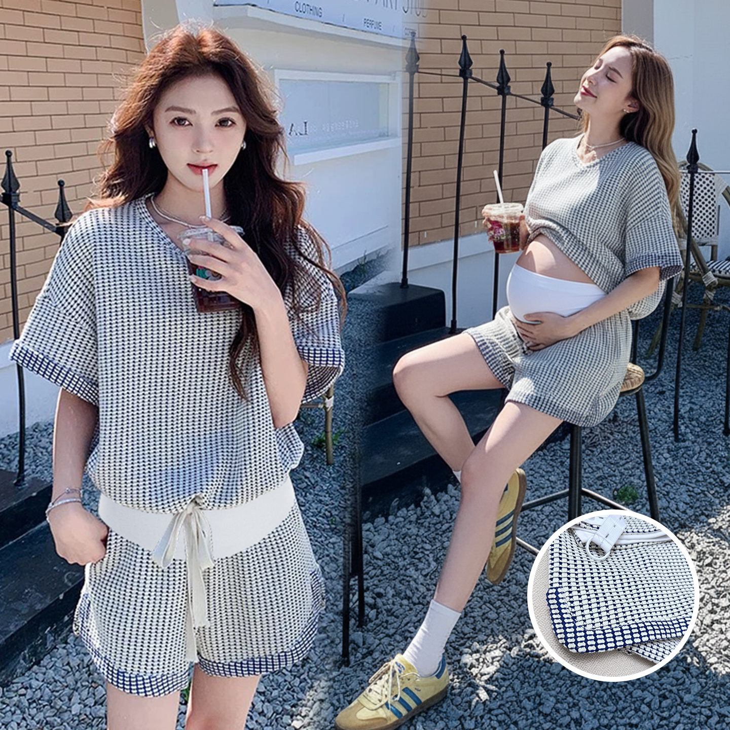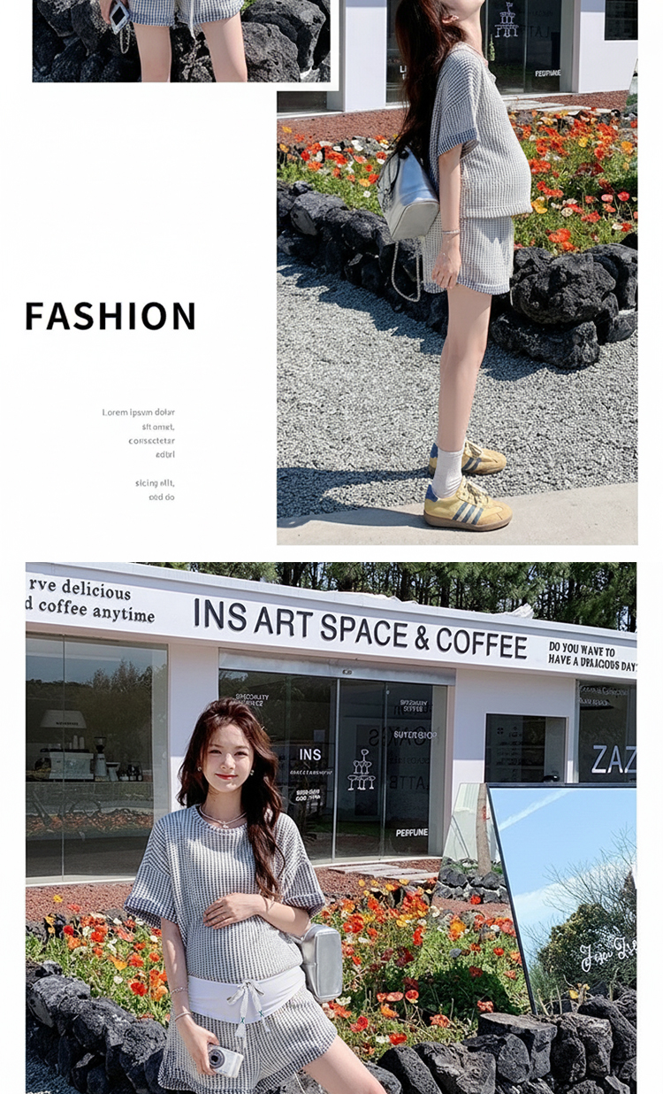 실사 임산부 세트 여름 새로운 한국 스타일 루즈핏 캐주얼 패션 임산부 투피스 세트 맨위 반바지