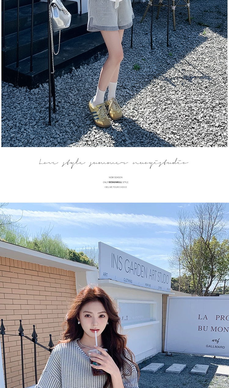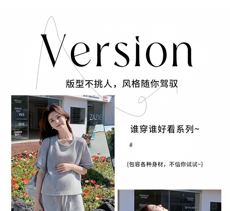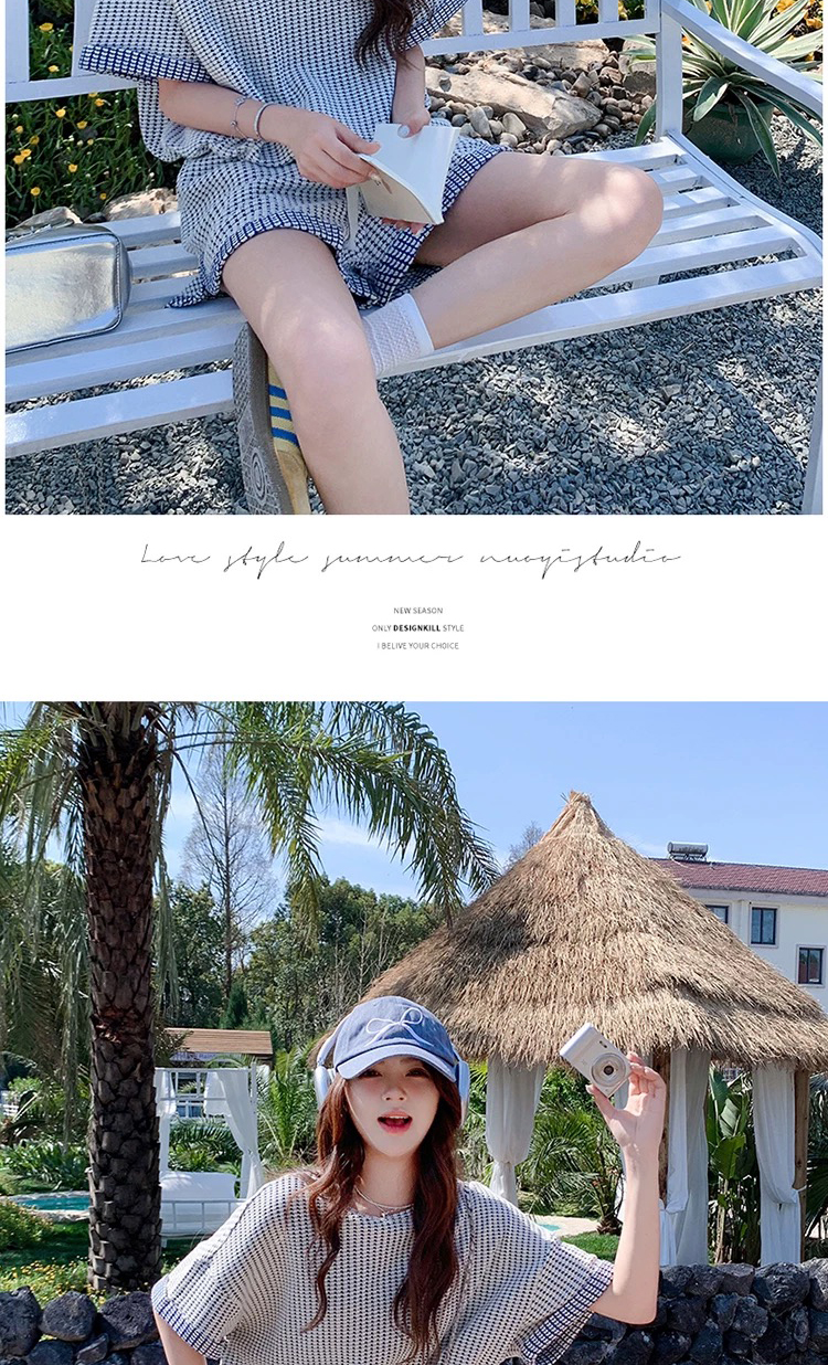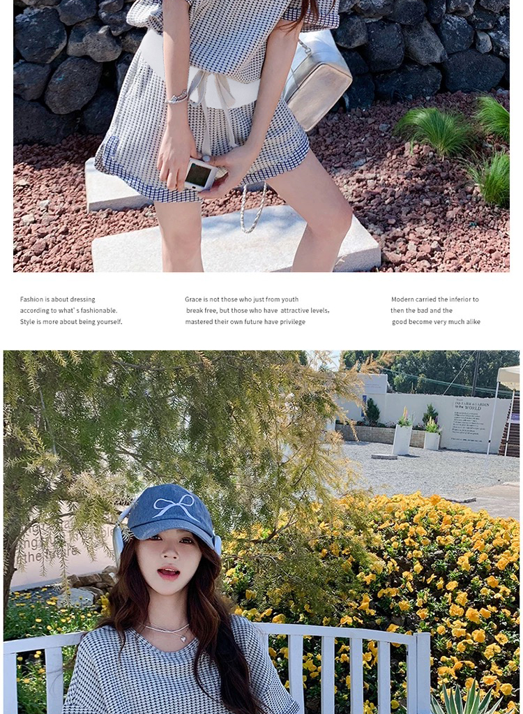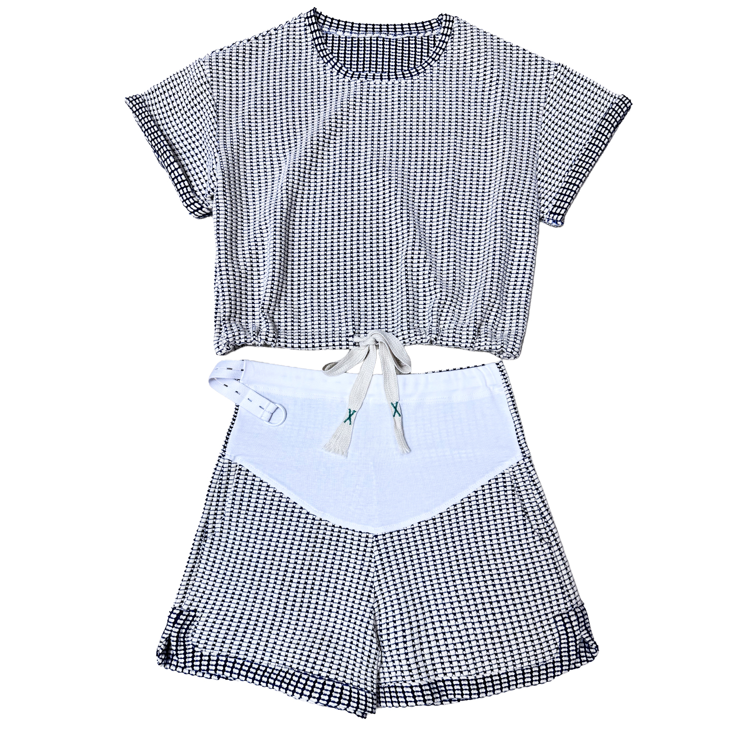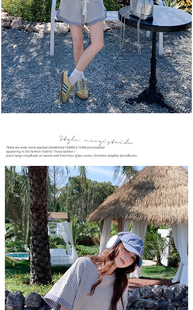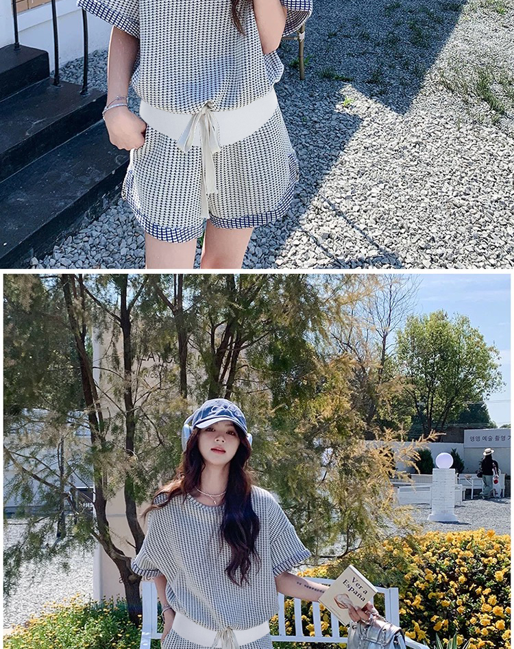 지금 임산부 세트 새로운 패치워크 디자인 루즈핏 맨위 프랑스식 달콤한 다용도 쇼트 스타일 주름 반팔 미니 스커트 세트