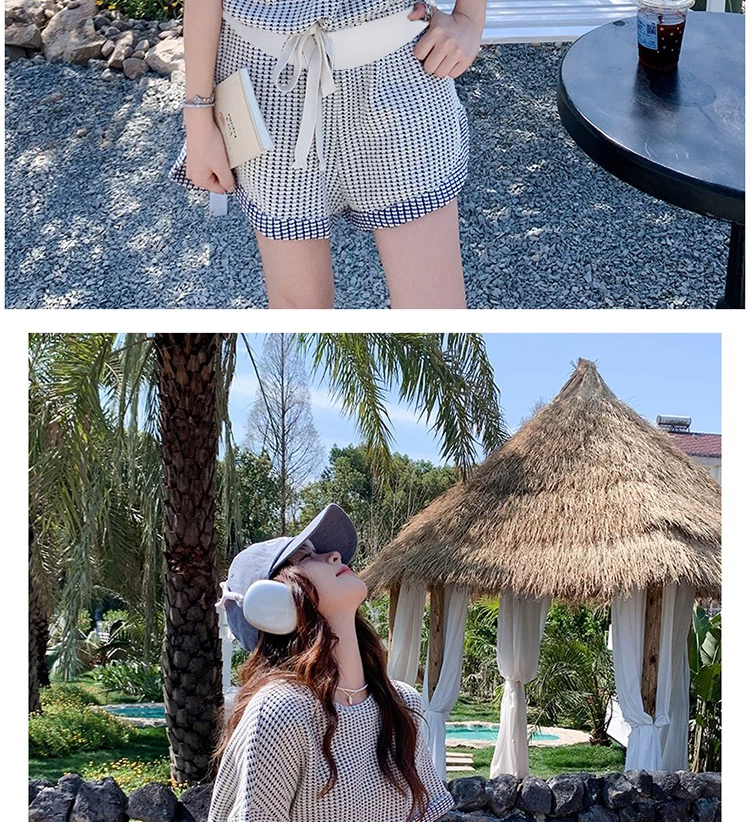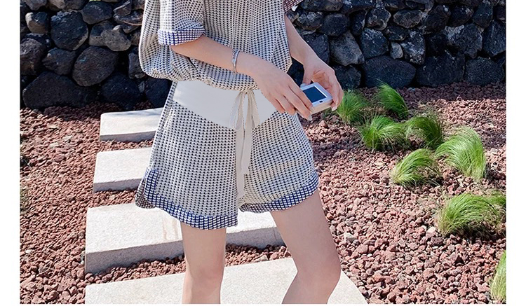 주간 고양이 품질 실사 여름 임산부 프랑스식 디자인 센스 주름 거품 소매 맨위 베이지 색 넓은 다리가 짧다. 바지