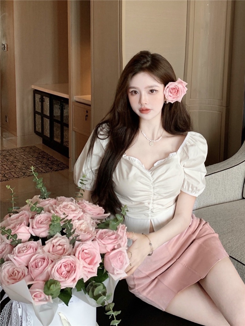 Mingyan 아름다움 대 주요 추진력 높은 품질 전체 점수 모델링 고대 조기 달콤한 자매 분위기 자수 비스듬한 어깨 레이스 작은 셔츠