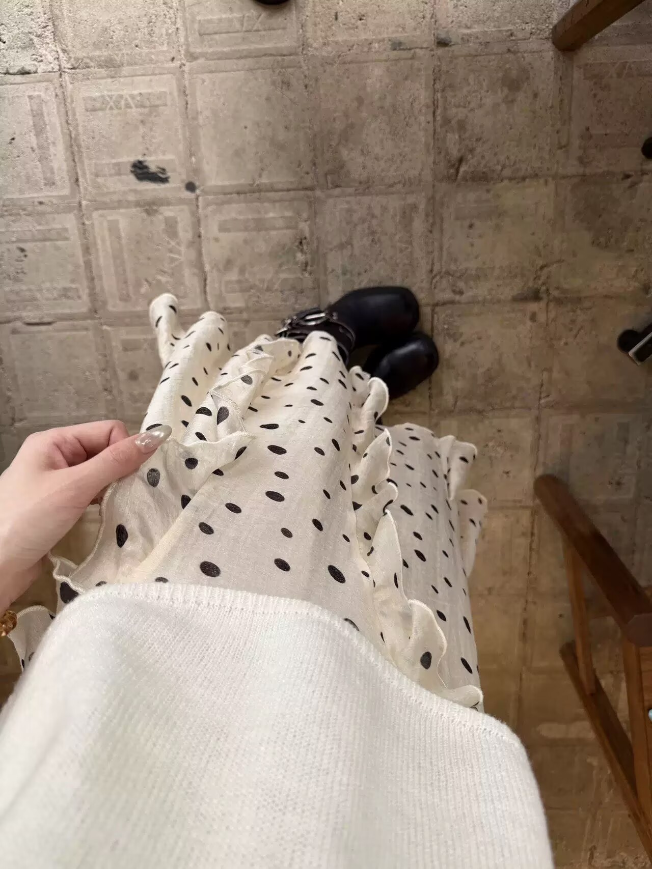 oker 챕터 쉘 정품 도트 무늬 프릴 반신 스커트 요정 치마 주간 실크 한 부서 26 이른 봄 새로운