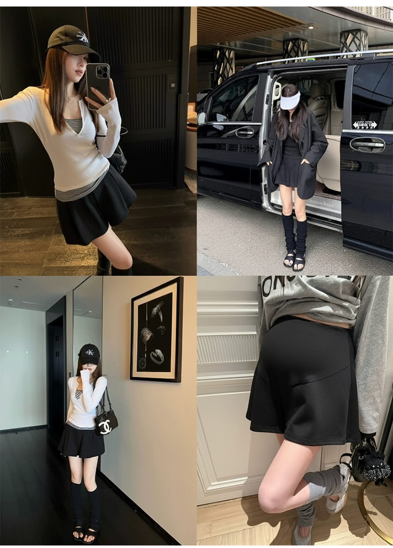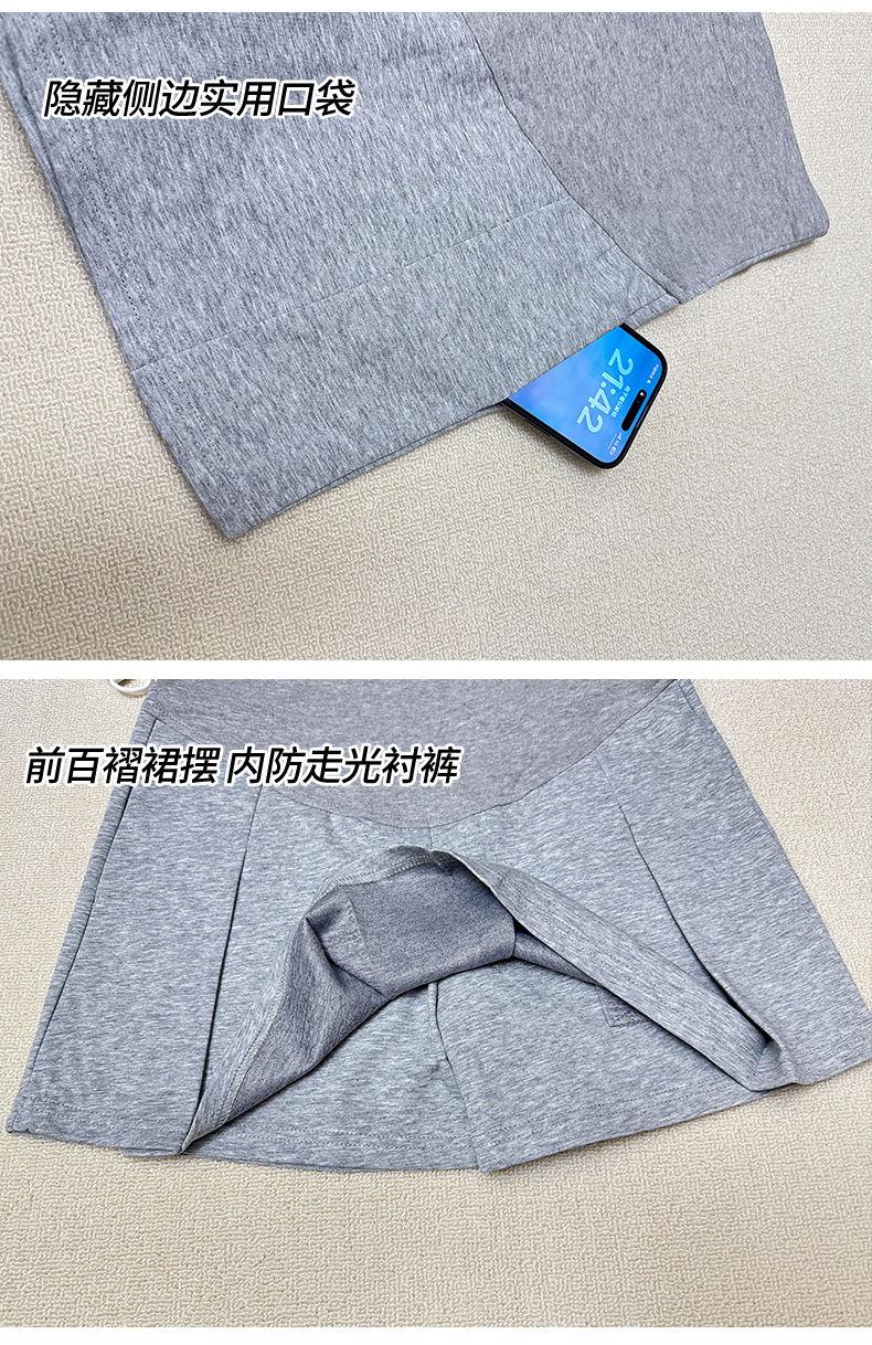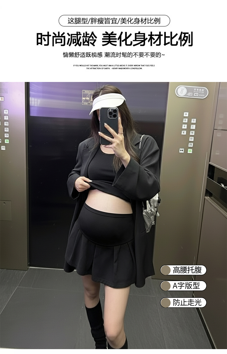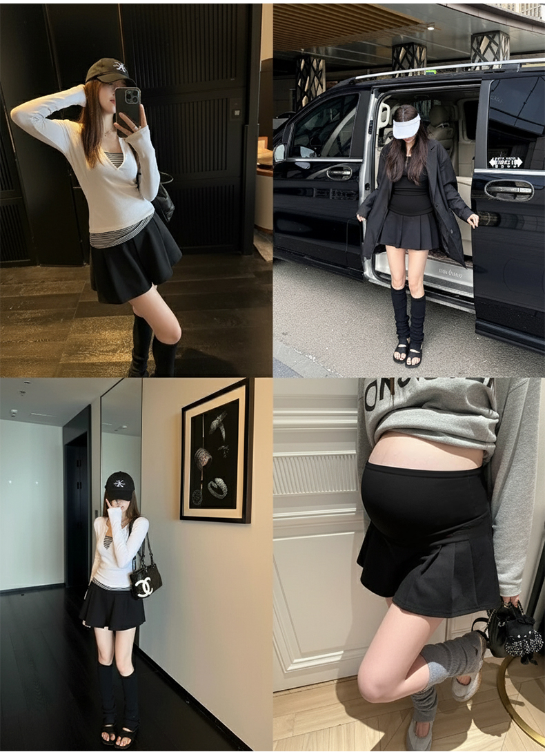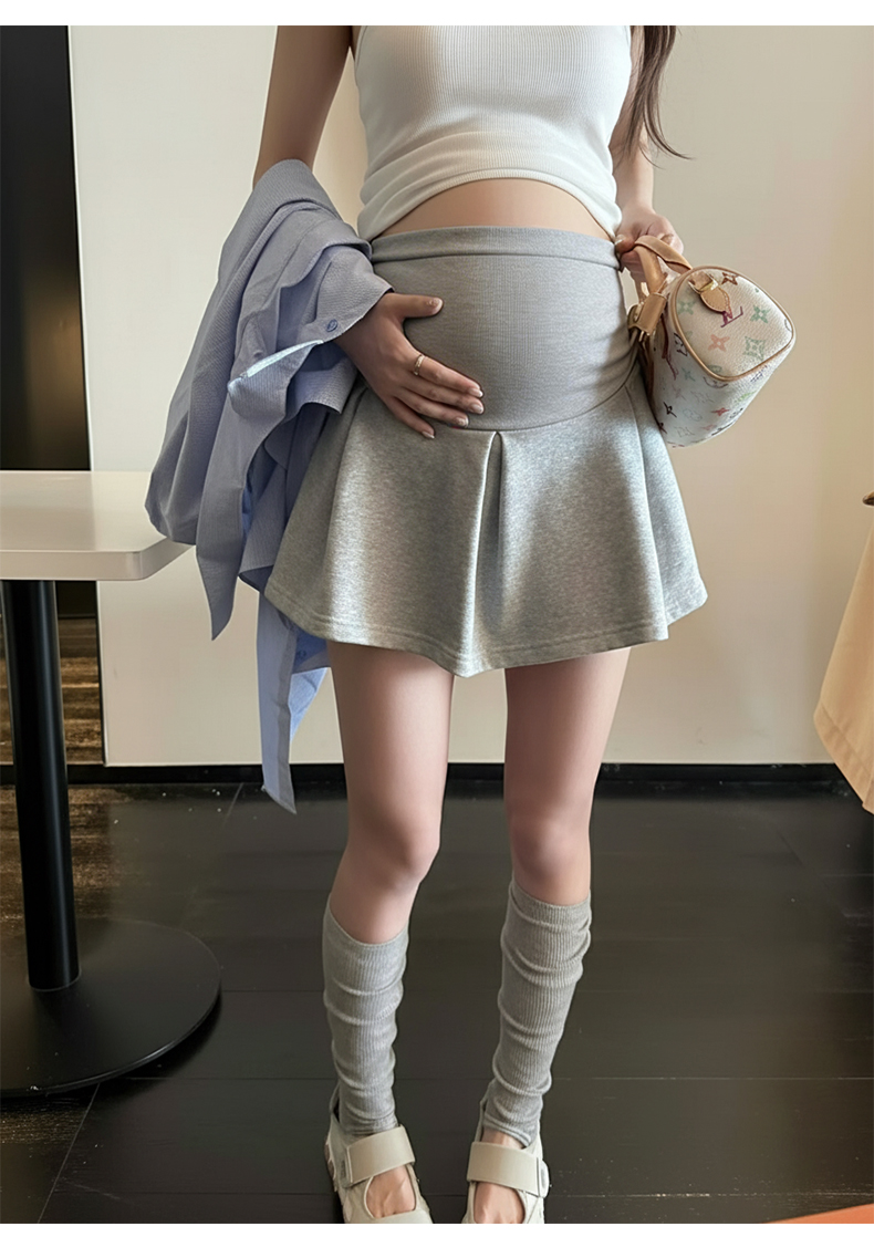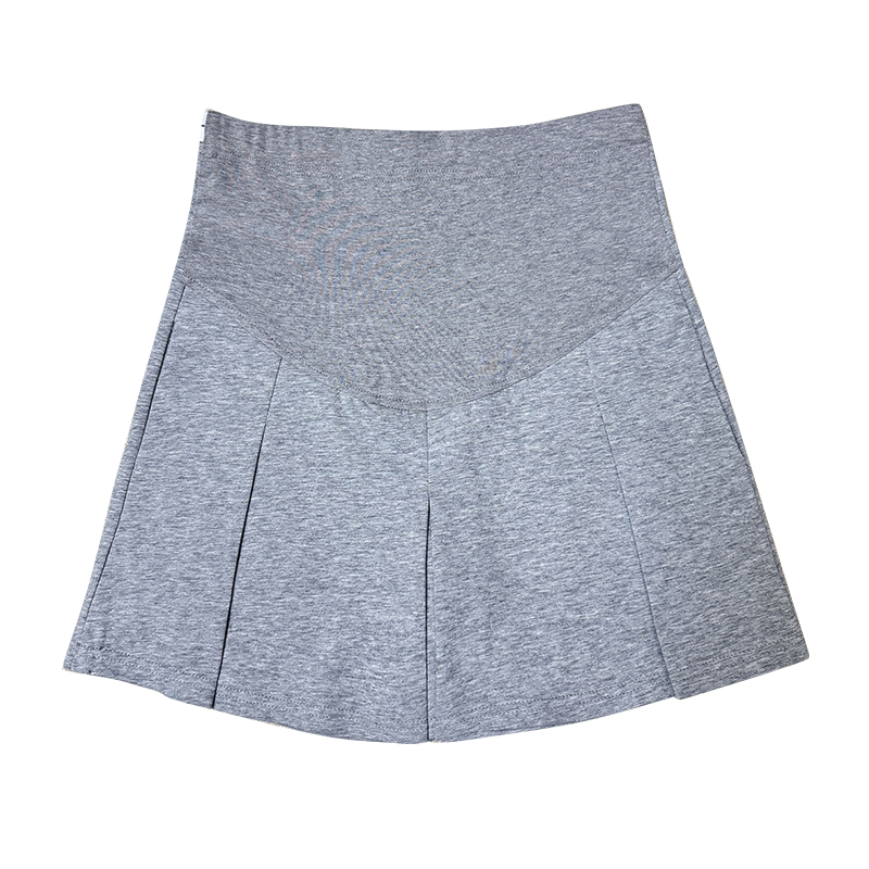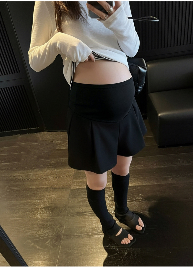 임산부 아세트산 새틴 똑똑한 주름 단색 다용도 반신 스커트 하이웨이스트 한 마디 복부 지지 중간 길이 스커트