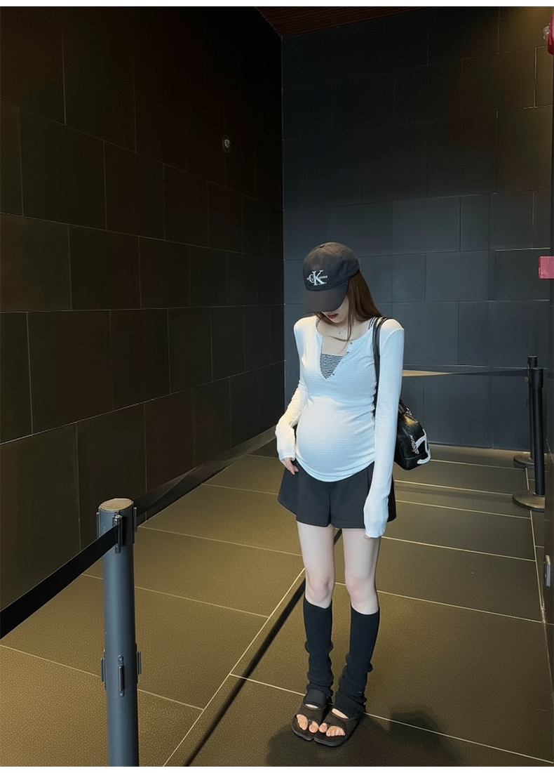 실사 임산부 세트 여름 새로운 한국 스타일 루즈핏 캐주얼 패션 임산부 투피스 세트 맨위 반바지