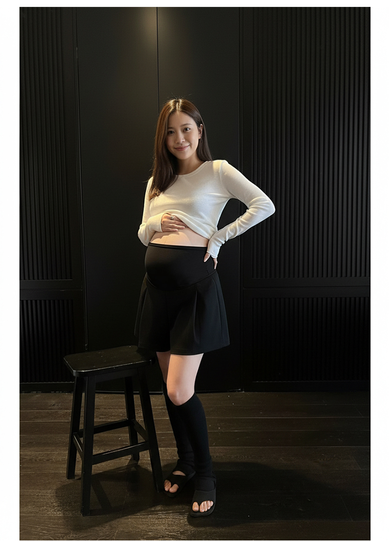지금 임산부 여름 새로운 켄 콩 한 마디 치마바지 복부 지지 플리츠 표지 넓적 다리 슬림해 보이는 디스플레이 다리 길이 운동 캐주얼 반바지