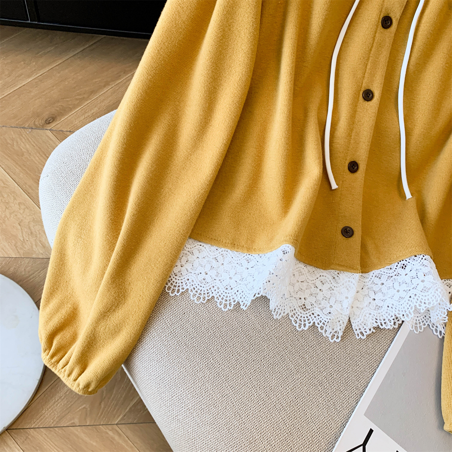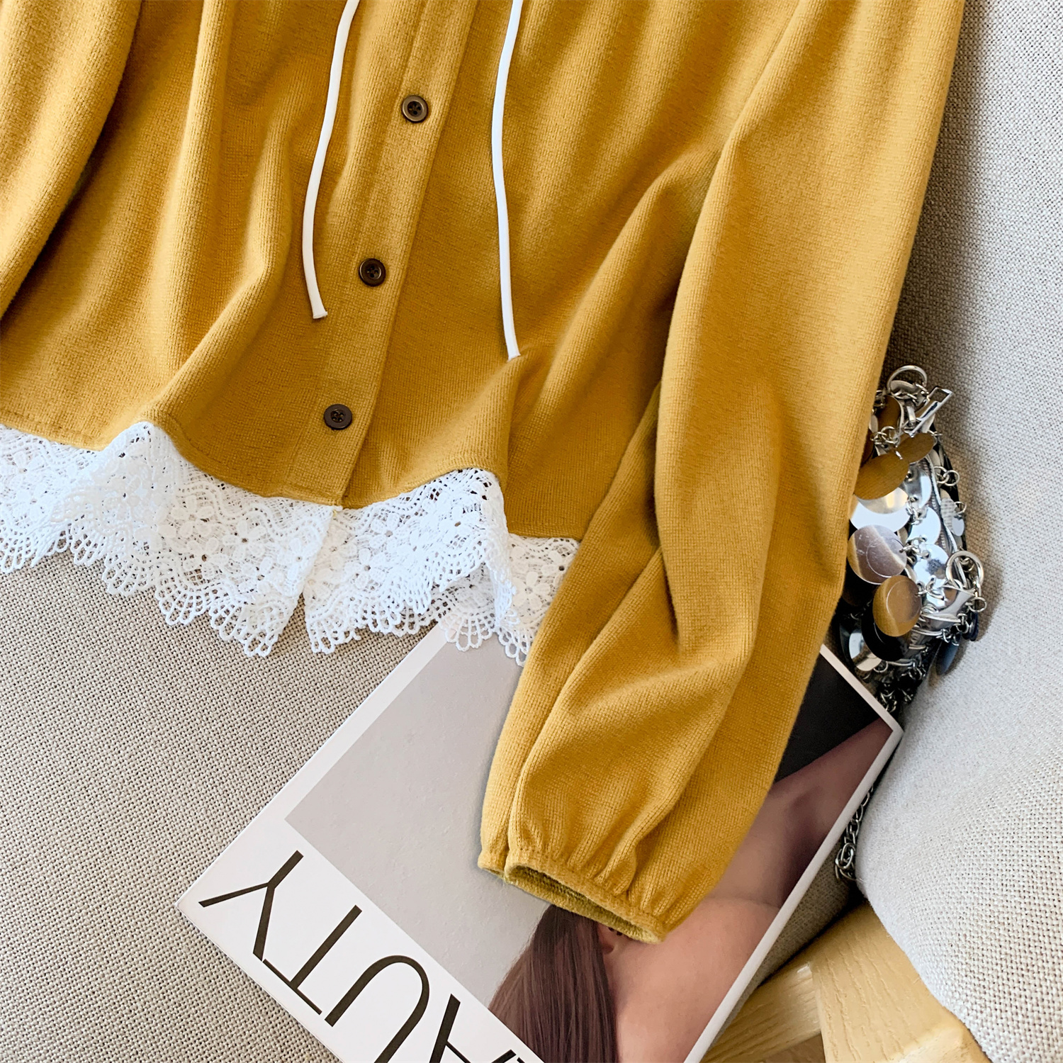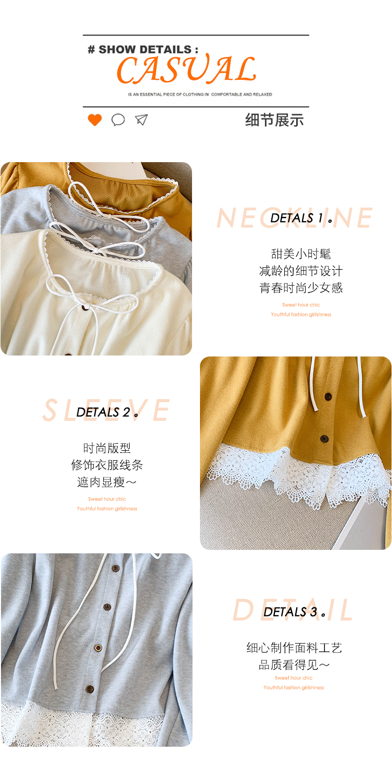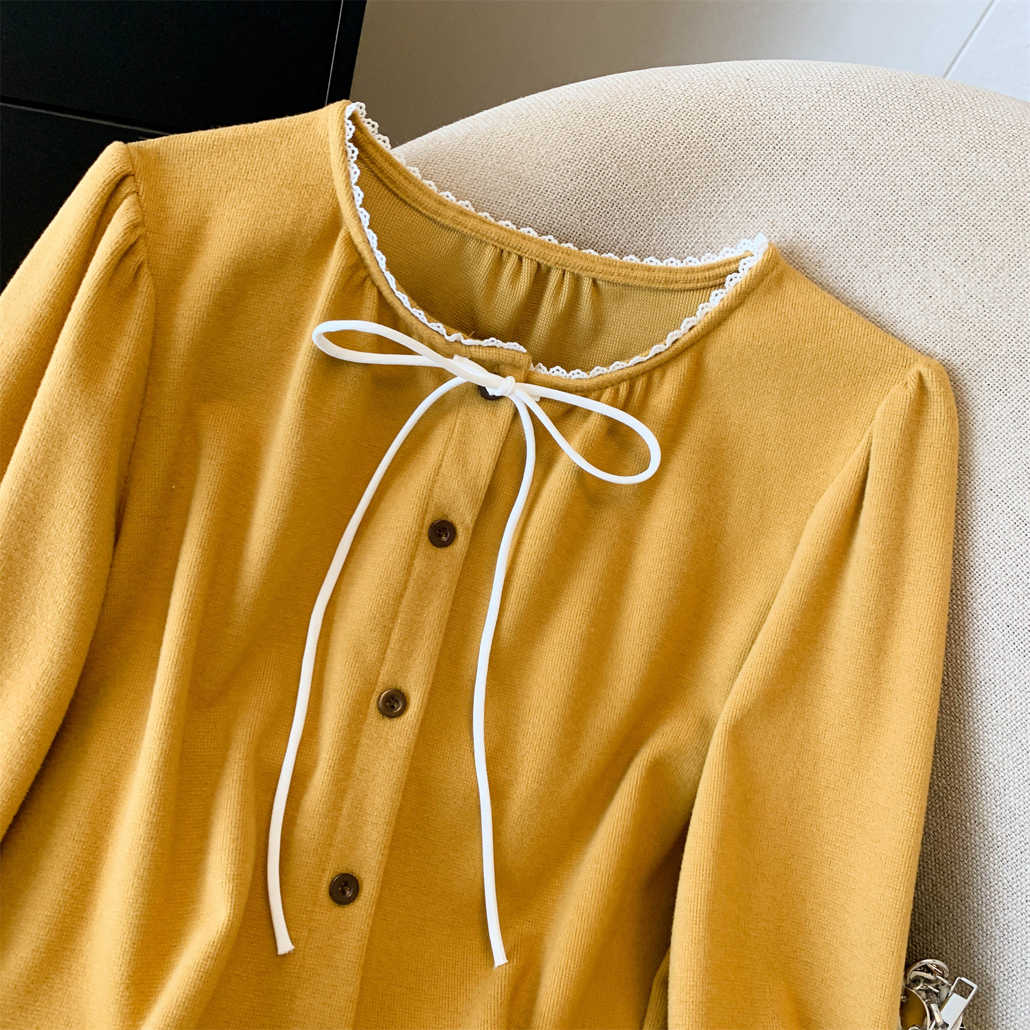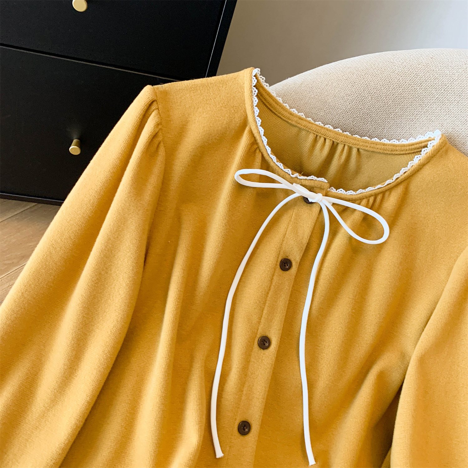 실사 부드러운 바람 크림 한 부서 작은 셔츠 봄 여름 레이스 조각 라운드 넥 긴팔 여성 셔츠