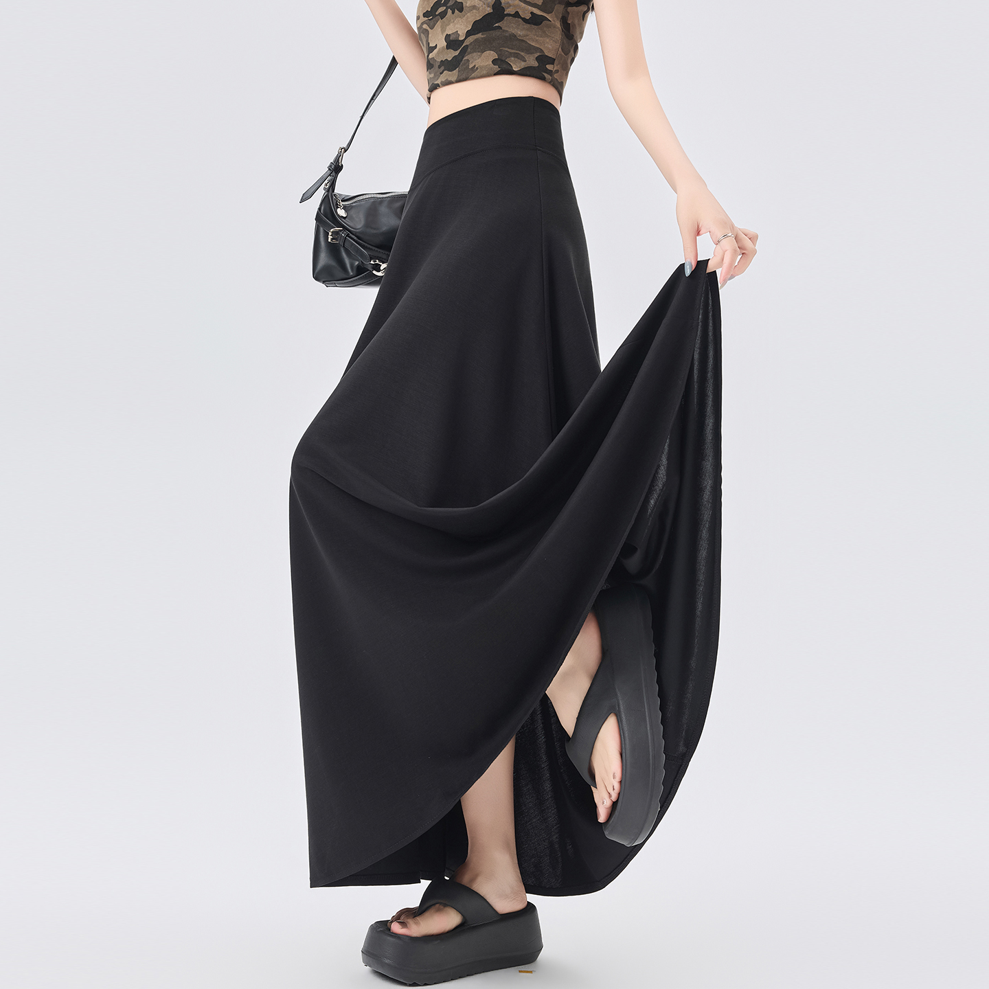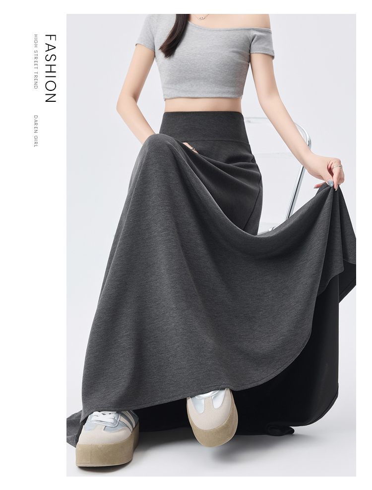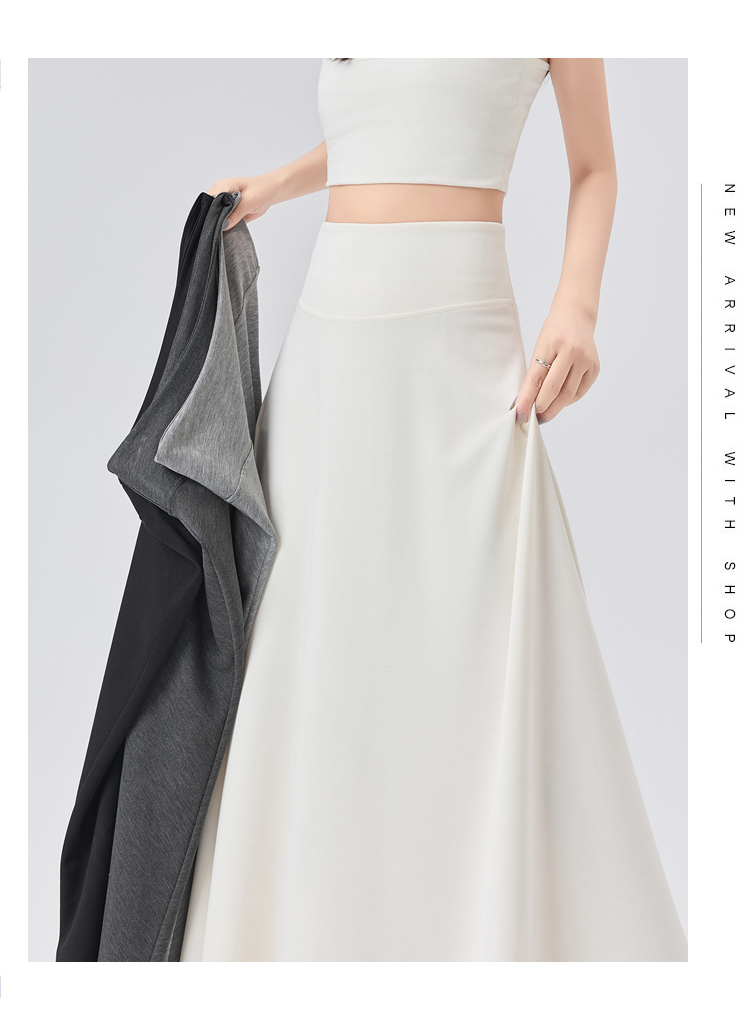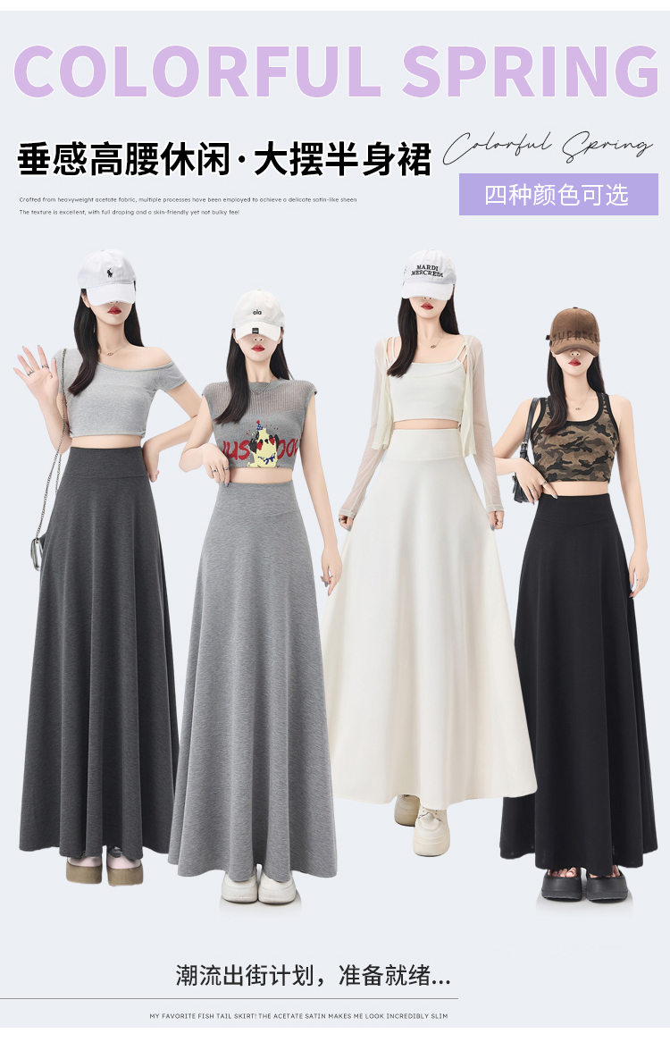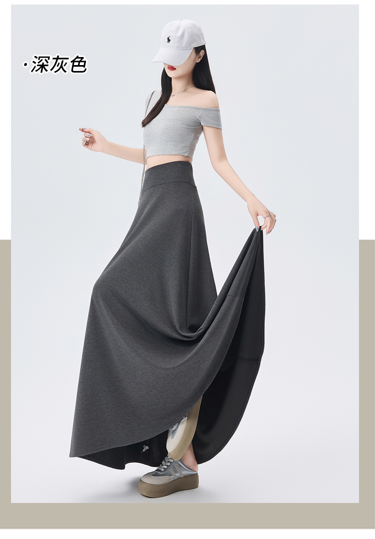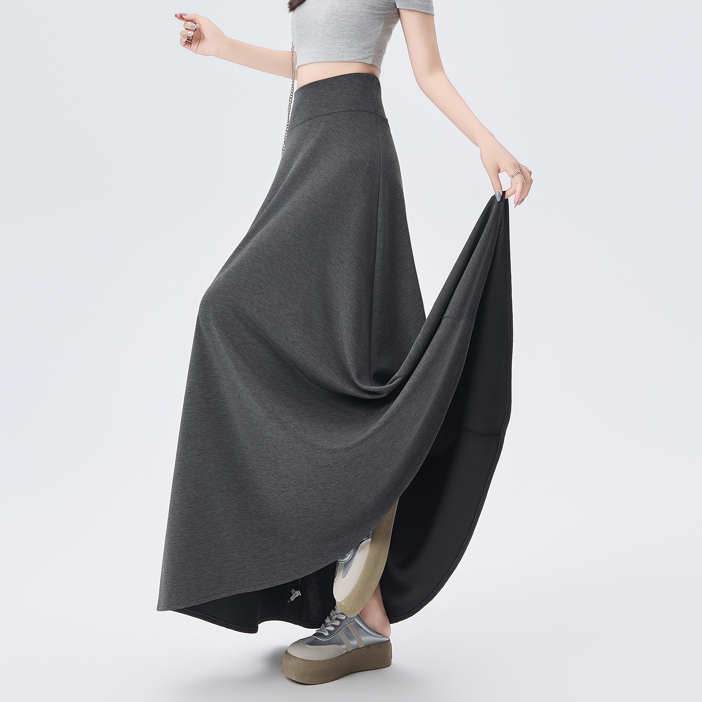 실사 2026 봄 여름 새로운 단색 다용도 중간 스커트 여성 하이웨이스트 슬림해 보이는 큰 진자 한 마디 롱 코트 우산 치마 반신 스커트
