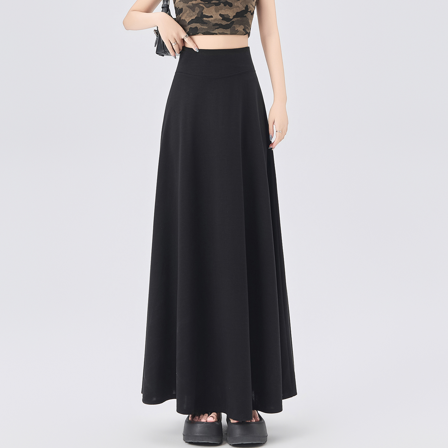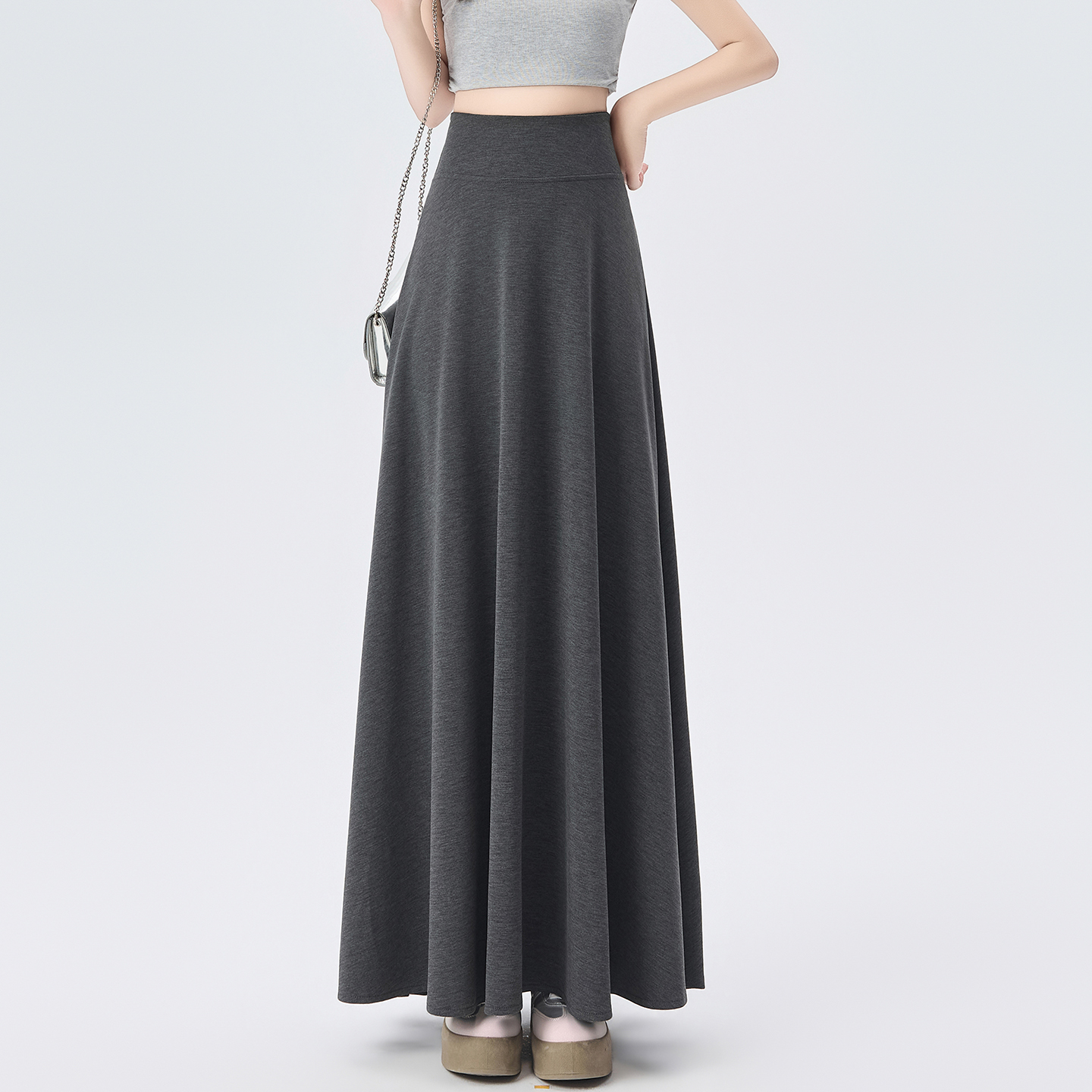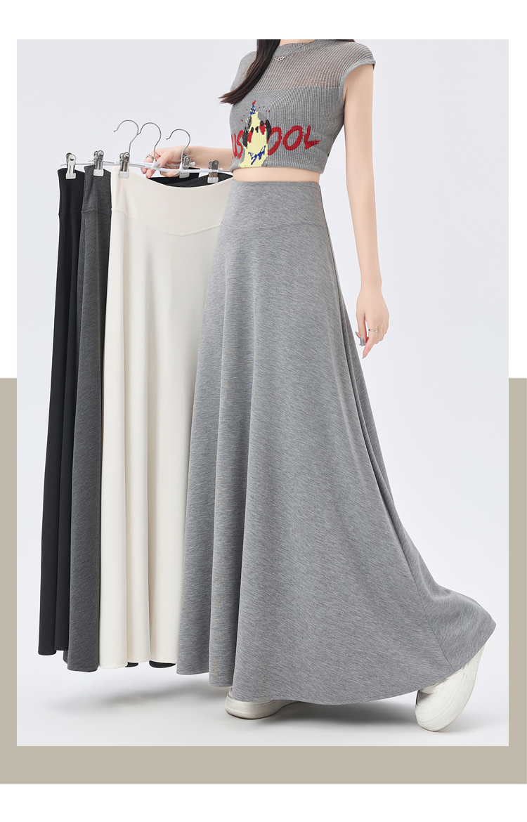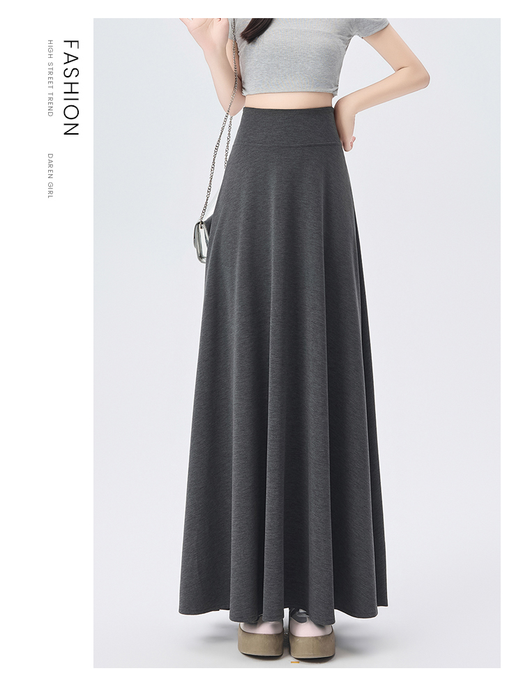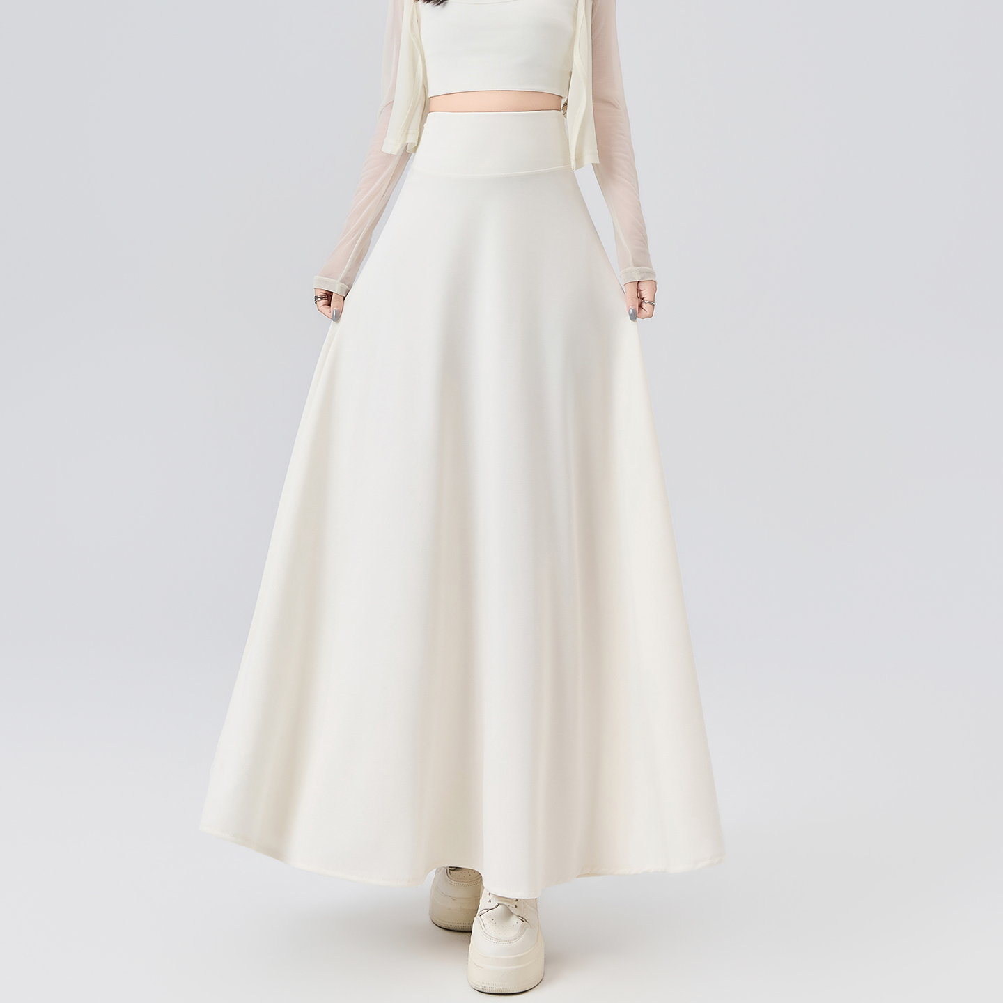 실사 2026 봄 여름 새로운 단색 다용도 중간 스커트 여성 하이웨이스트 슬림해 보이는 큰 진자 한 마디 롱 코트 우산 치마 반신 스커트