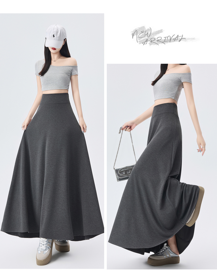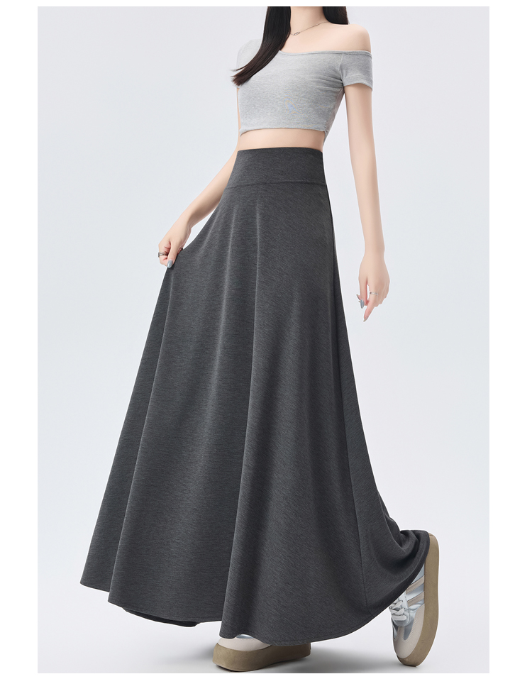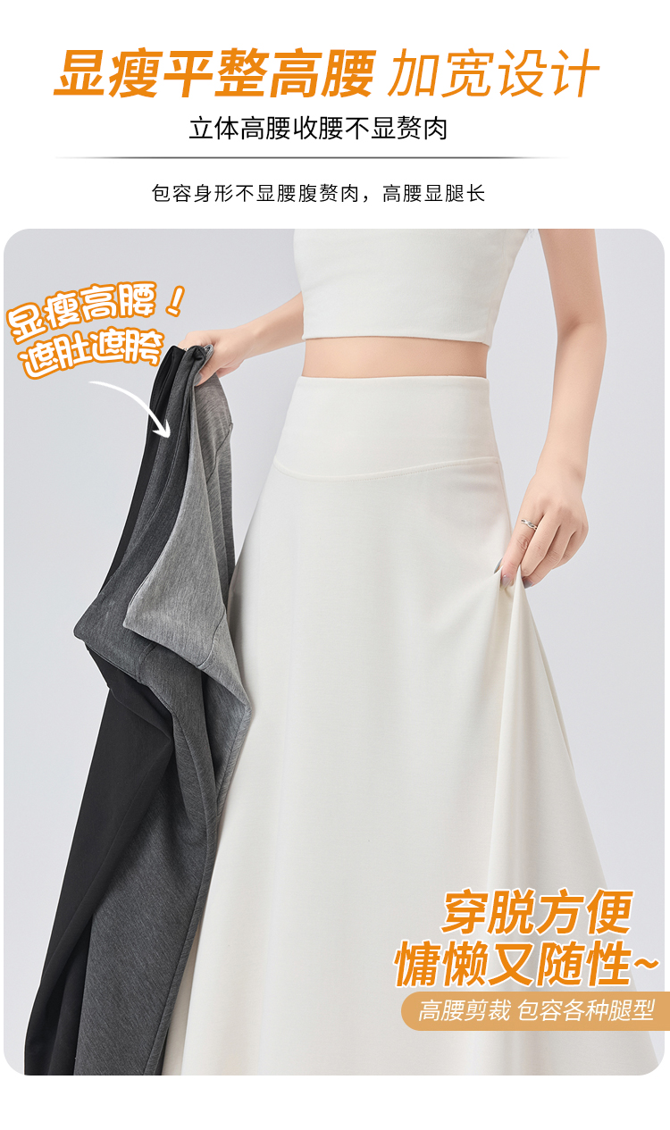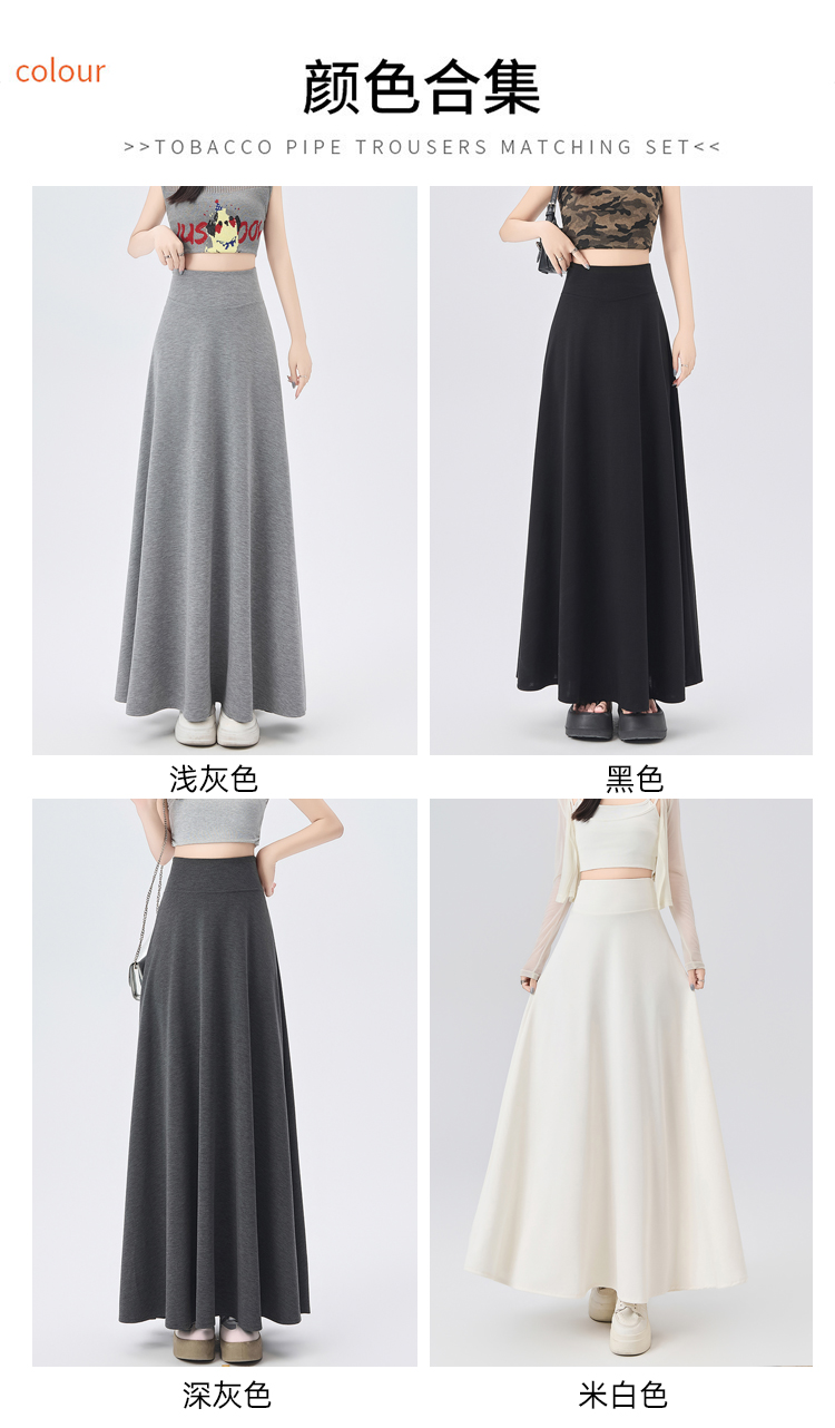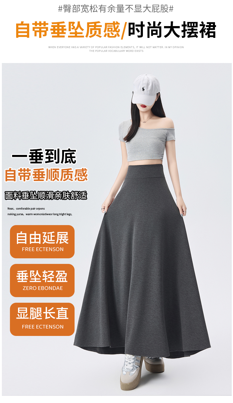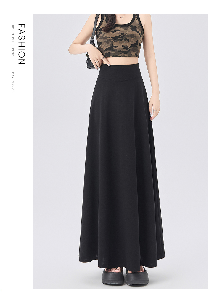 실사 2026 봄 여름 새로운 단색 다용도 중간 스커트 여성 하이웨이스트 슬림해 보이는 큰 진자 한 마디 롱 코트 우산 치마 반신 스커트
