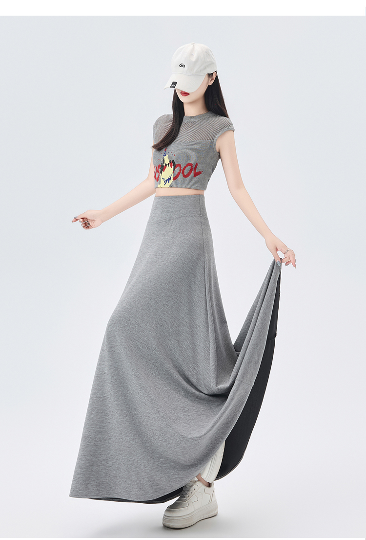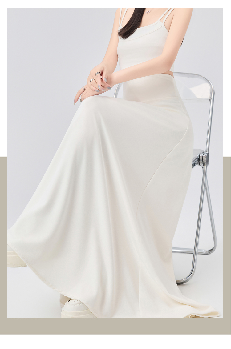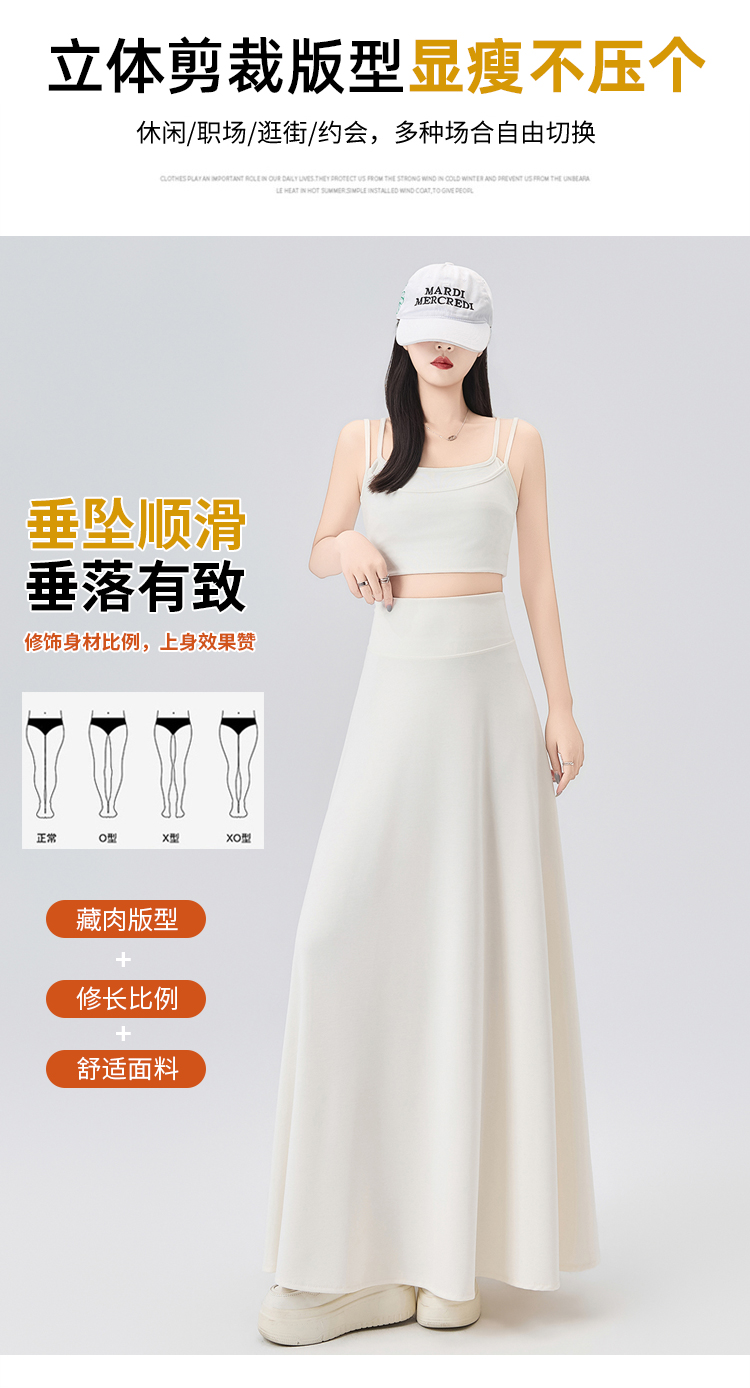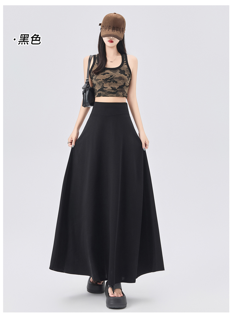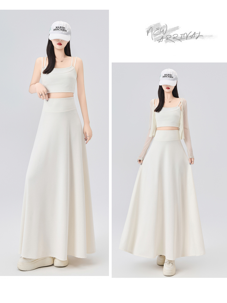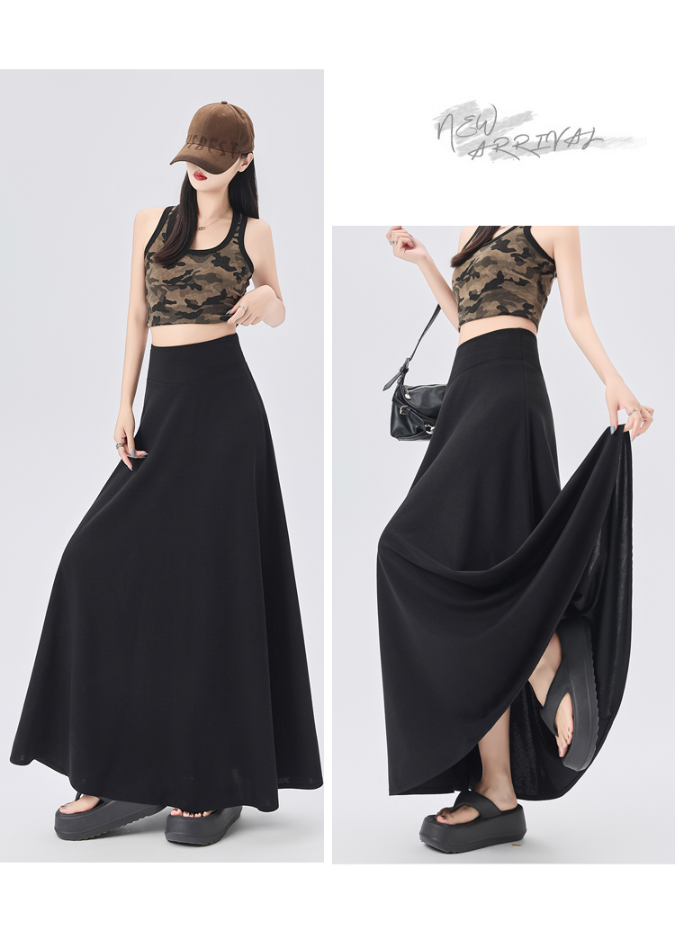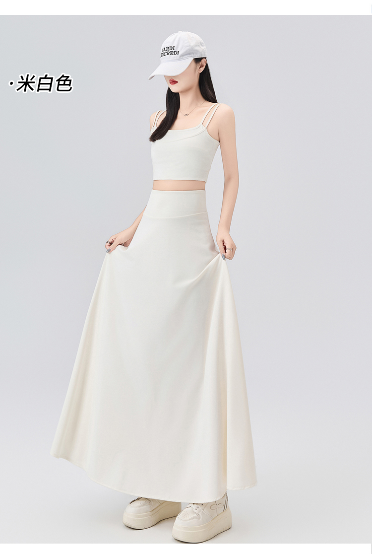 실사 2026 봄 여름 새로운 단색 다용도 중간 스커트 여성 하이웨이스트 슬림해 보이는 큰 진자 한 마디 롱 코트 우산 치마 반신 스커트