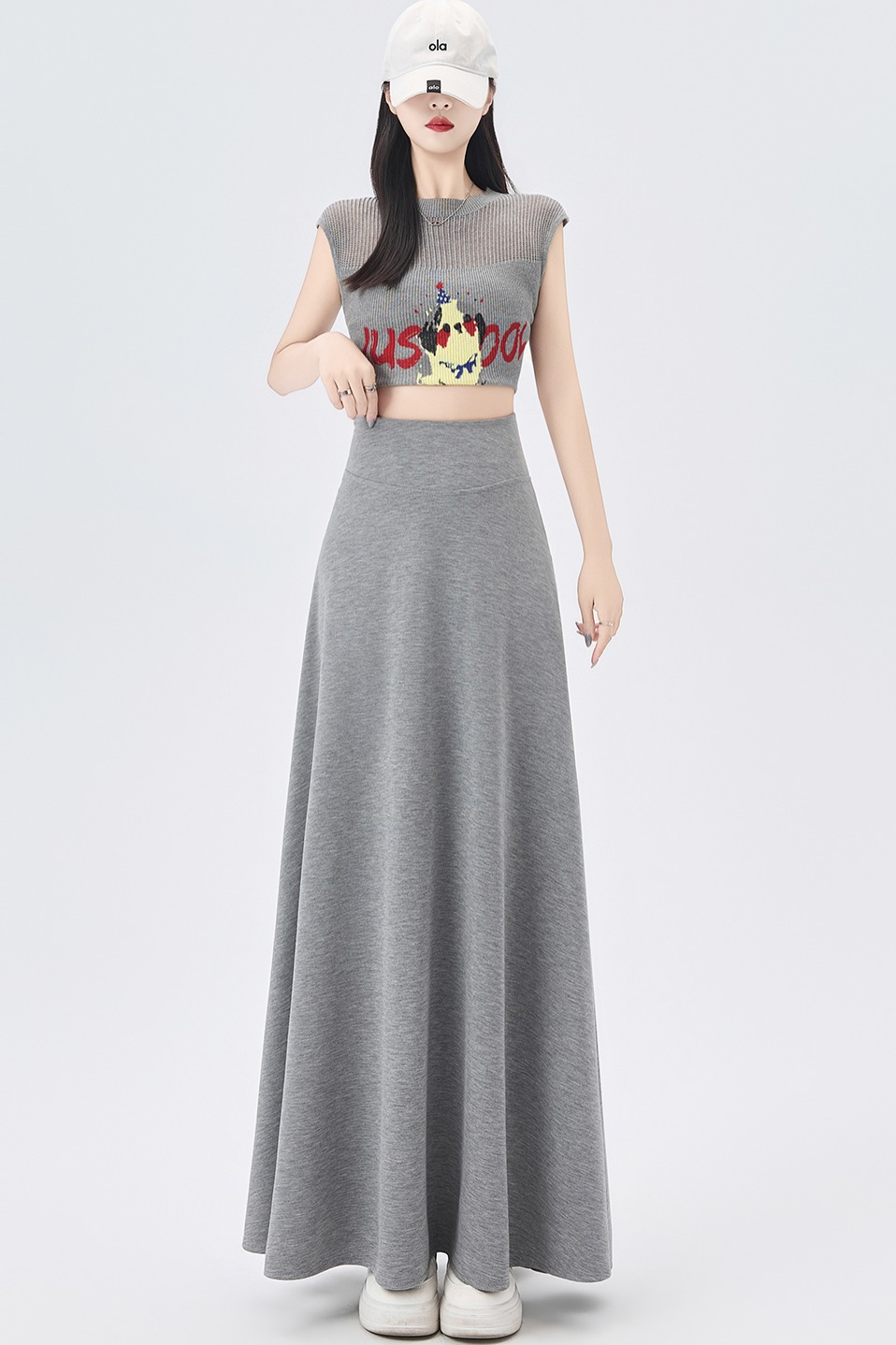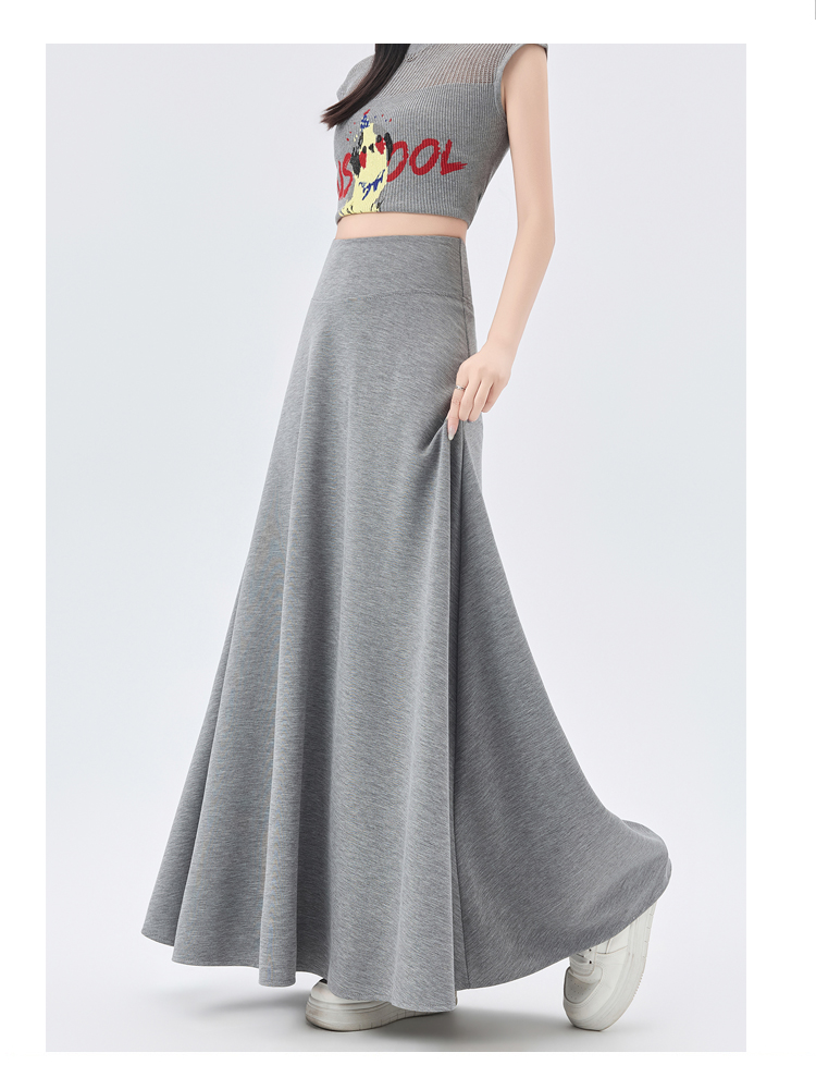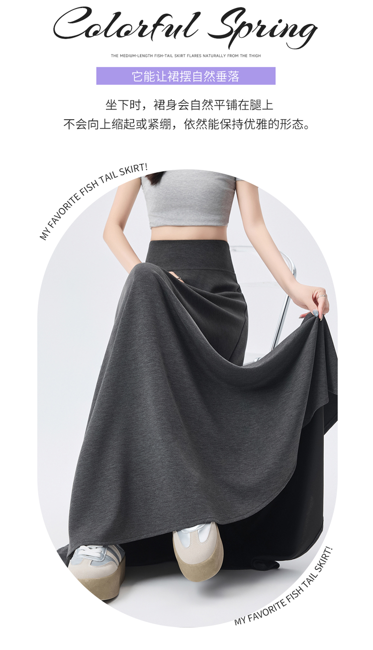 실사 회색 반신 스커트 여성 봄 여름 가을 하이웨이스트 슬림해 보이는 한 마디 타이트 스커트 작은 키 모달 인어 꼬리 롱 스커트