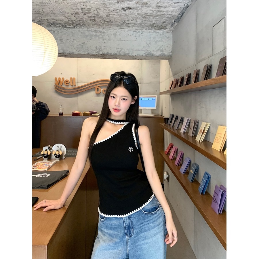 한 부서 순수한 욕망 학원 스타일 비스듬한 어깨 반팔 여성 셔츠 봄 스트라이프 허리 수축 셔츠 몸매 가꾸기 슬림해 보이는 쇼트 스타일 맨위