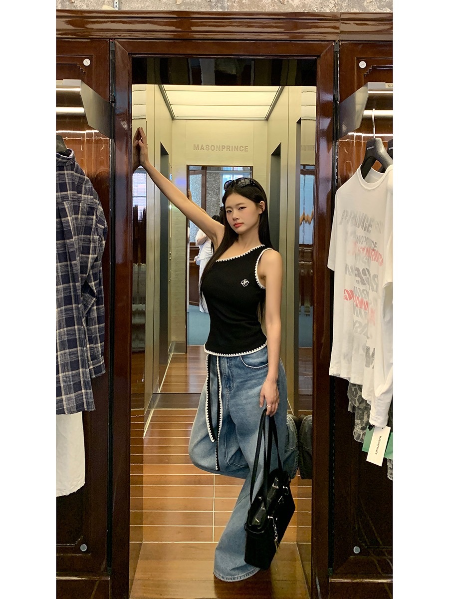 패션 핫걸 아메리칸 허리밴드 운동 바지 캐주얼 와이드 레깅스 바지 2026 봄 여름 새로운 루즈핏 바닥 청소 바지