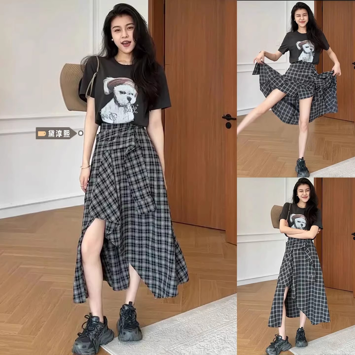 불규칙 흑인과 백인 체크무늬 반신 스커트 여성 2026 여름 새로운 패션 치마