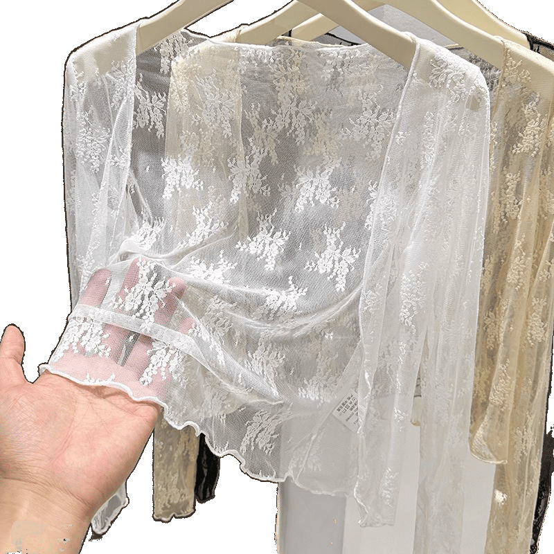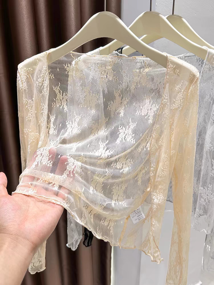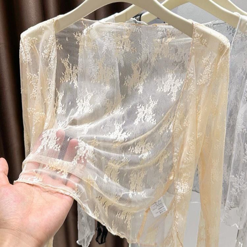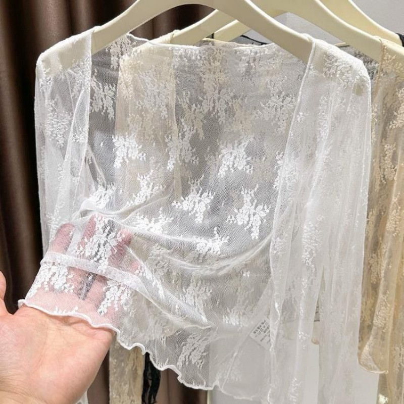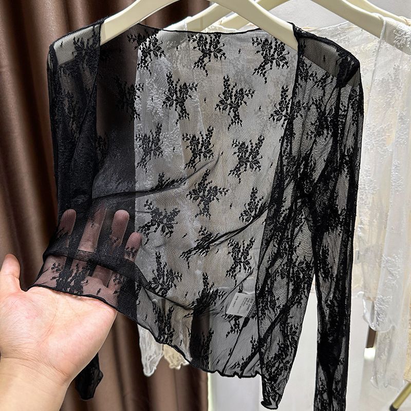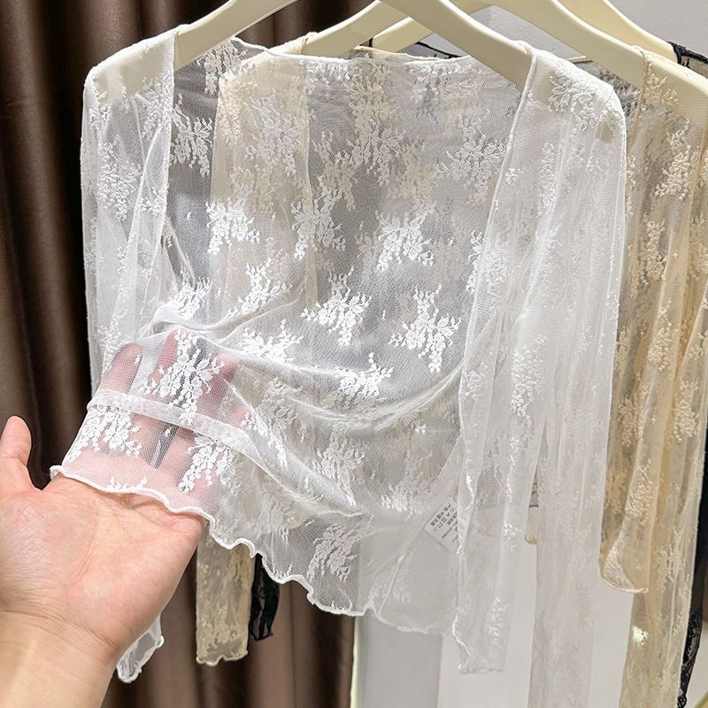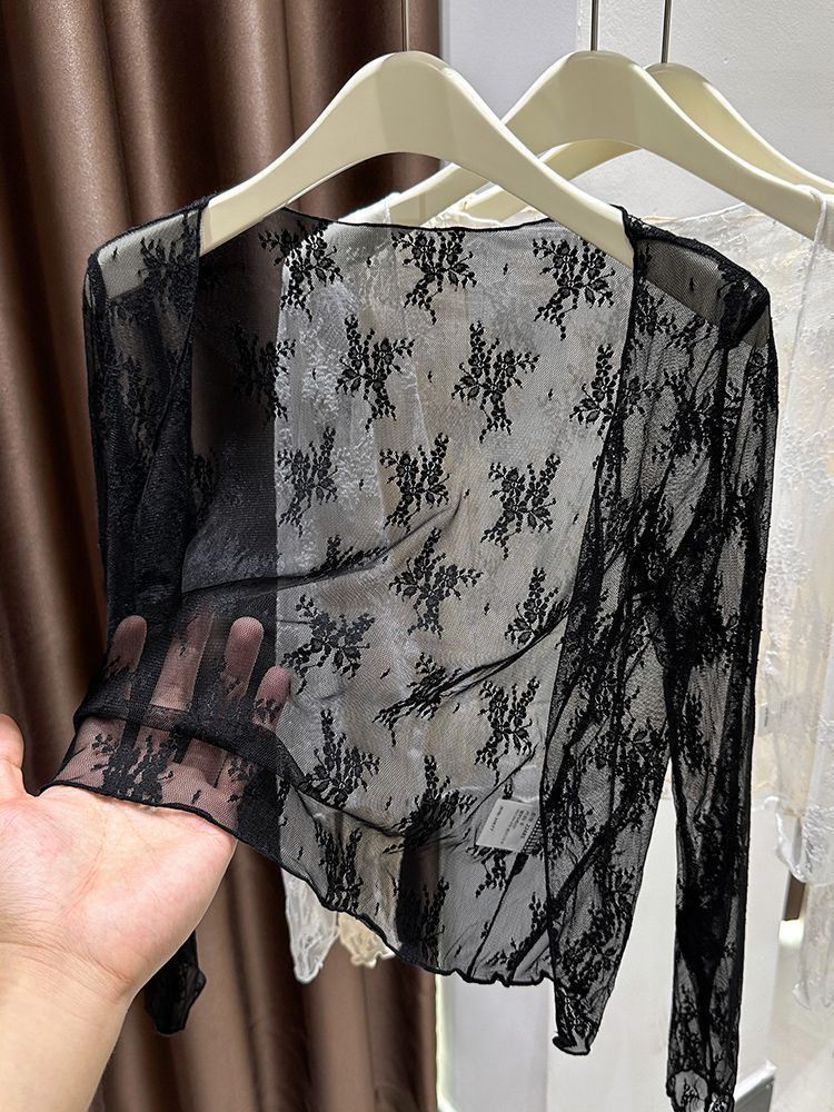 높은 품질 레이스 꽃무늬 디자인 센스 작은 대중 여름 염증 일 건조 오픈 가디건 품격 부드러운 슬림해 보이는 맨위