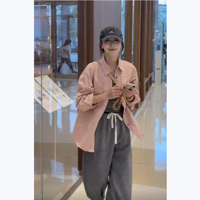 한국 스타일 폭발 핑크색 데님 여성 셔츠 2026 새로운 셔츠 봄 가을 루즈핏 슬림해 보이는 캐주얼 맨위 재킷 트렌디