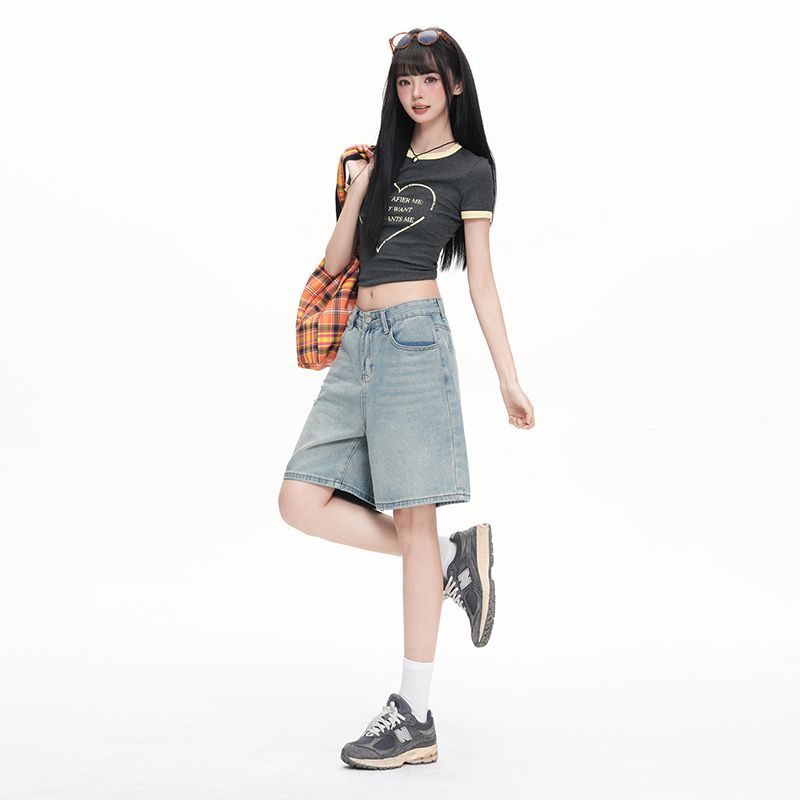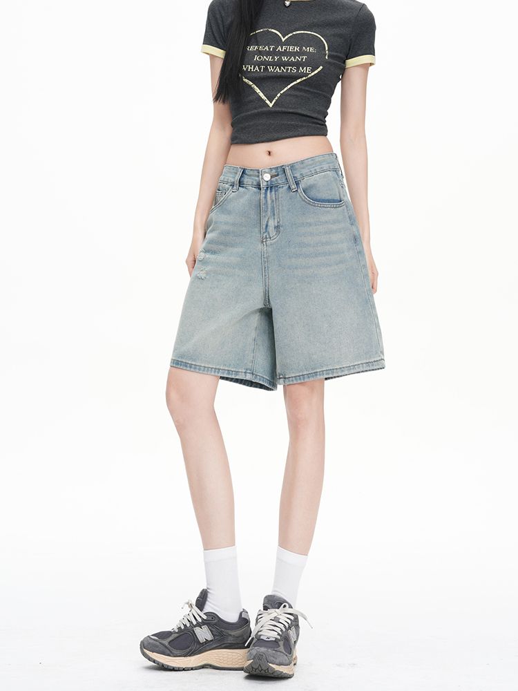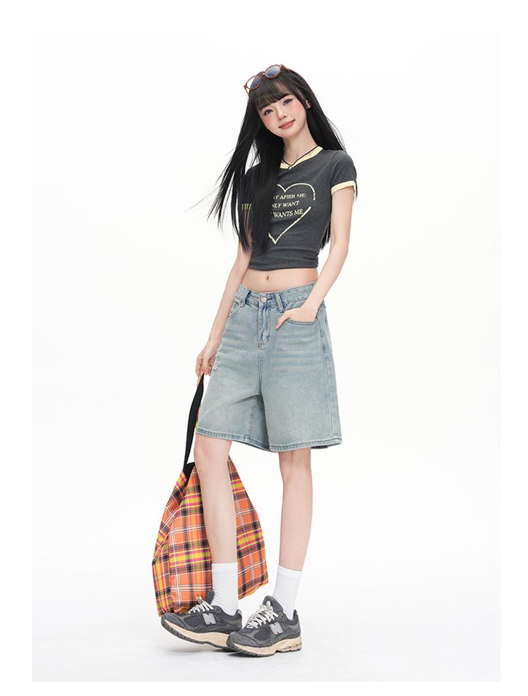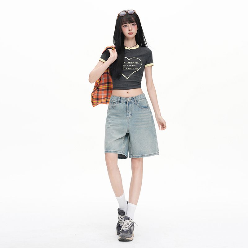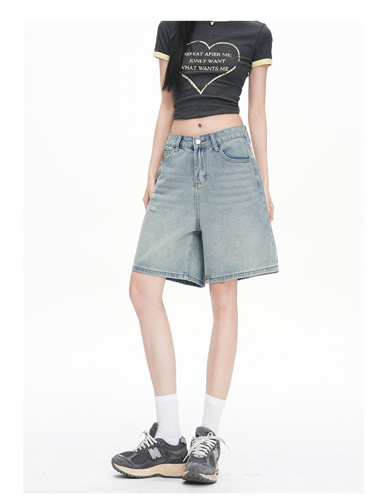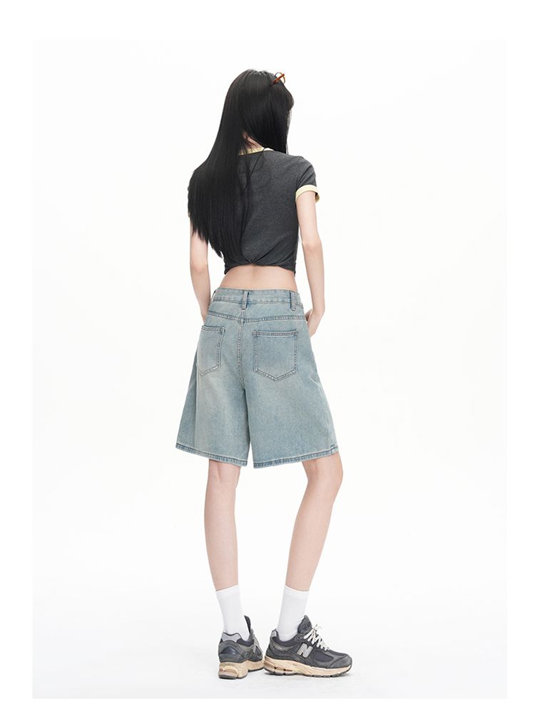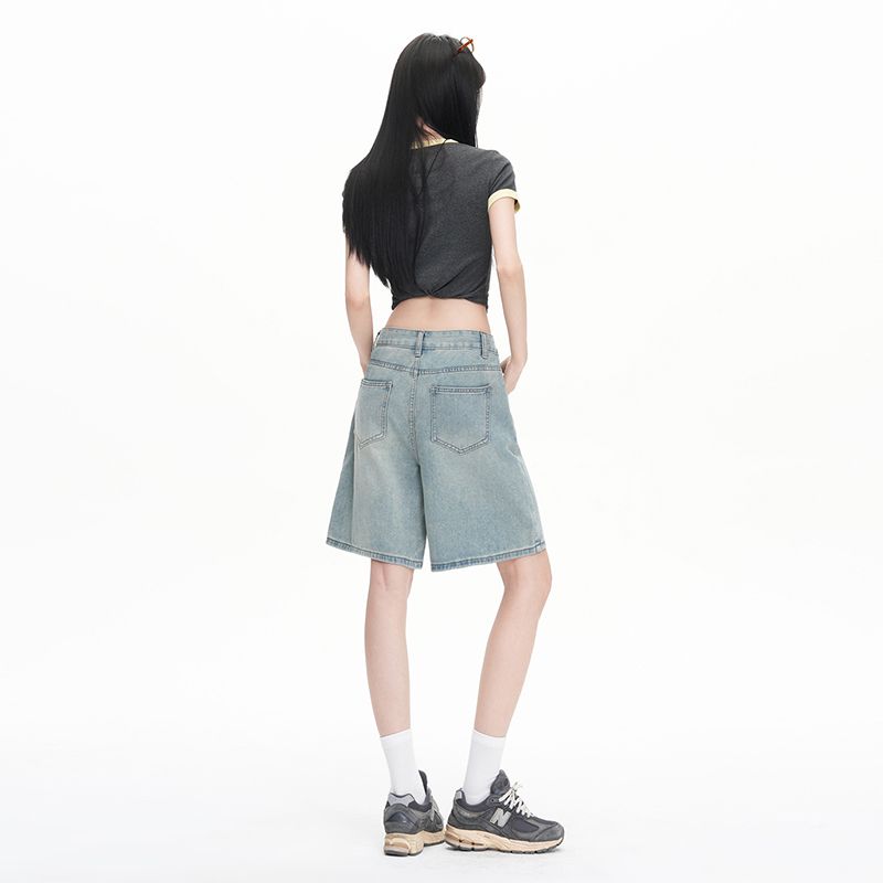 실사 Gypsophila 플래시 훈련 봄 새로운 하이웨이스트 아메리칸 좁은 에디션 스트레이트 넓은 다리 청바지 여성 루즈핏 바닥 청소 바지