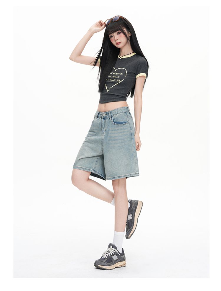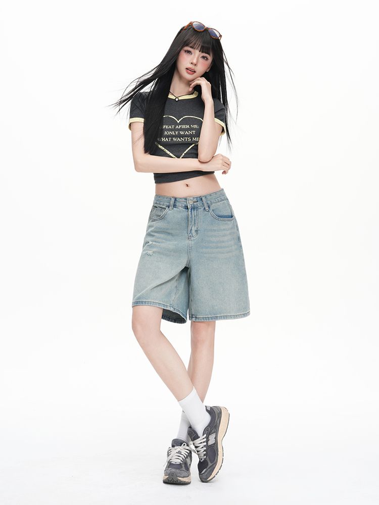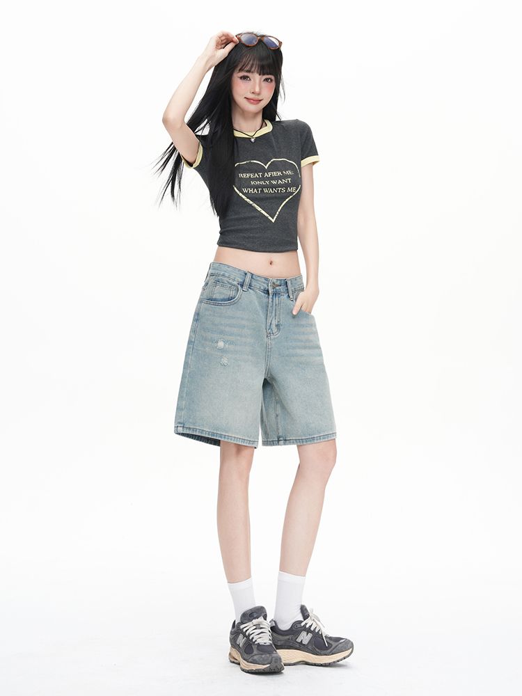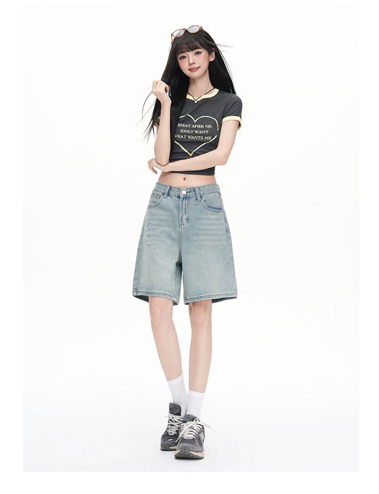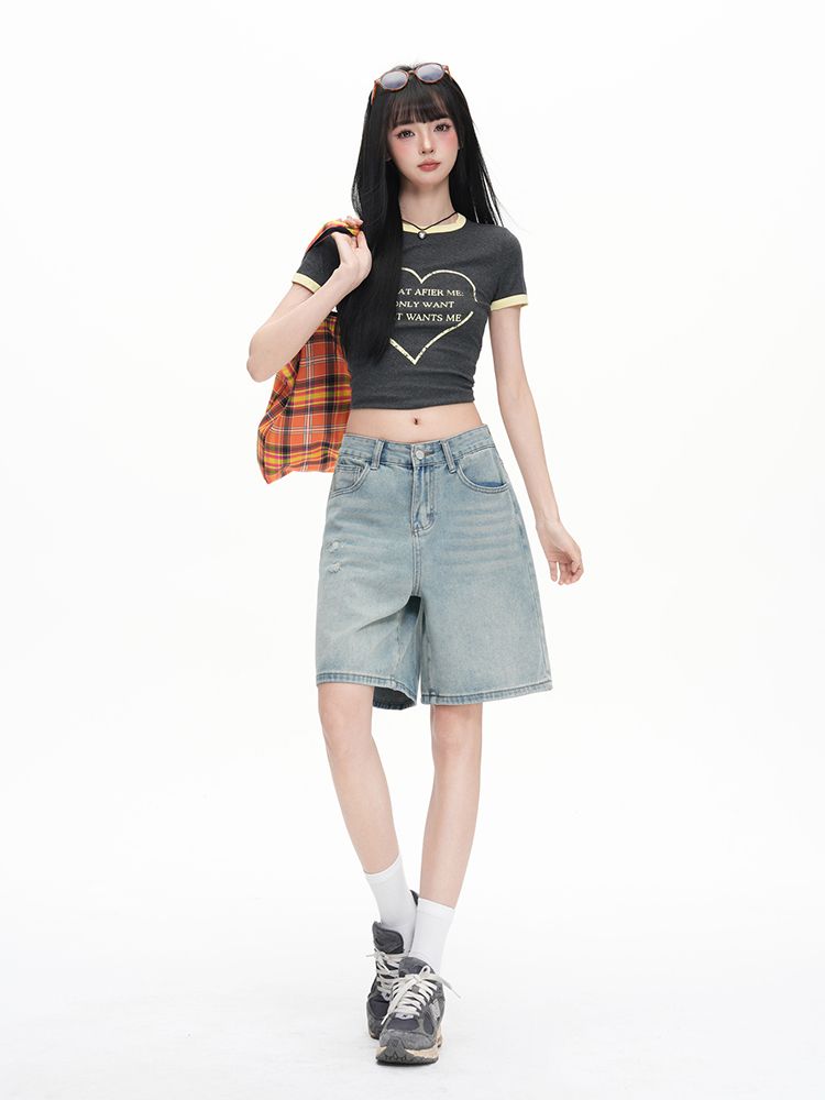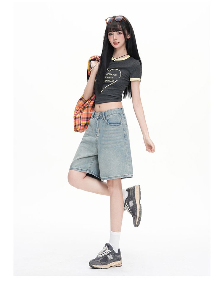 실사 Gypsophila 플래시 훈련 봄 새로운 하이웨이스트 아메리칸 좁은 에디션 스트레이트 넓은 다리 청바지 여성 루즈핏 바닥 청소 바지