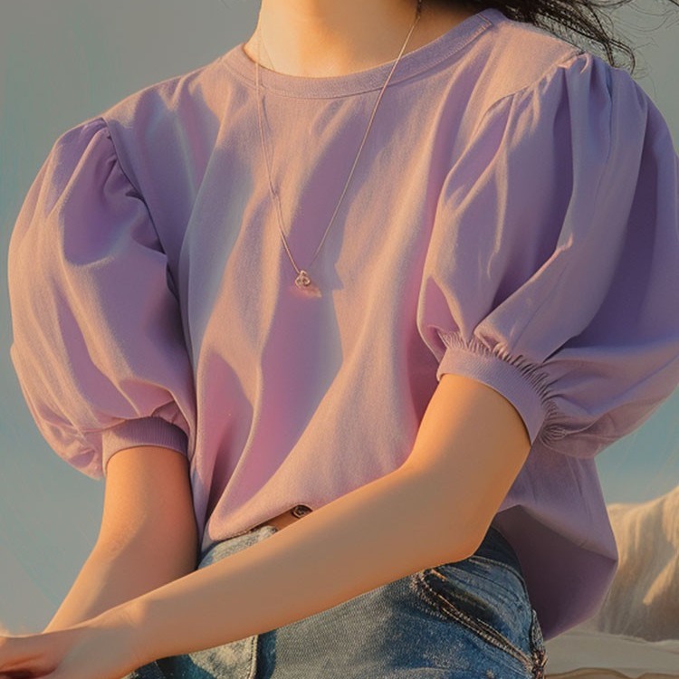 작은 샤넬 스타일 보라색 셔츠 2026 새로운 루즈핏 슬림해 보이는 한 부서 고유 한 Chic 아름다운 거품 소매 긍정적 인 어깨 의류