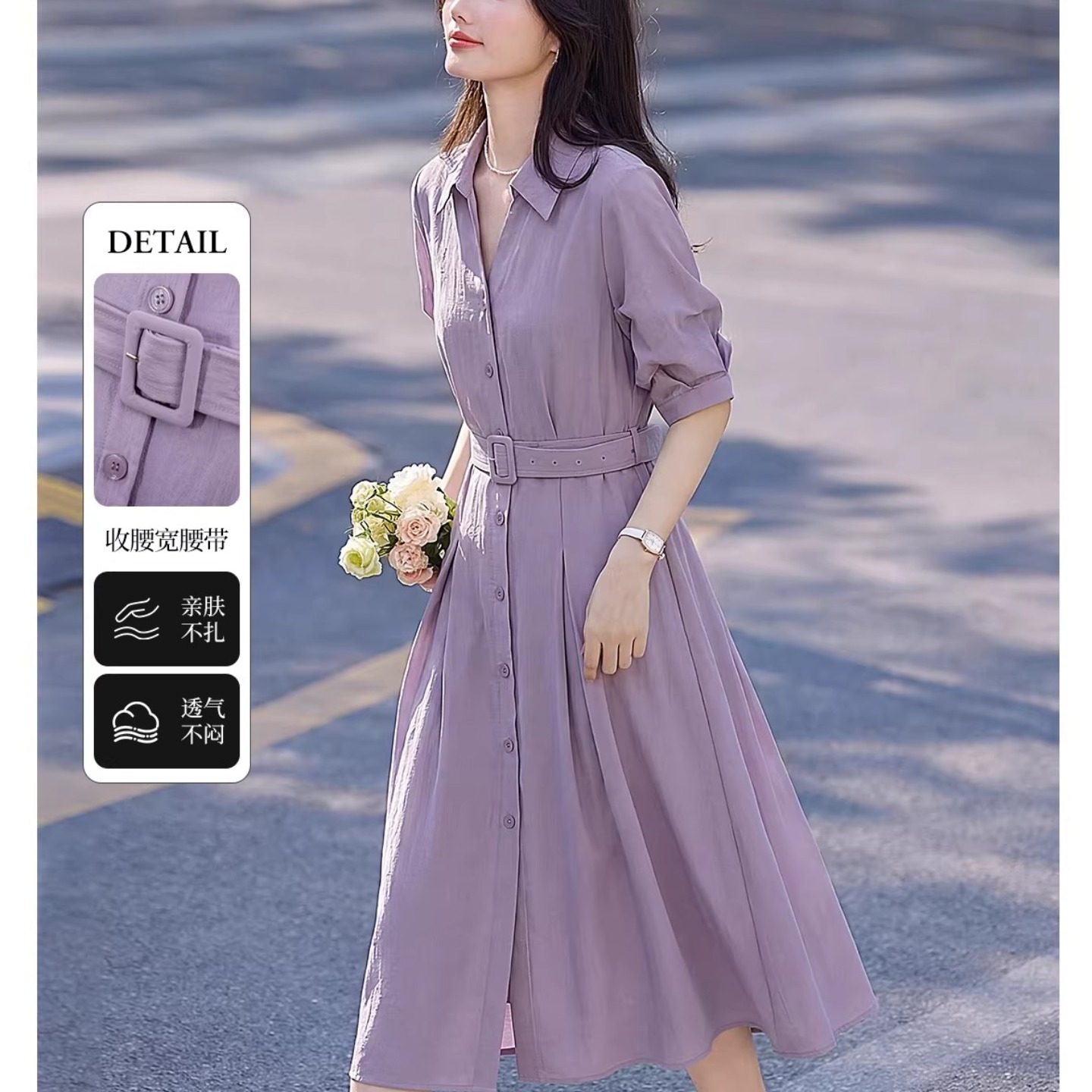라이 경기 서울 반팔 아마 셔츠 여성 드레스 2026 여름 새로운 품격 몸매 가꾸기 중간 길이 치마