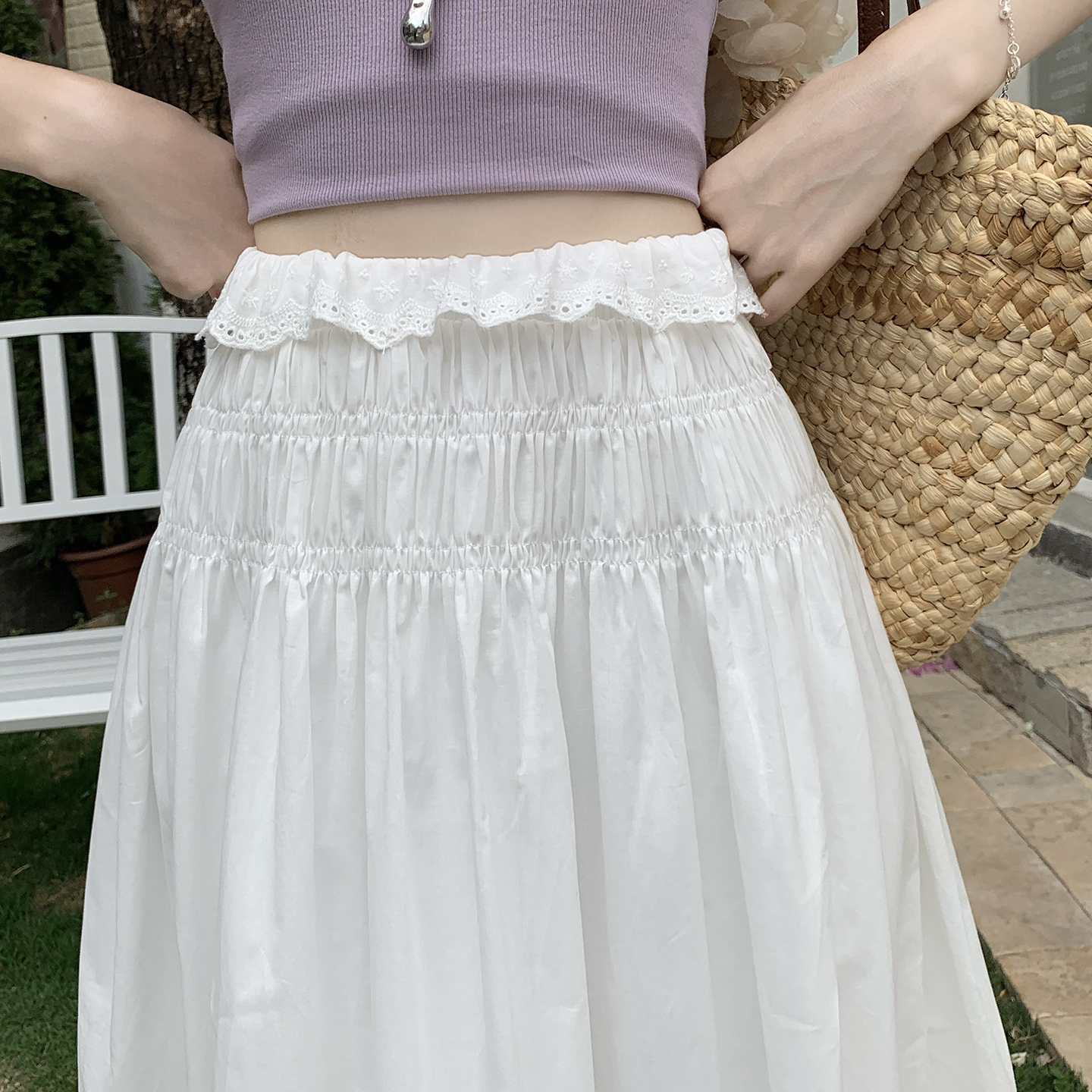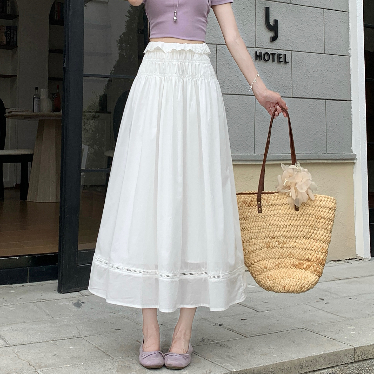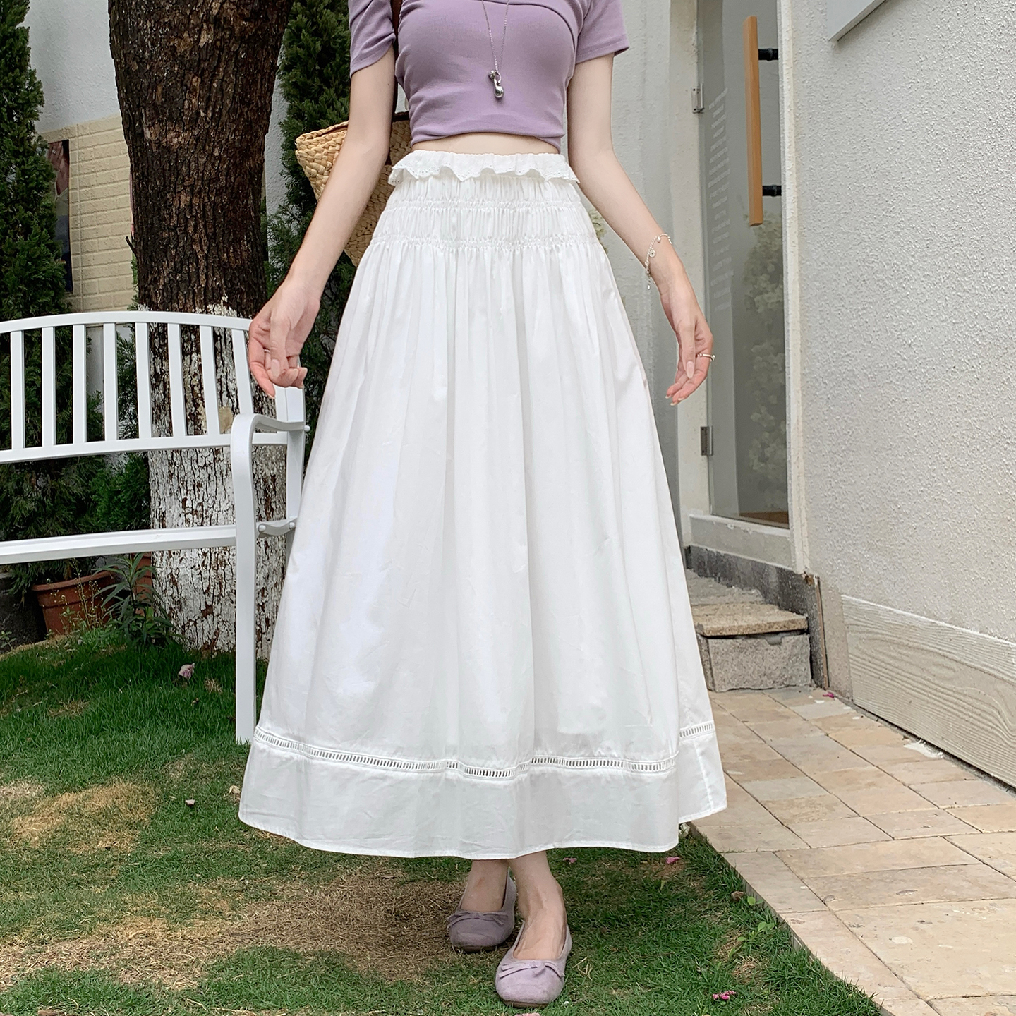 실사 레이스 조각 샤오 바이 치마 반신 스커트 여자 중간 롱 스커트 순면 다용도 자수 홀로우 아웃 A라인 스커트 요정 치마