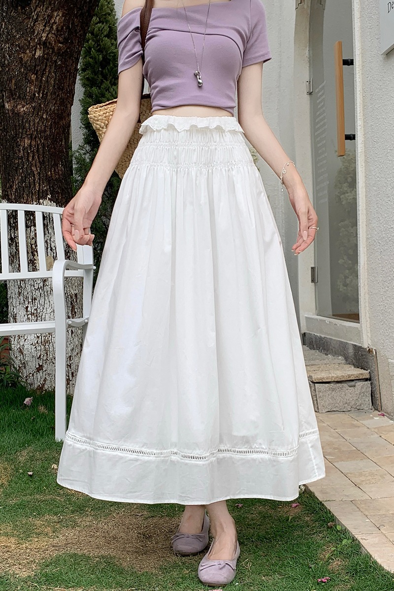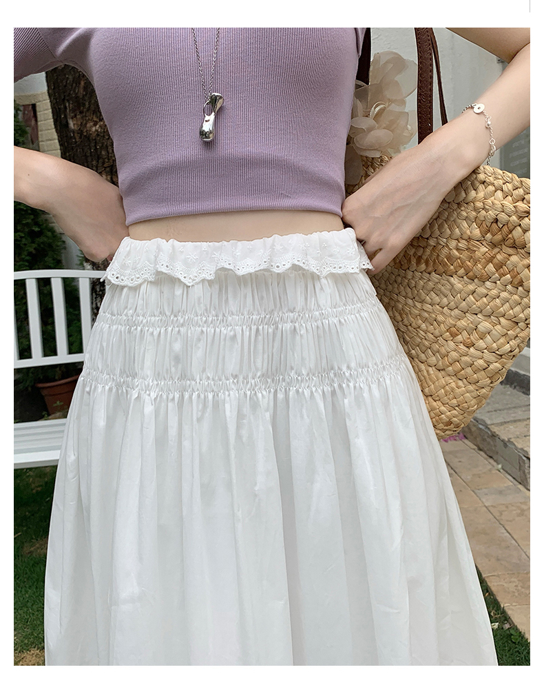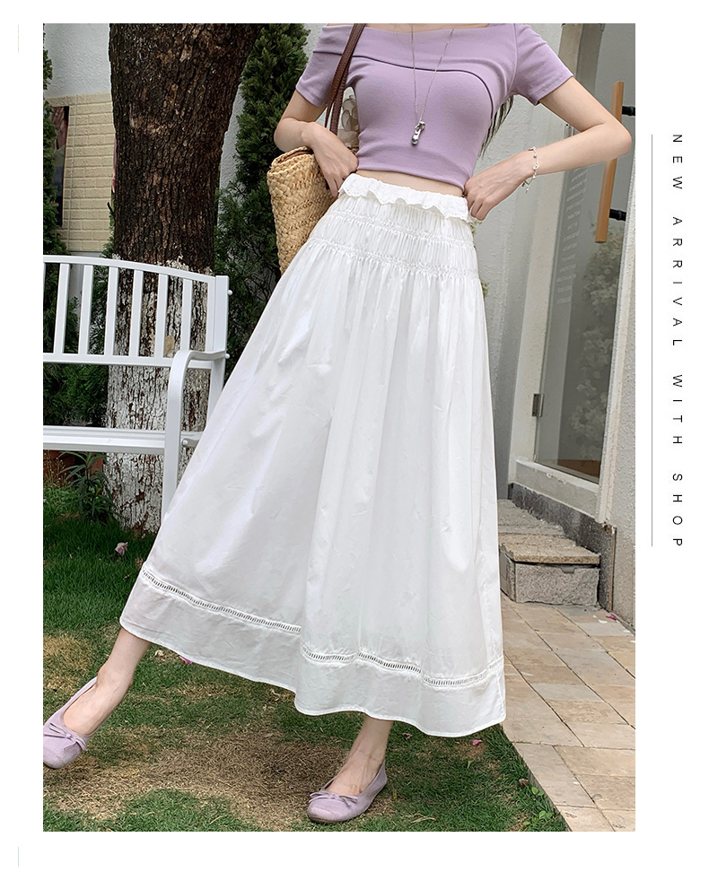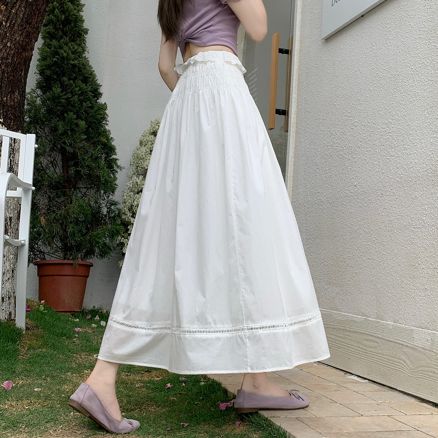 실사 레이스 조각 샤오 바이 치마 반신 스커트 여자 중간 롱 스커트 순면 다용도 자수 홀로우 아웃 A라인 스커트 요정 치마