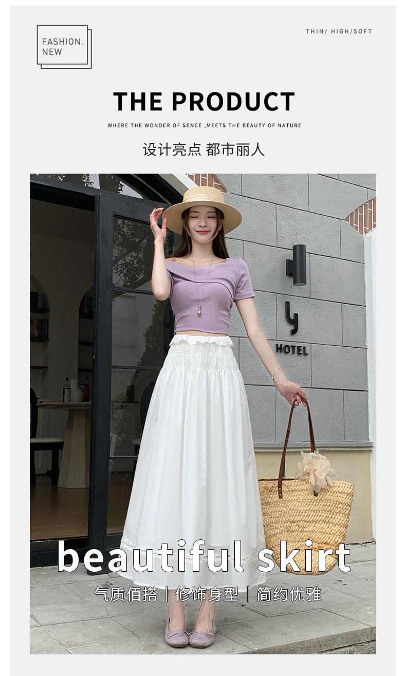 실사 중간 길이 요정 치마 여성 하이웨이스트 슬림해 보이는 단색 롱 스커트 여행 바람 빅 플레어 스커트 편안함 우산 치마 A라인 스커트