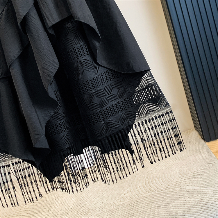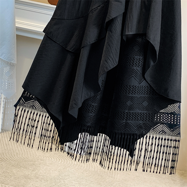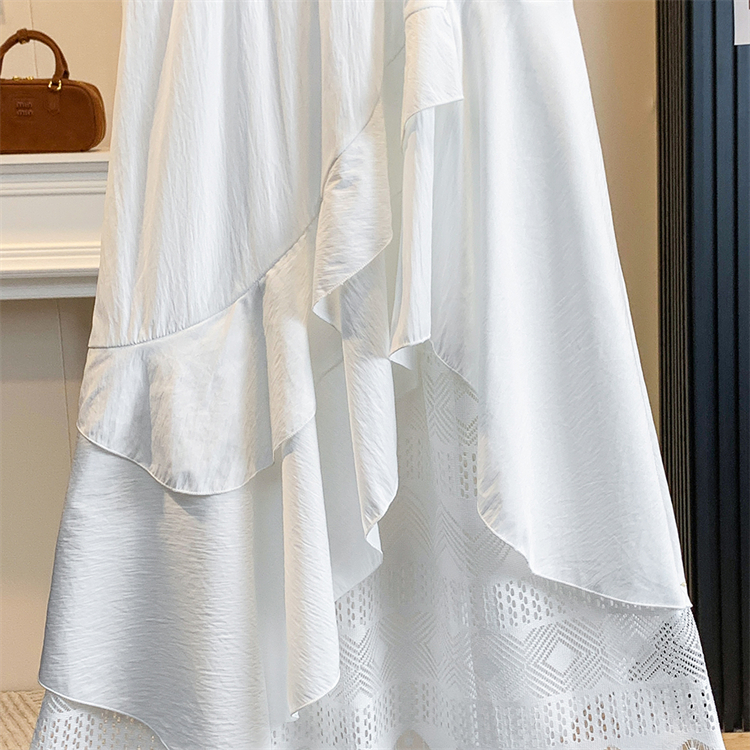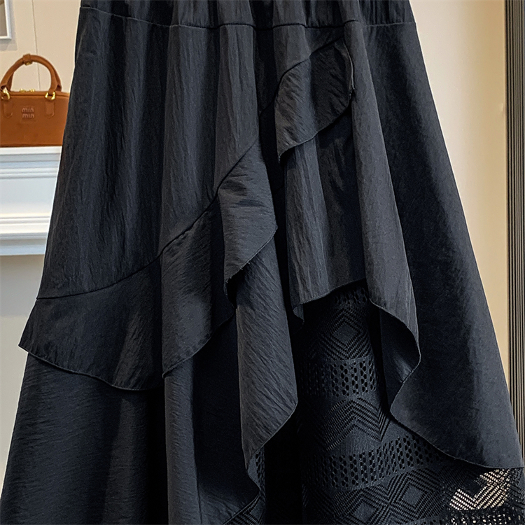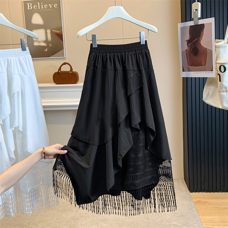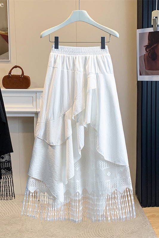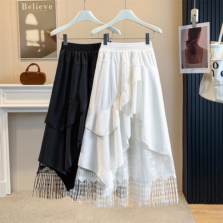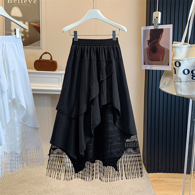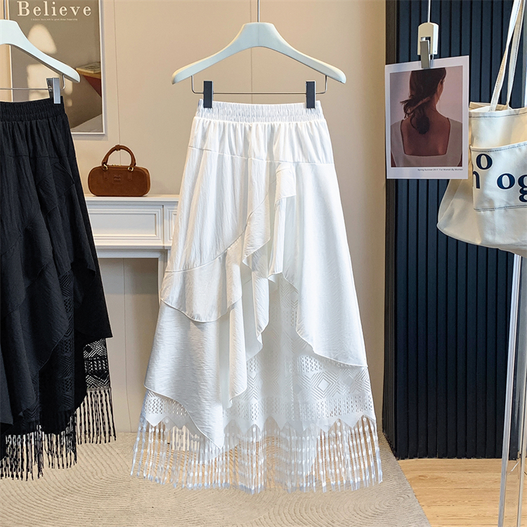 실사 지방 mm 빅 사이즈 레이스 조각 불규칙 반신 스커트 2026 여름 새로운 술 계층의 감각 중간 길이 스커트