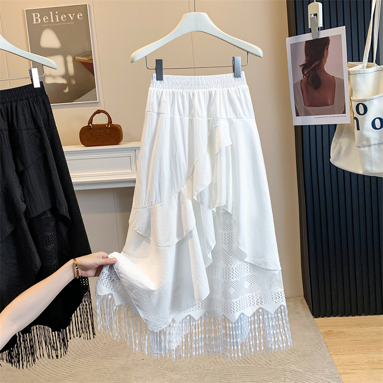 실사 지방 mm 빅 사이즈 레이스 레이스 반신 스커트 케이크 드레스 여성 하이웨이스트 노출 방지 프릴 치마 미니 스커트