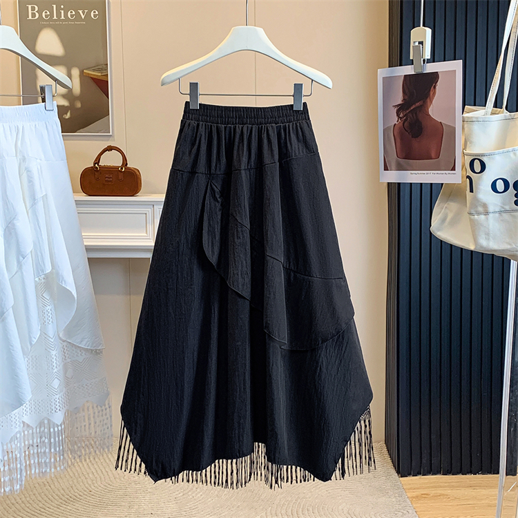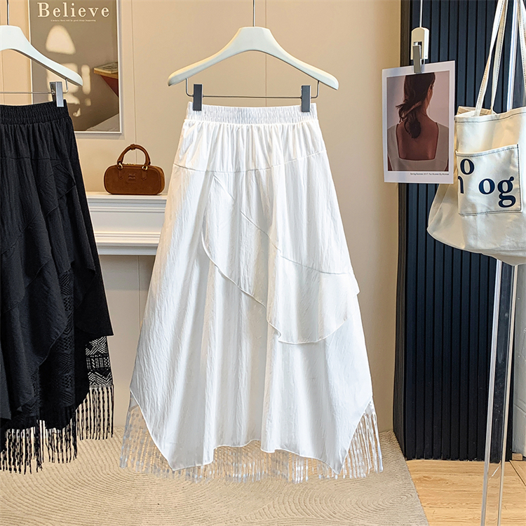 실사 지방 mm 빅 사이즈 프랑스식 작은 대중 불규칙 반신 롱 스커트 여성 프릴 디자인 센스 허리밴드 치마
