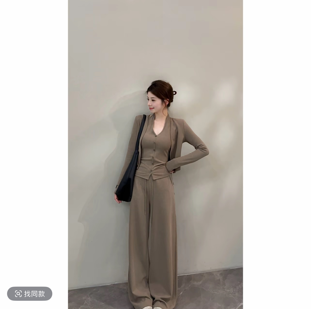 패션 캐주얼 스포츠 슈트 여성 2026 봄 새로운 외국 가스 슬림해 보이는 스탠드 칼라 오픈 가디건 와이드 레그 팬츠 투피스 세트 트렌디