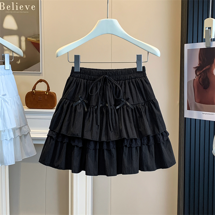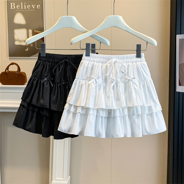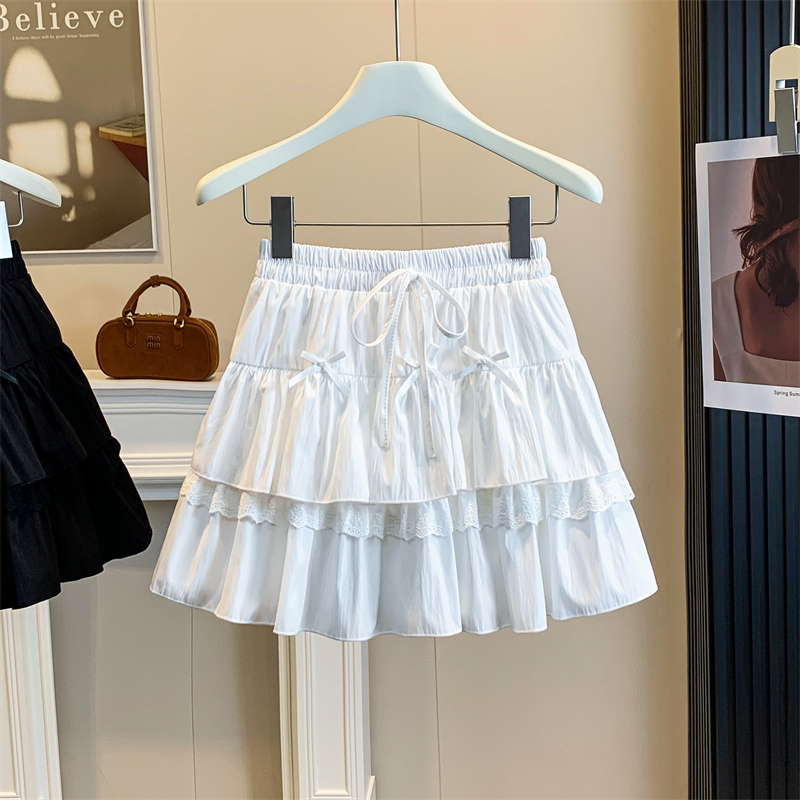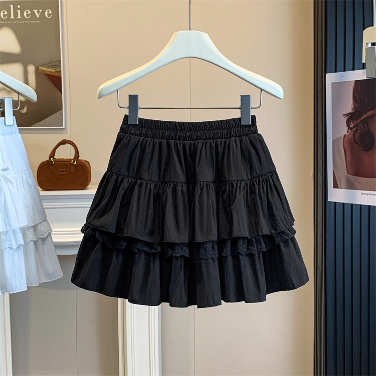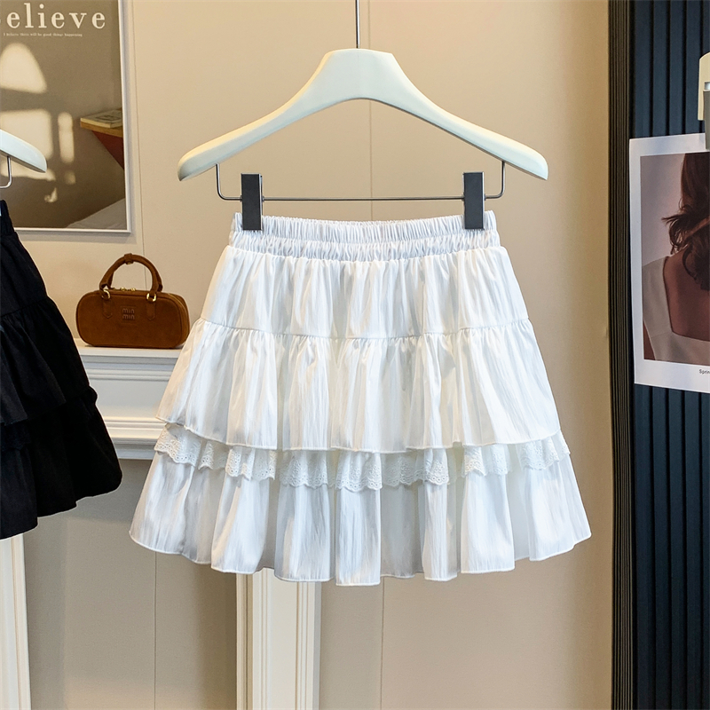 실사 지방 mm 빅 사이즈 레이스 레이스 반신 스커트 케이크 드레스 여성 하이웨이스트 노출 방지 프릴 치마 미니 스커트
