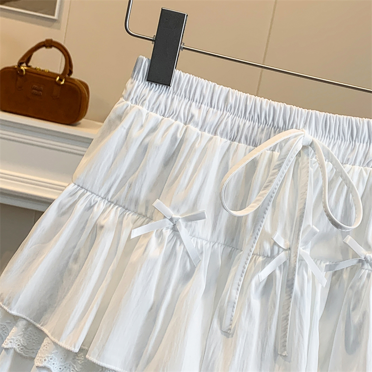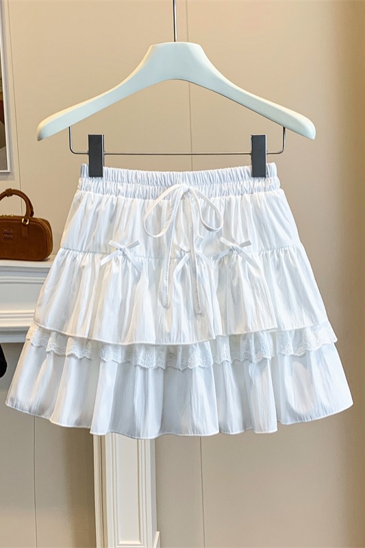 실사 지방 mm 빅 사이즈 화이트 목이버섯 레이스 케이크 반신 스커트 여성 여름 슬림해 보이는 하이웨이스트 한 마디 ins 짧은 치마