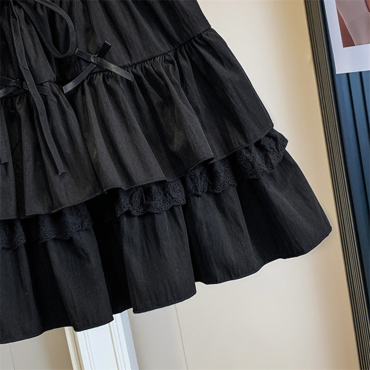 실사 지방 mm 빅 사이즈 프랑스식 바람 퍼프 케이크 드레스 여성 여름 프릴 미니 스커트 하이웨이스트 한 마디 레이스 반신 스커트
