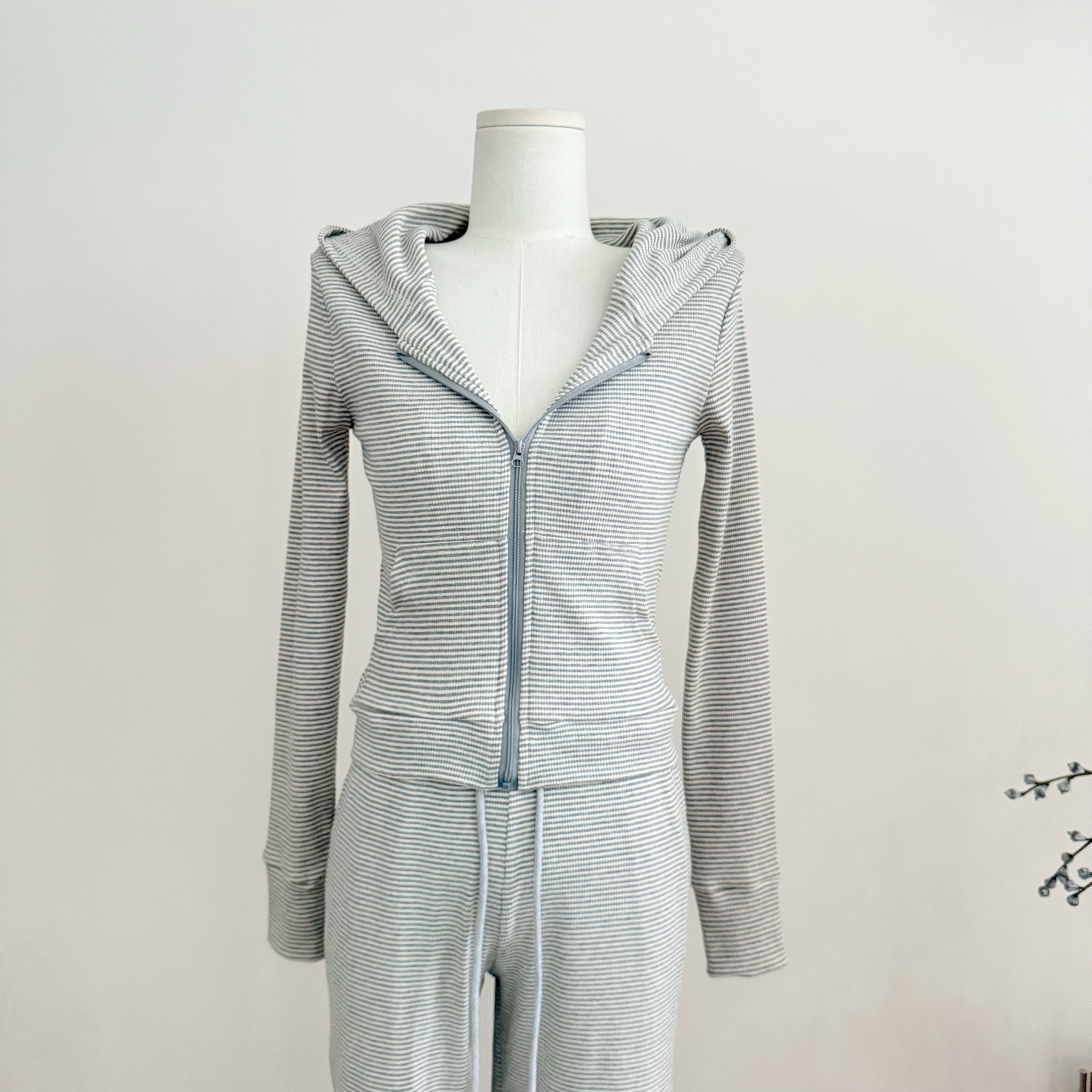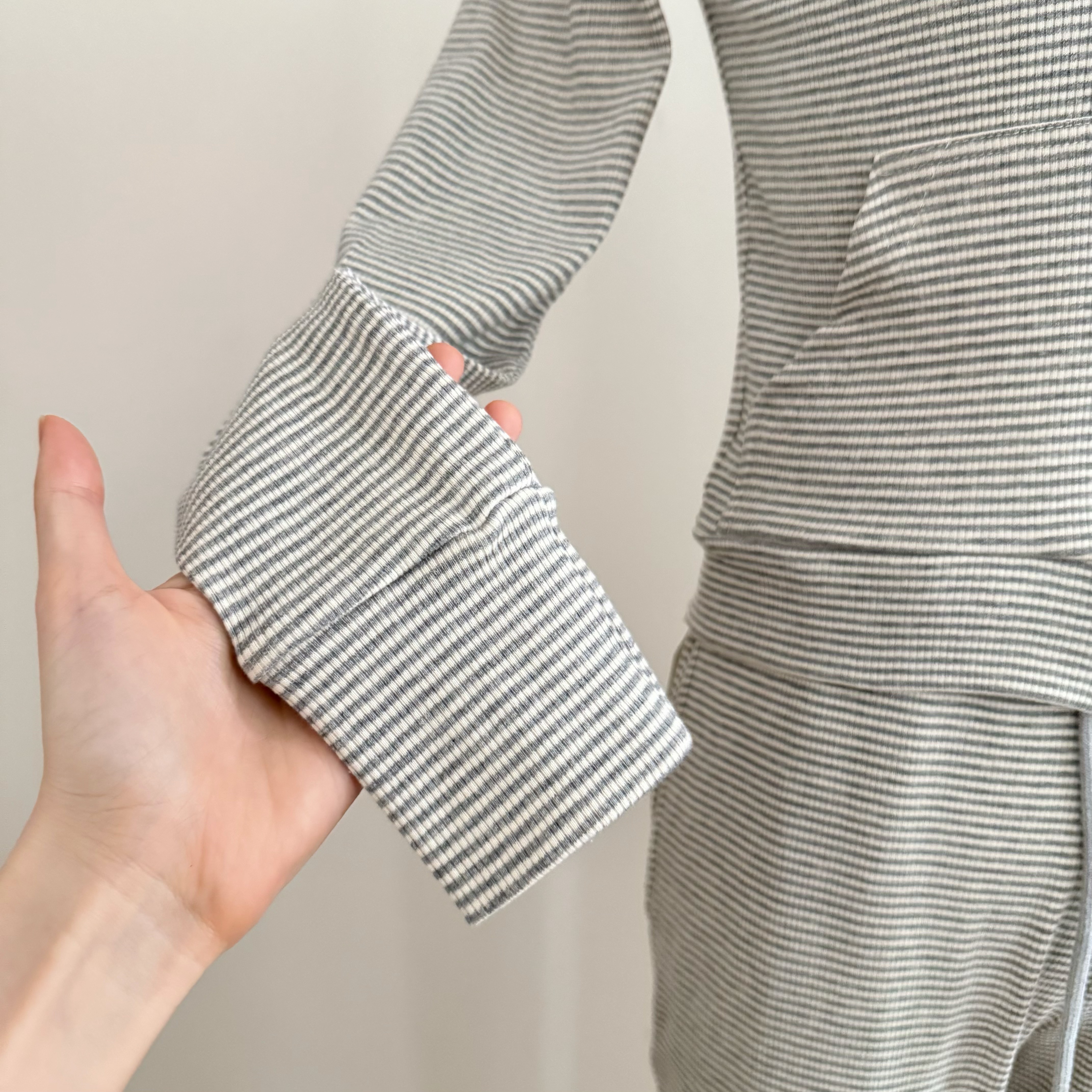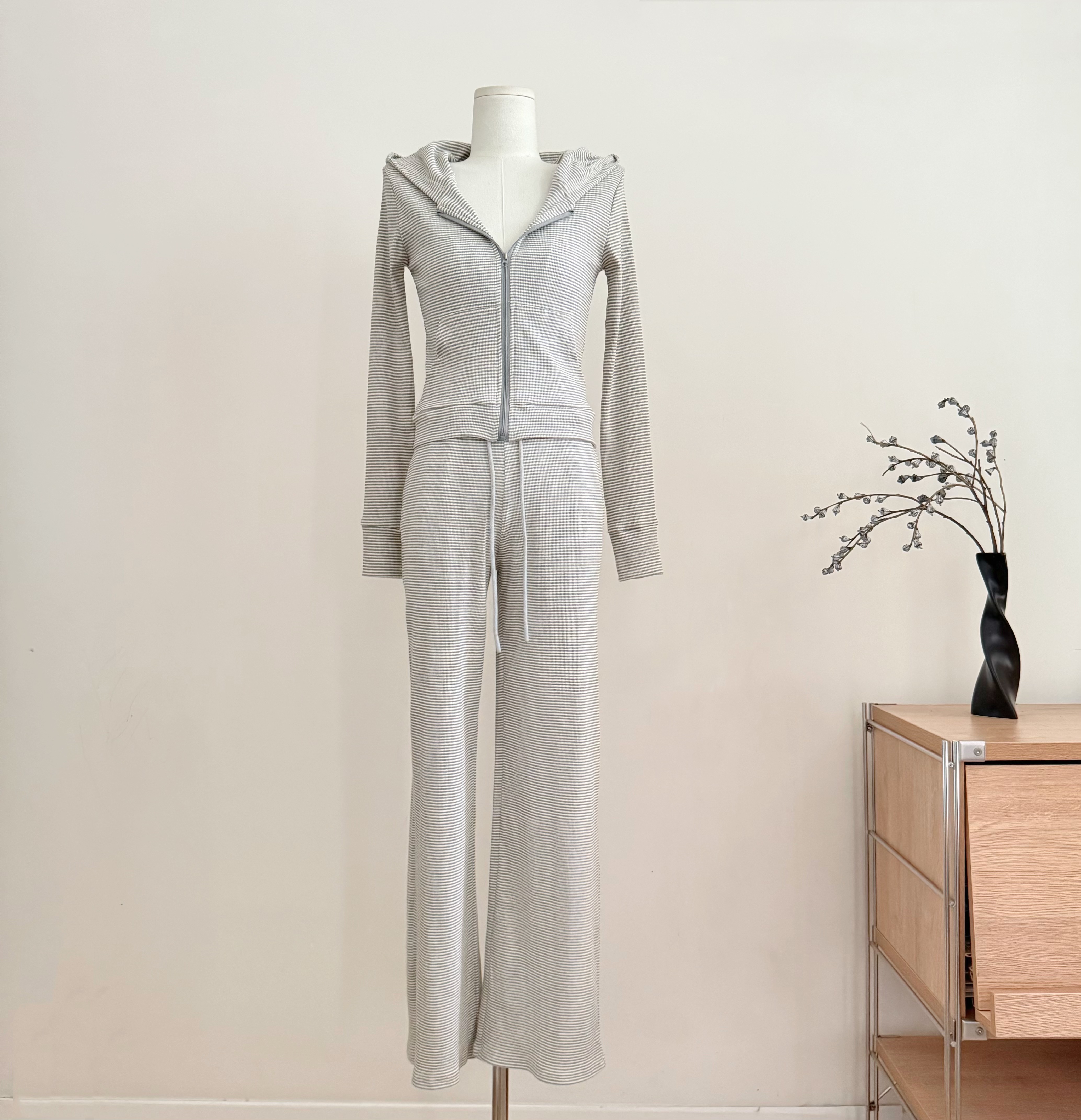 만약 언어 맞춤 스트라이프 주간 접시 그룹 95 편안함 면 자외선 차단 세트 캐주얼 바람 오픈 가디건 슬립 바지 3종 세트