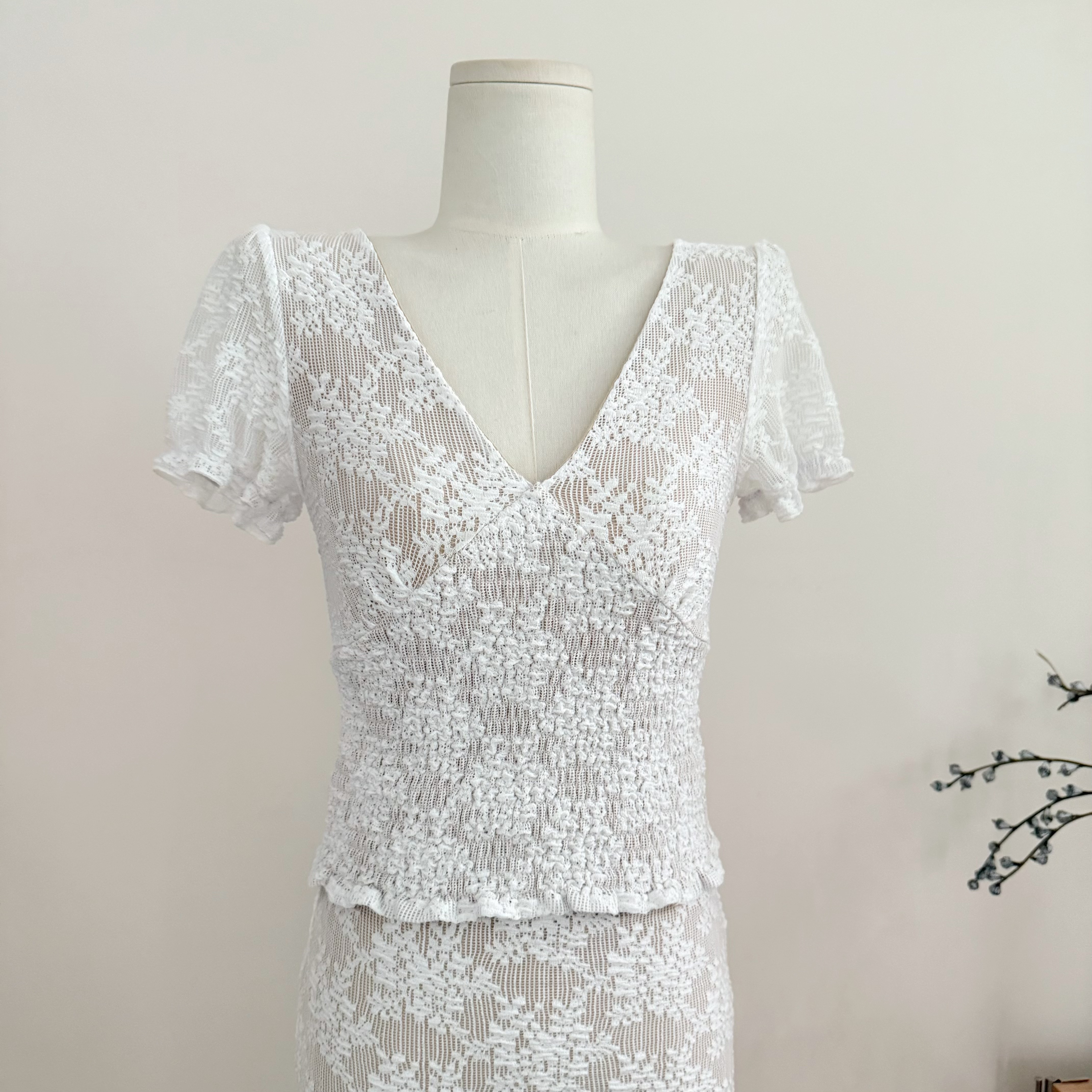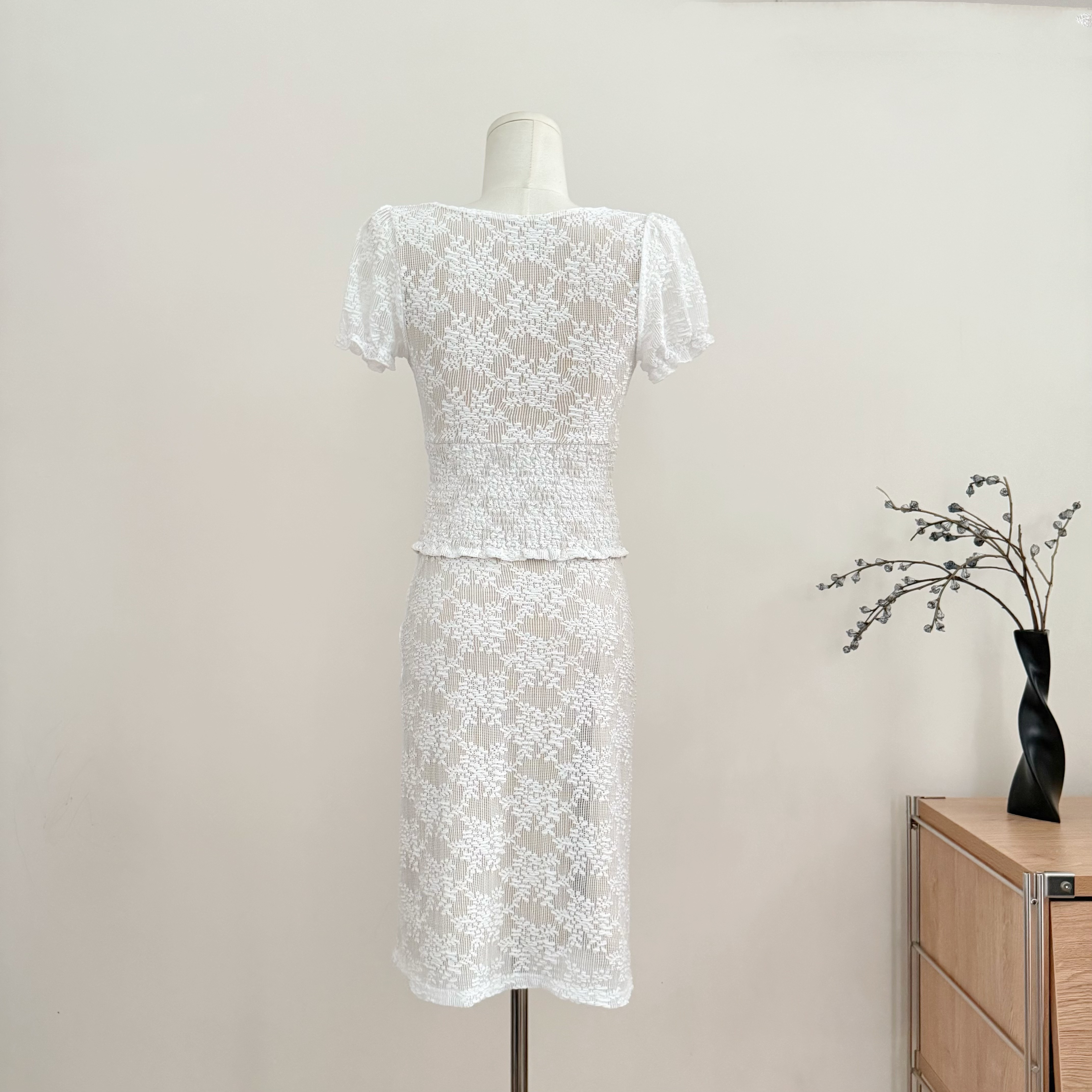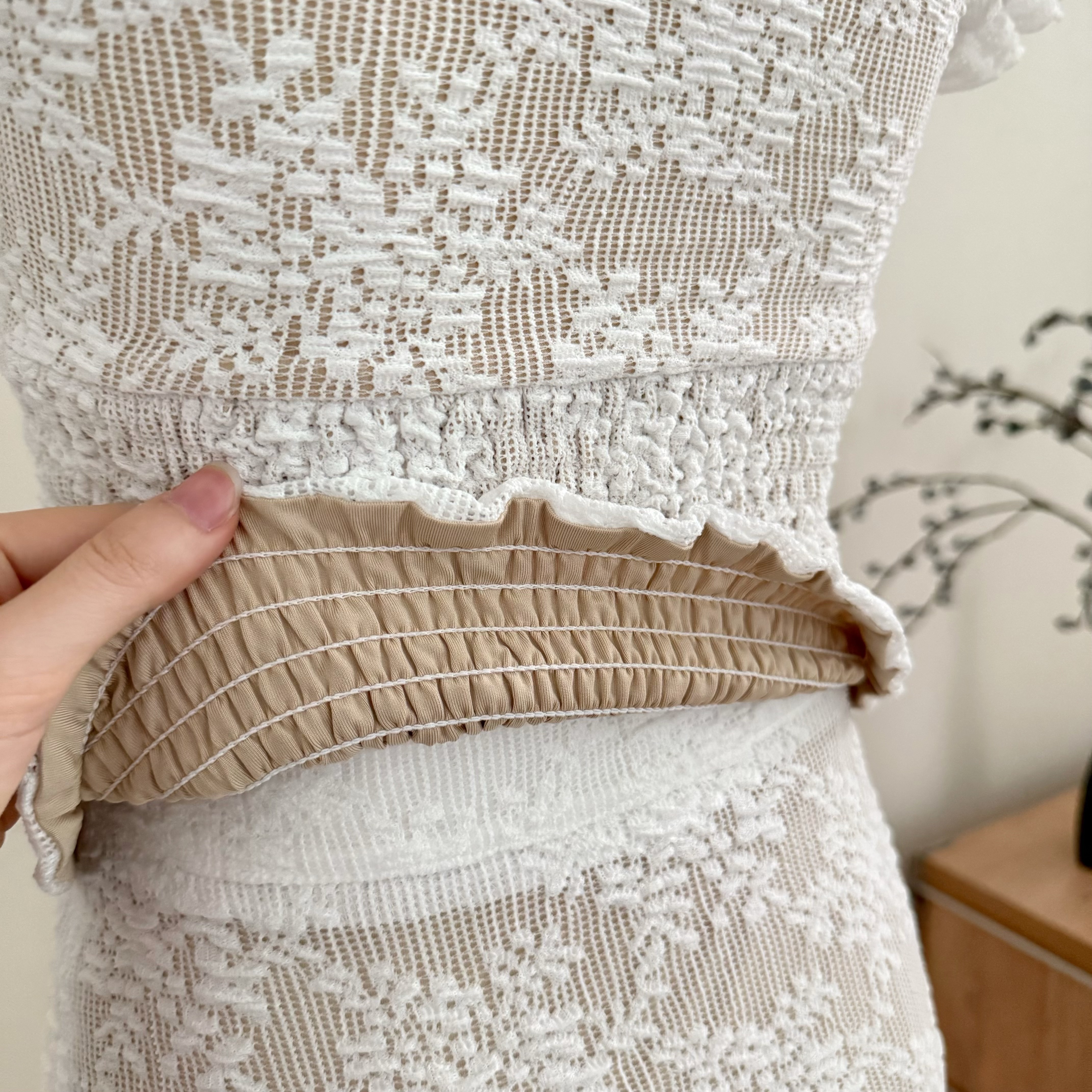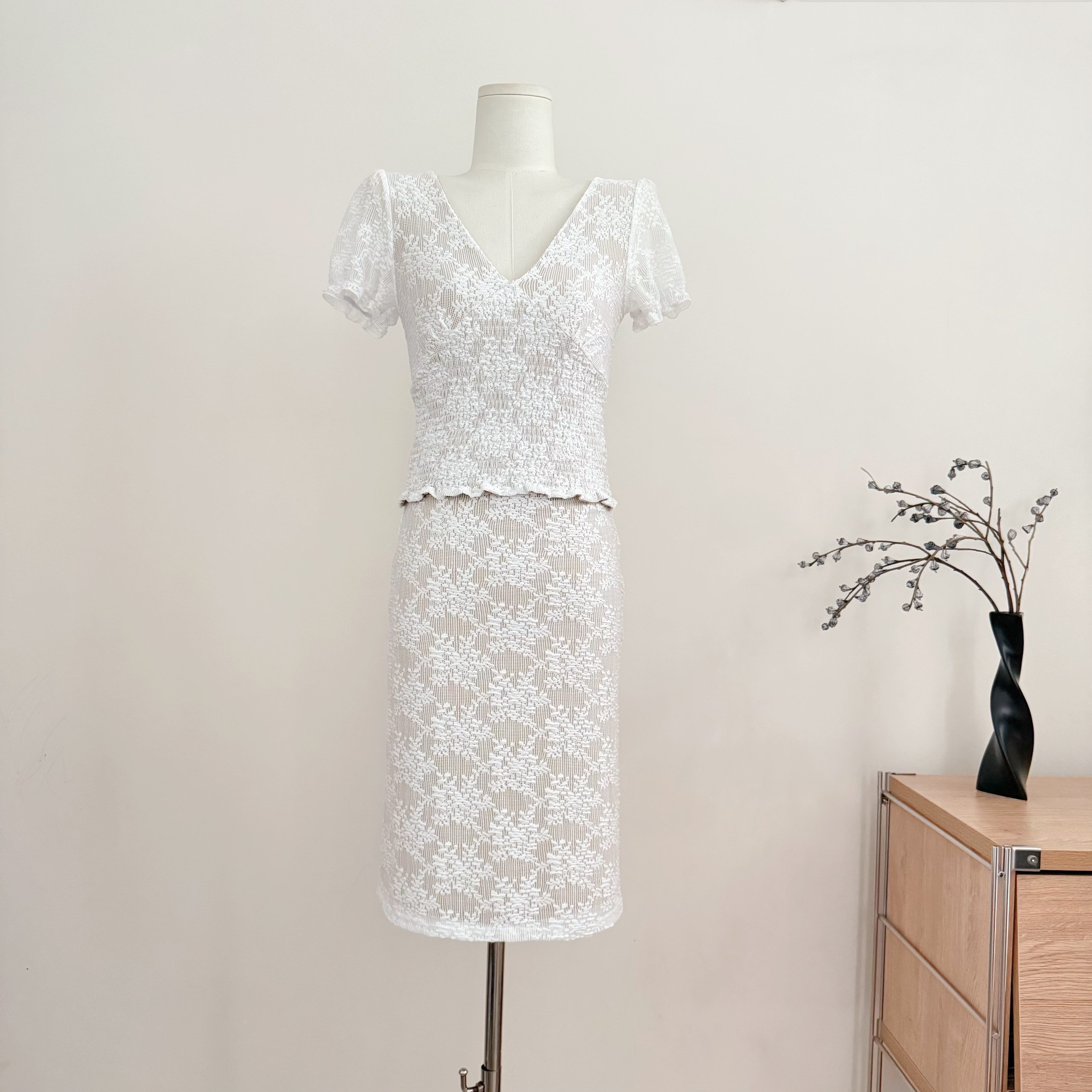 laareetoo V넥 레이스 맨위 여성 여름 2026 년 새로운 반신 치마 세트 품격 투피스 세트