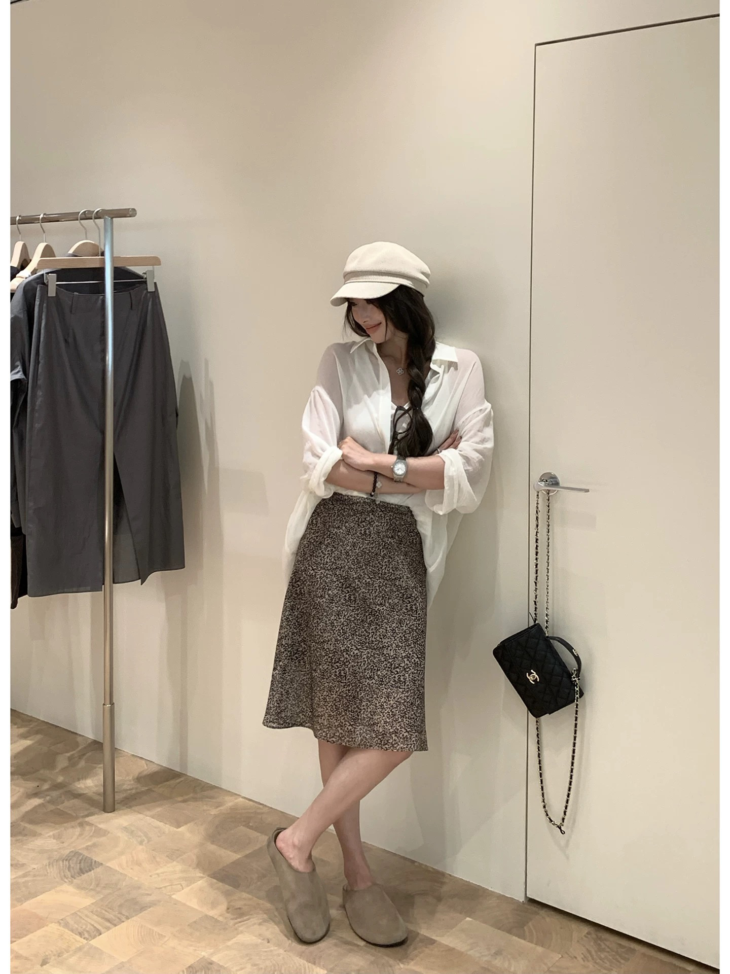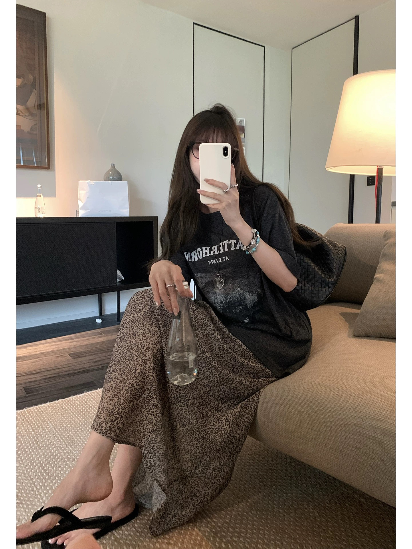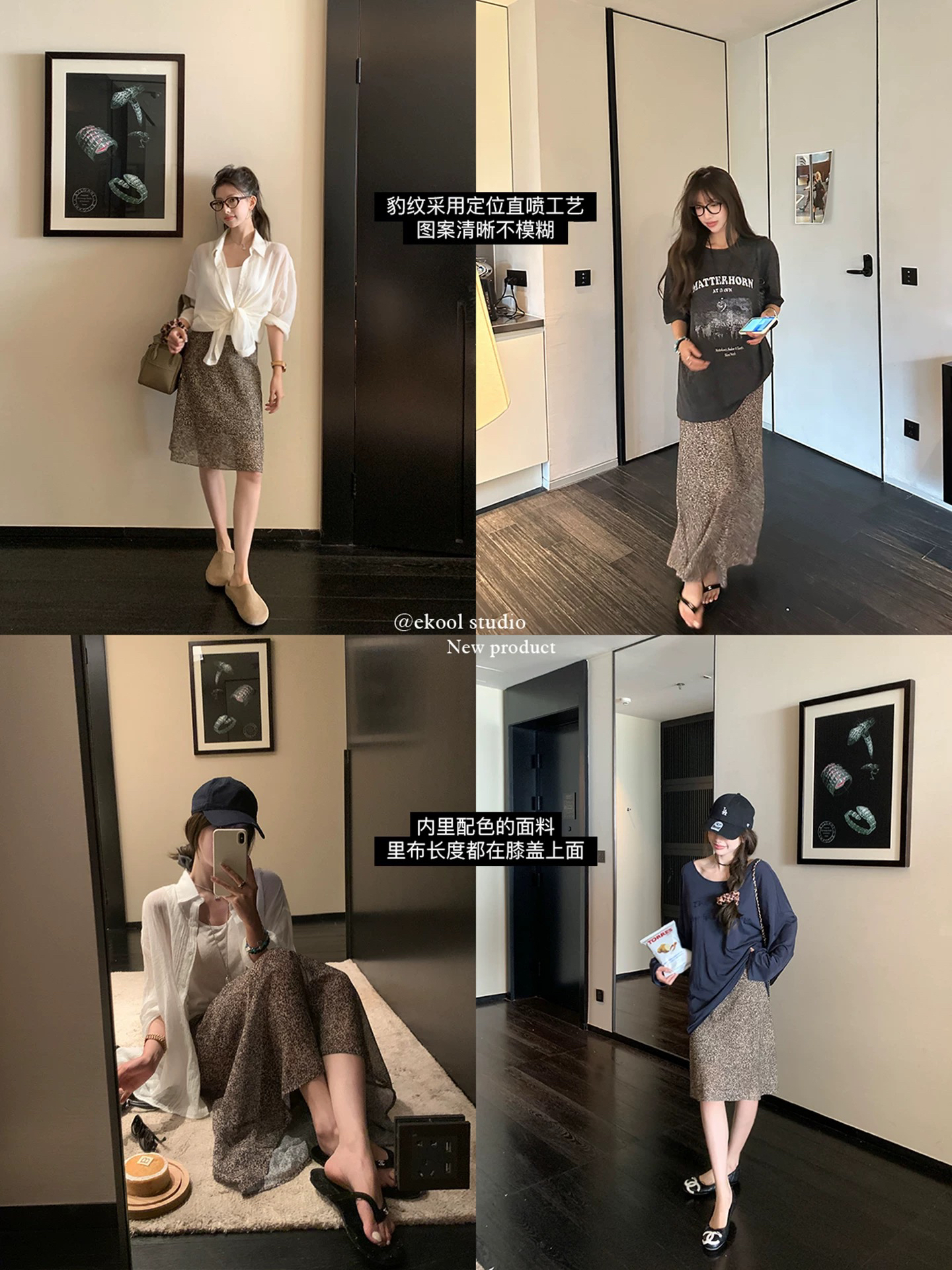 ekool 하이웨이스트 레오파드 무늬 반신 스커트 롱 스커트 여성 여름 새로운 허리밴드 한국 스타일 출퇴근 다용도 슬림해 보이는 미니 스커트