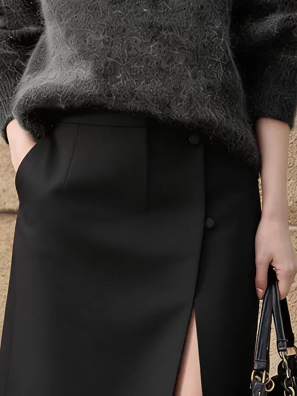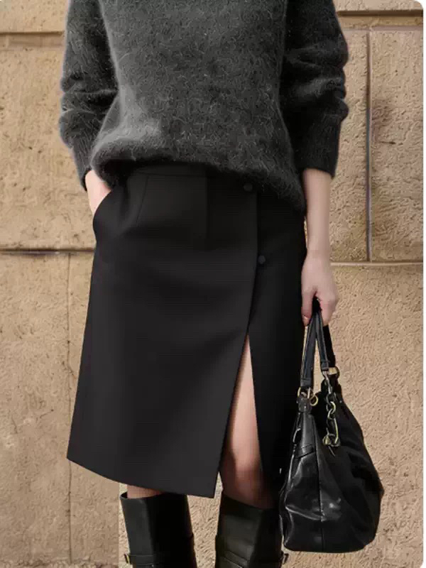 검정색 측면 트임 중간 스커트 반신 스커트 여성 2026 봄 새로운 하이웨이스트 품격 슬림해 보이는 다용도 출퇴근 반신 스커트