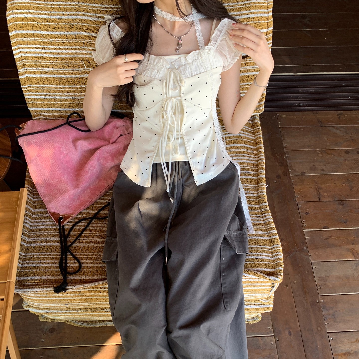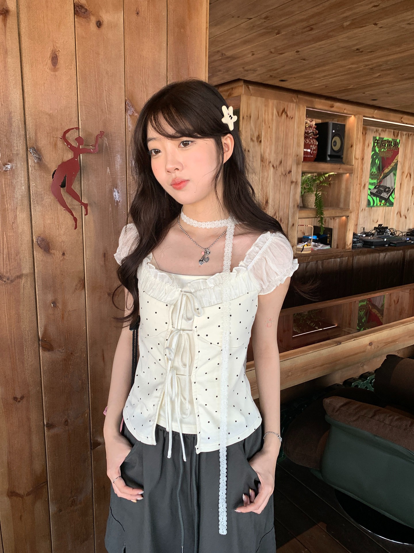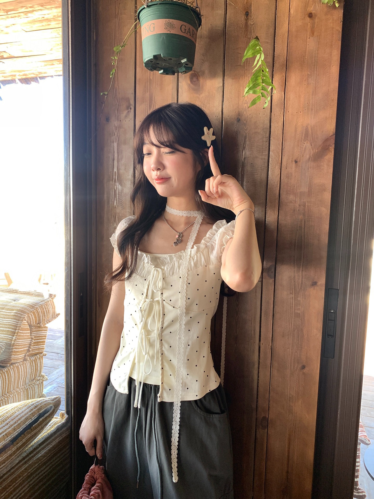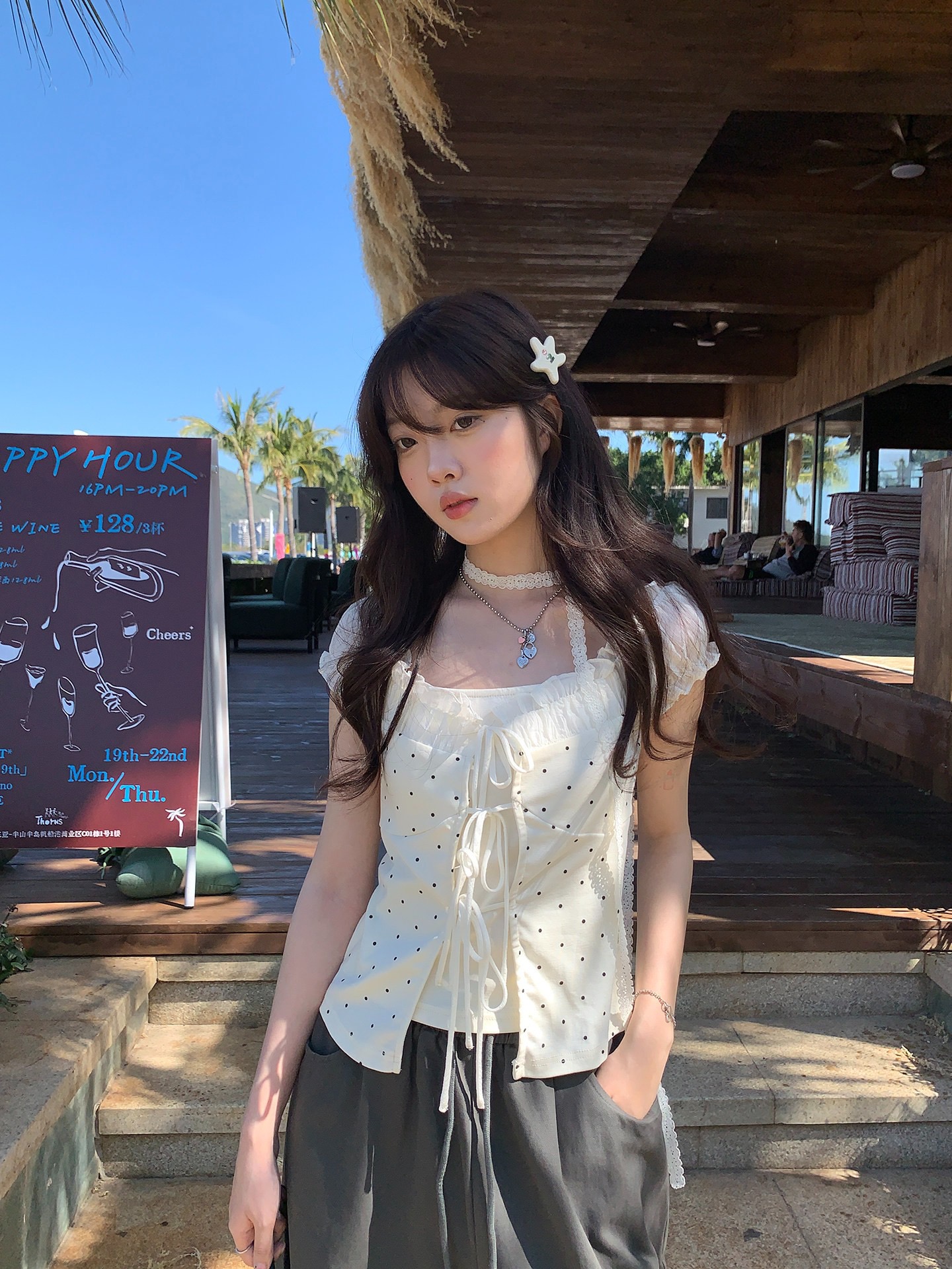 달콤한 스타일 화이트 나비 매듭 스트랩 허리 수축 슬림해 보이는 튜브탑 조끼 여성 여름 프랑스식 프릴 Chic 맨위