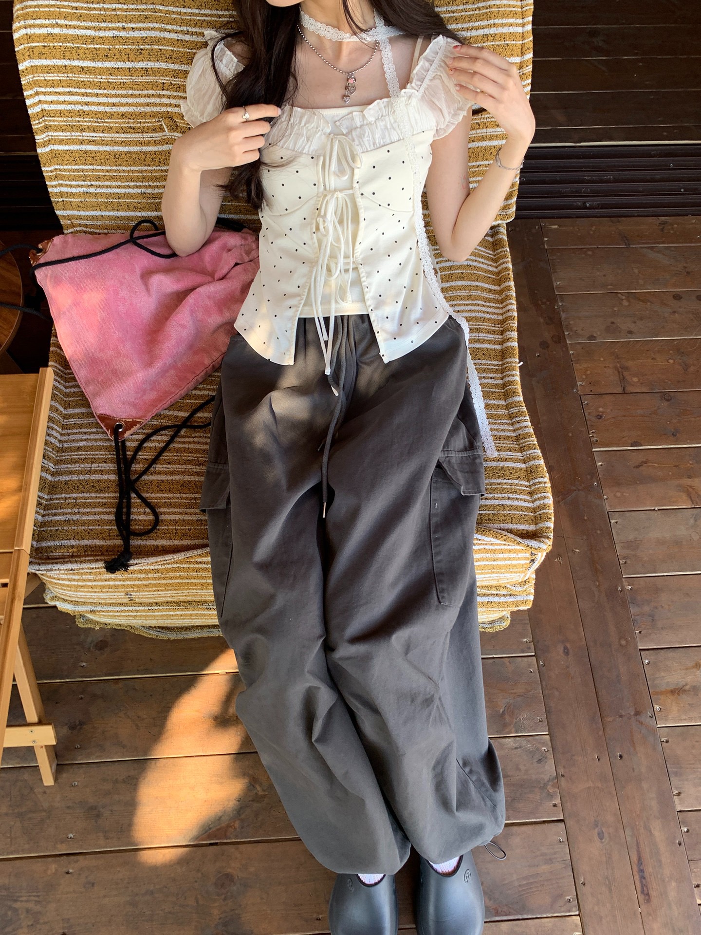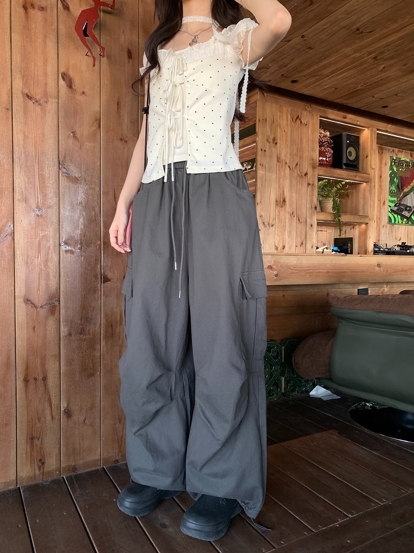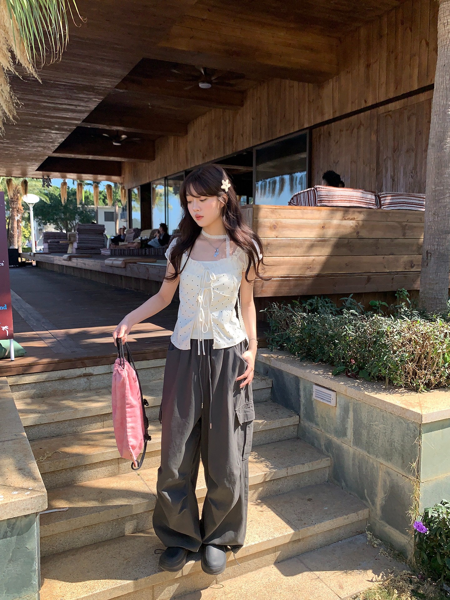 섬 여행 착용 가져 가라. 느슨함 센스 여름 와이드 레그 팬츠 세트 여성 가정 서비스 투피스 세트 패션 품격 휴가 바람