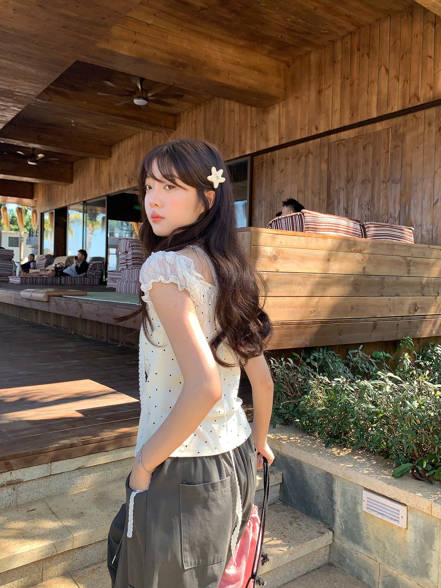 한국 스타일 순수한 욕망 불규칙 레이스 오프숄더 반팔 티셔츠 여성 여름 새로운 몸매 가꾸기 슬림해 보이는 맨위